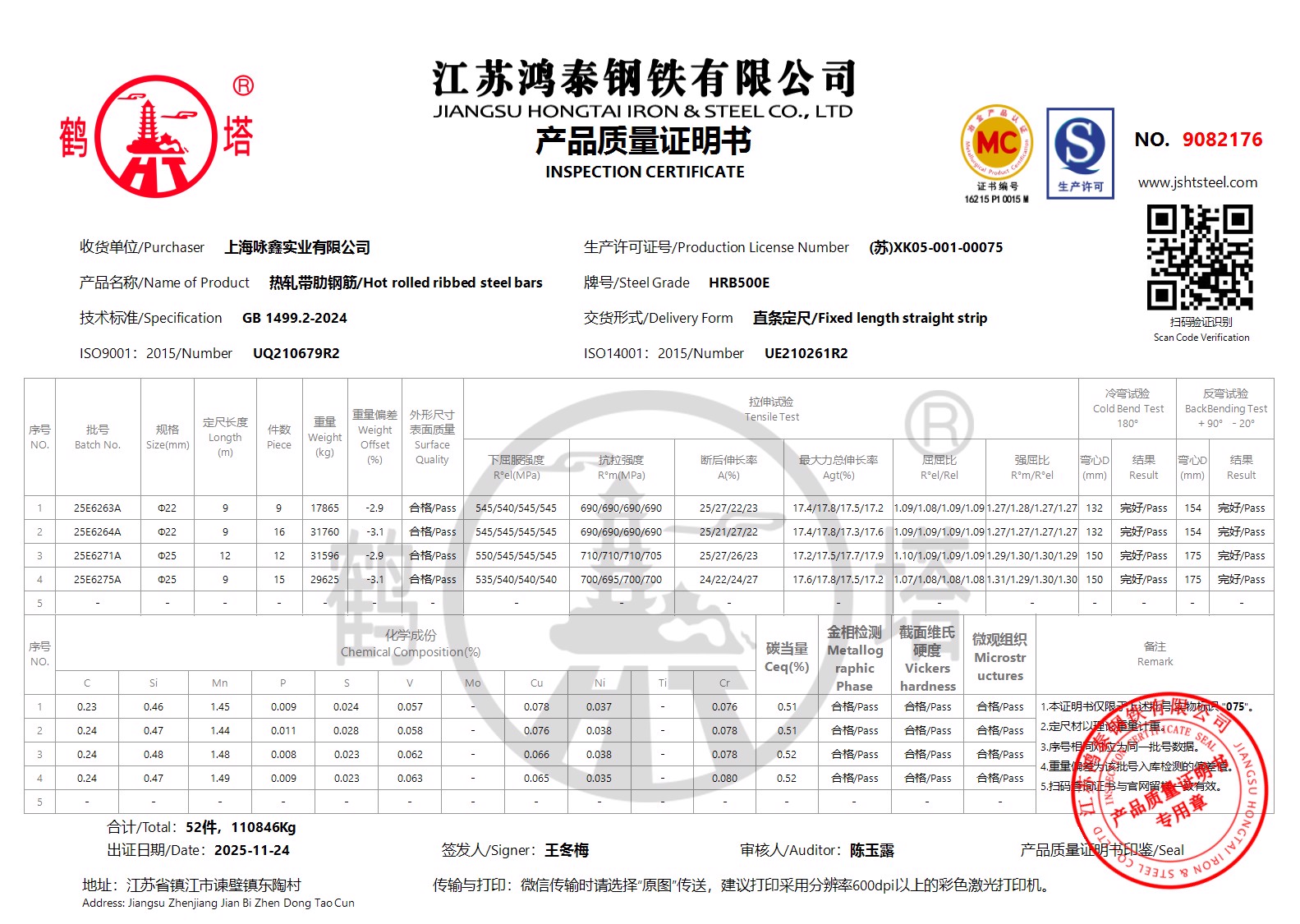 江苏鸿泰钢铁有限公司9082176上海咏鑫实业有限公司