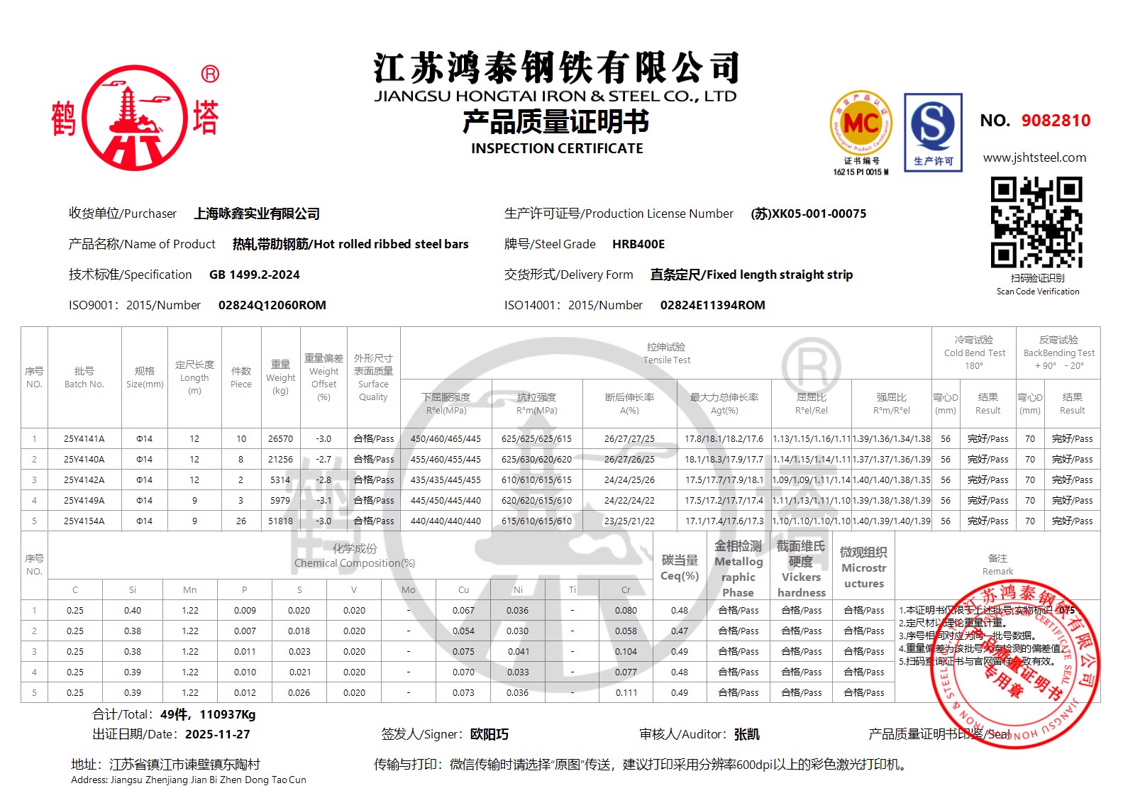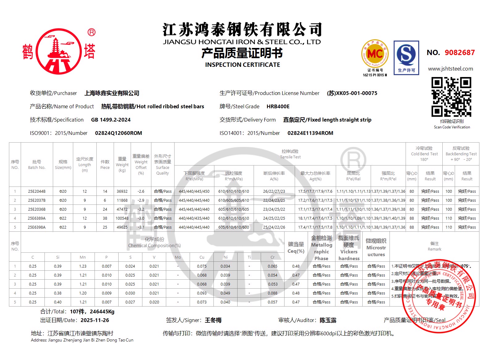 江苏鸿泰钢铁有限公司9082686上海咏鑫实业有限公司