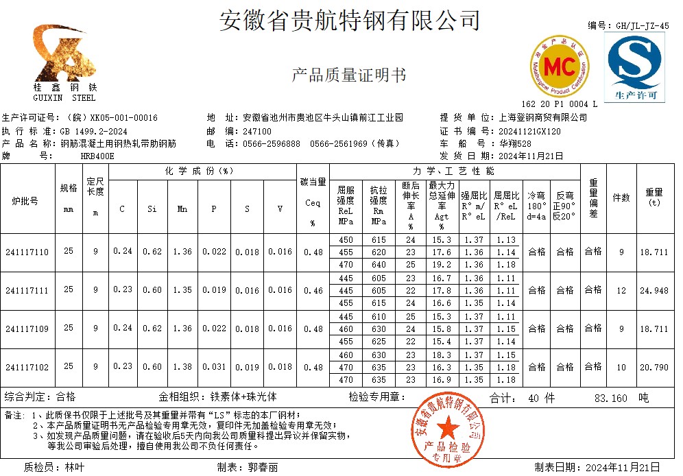安徽省贵航特钢有限公司GH/JL-JZ-45提货单位:上海登钢商贸有限公司3、如发现产品质量问题,请在验收后5天内向我公司质量科提出异议并保留实物,等我公司审验后处理,擅自使用我公司不负任何责任。