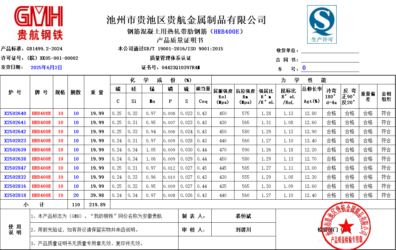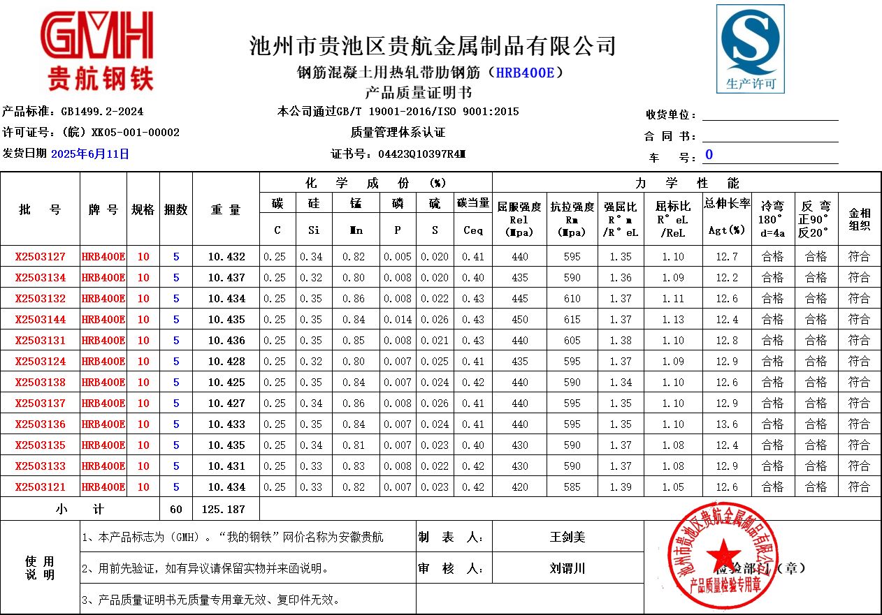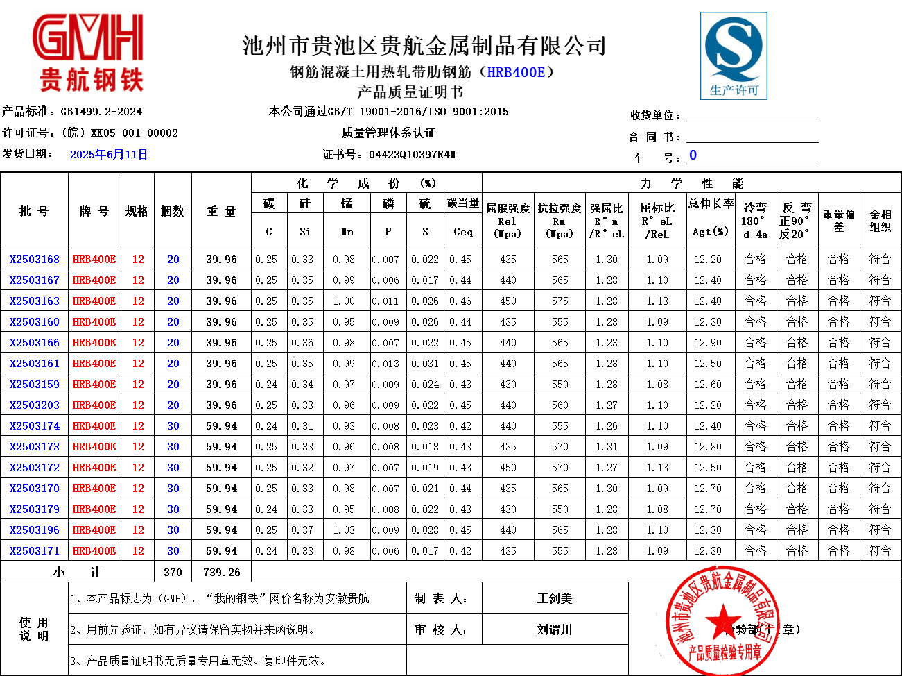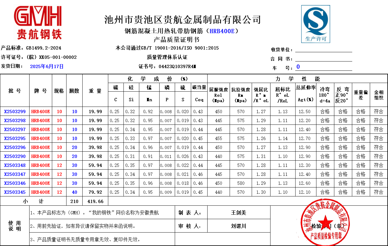 池州市贵池区贵航金属制品有限公司本公司通过GB/T 19001-2016/ISO 9001:2015