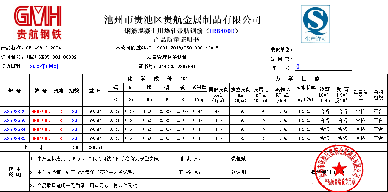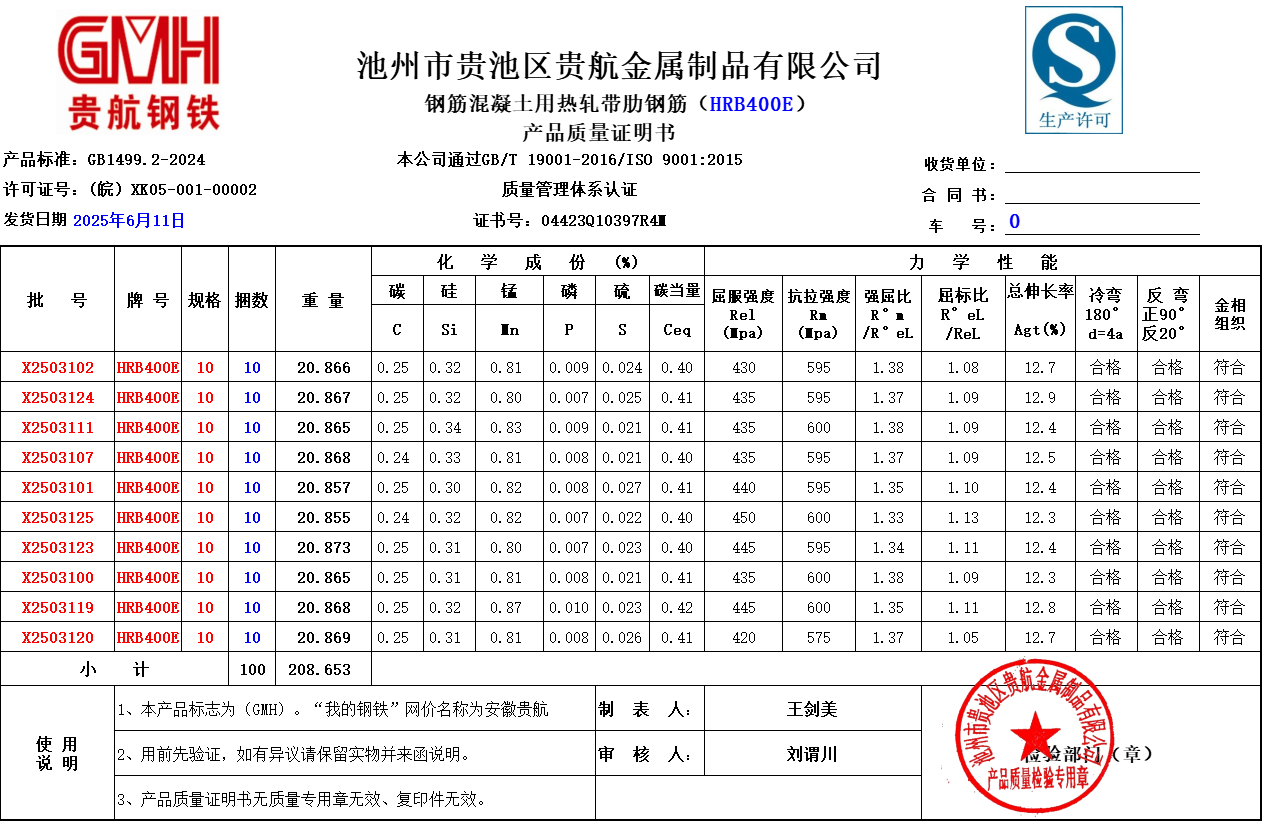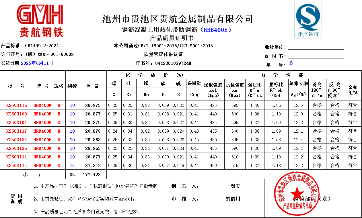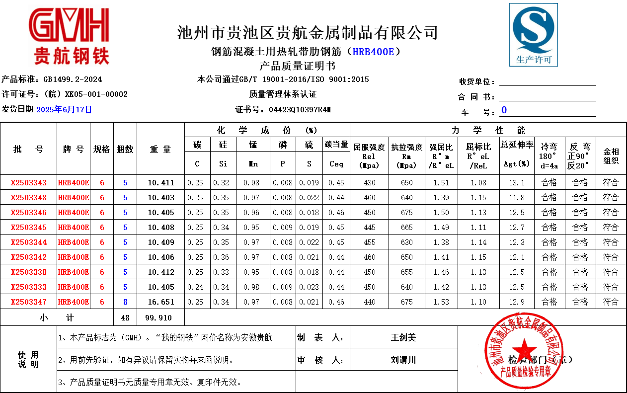 池州市贵池区贵航金属制品有限公司本公司通过GB/T19001-2016/ISO 9001:2015
