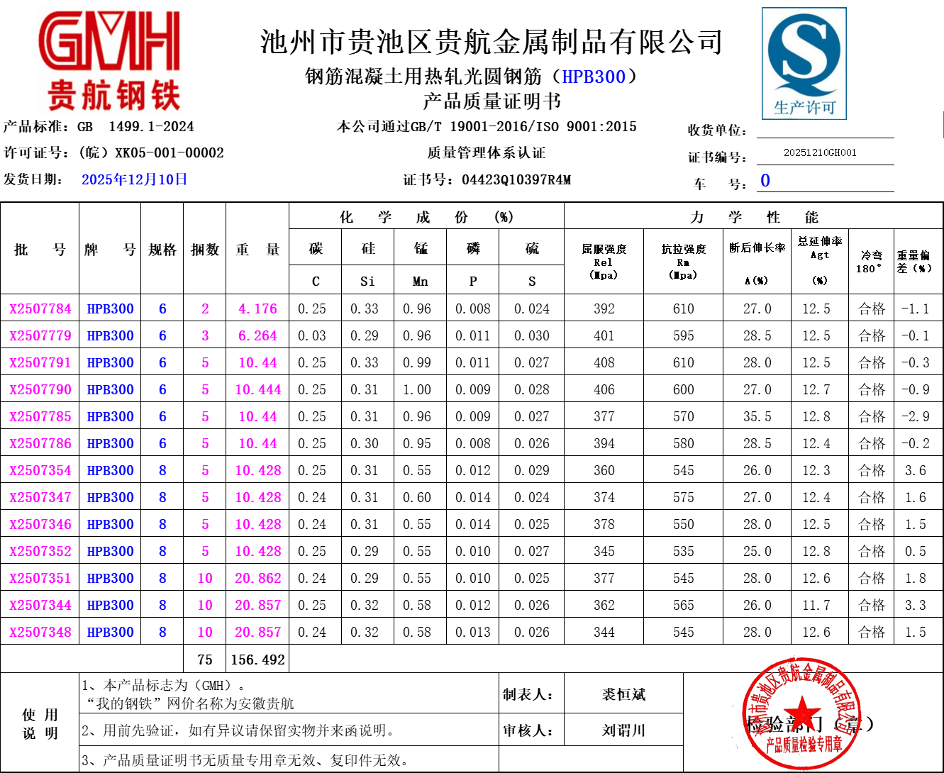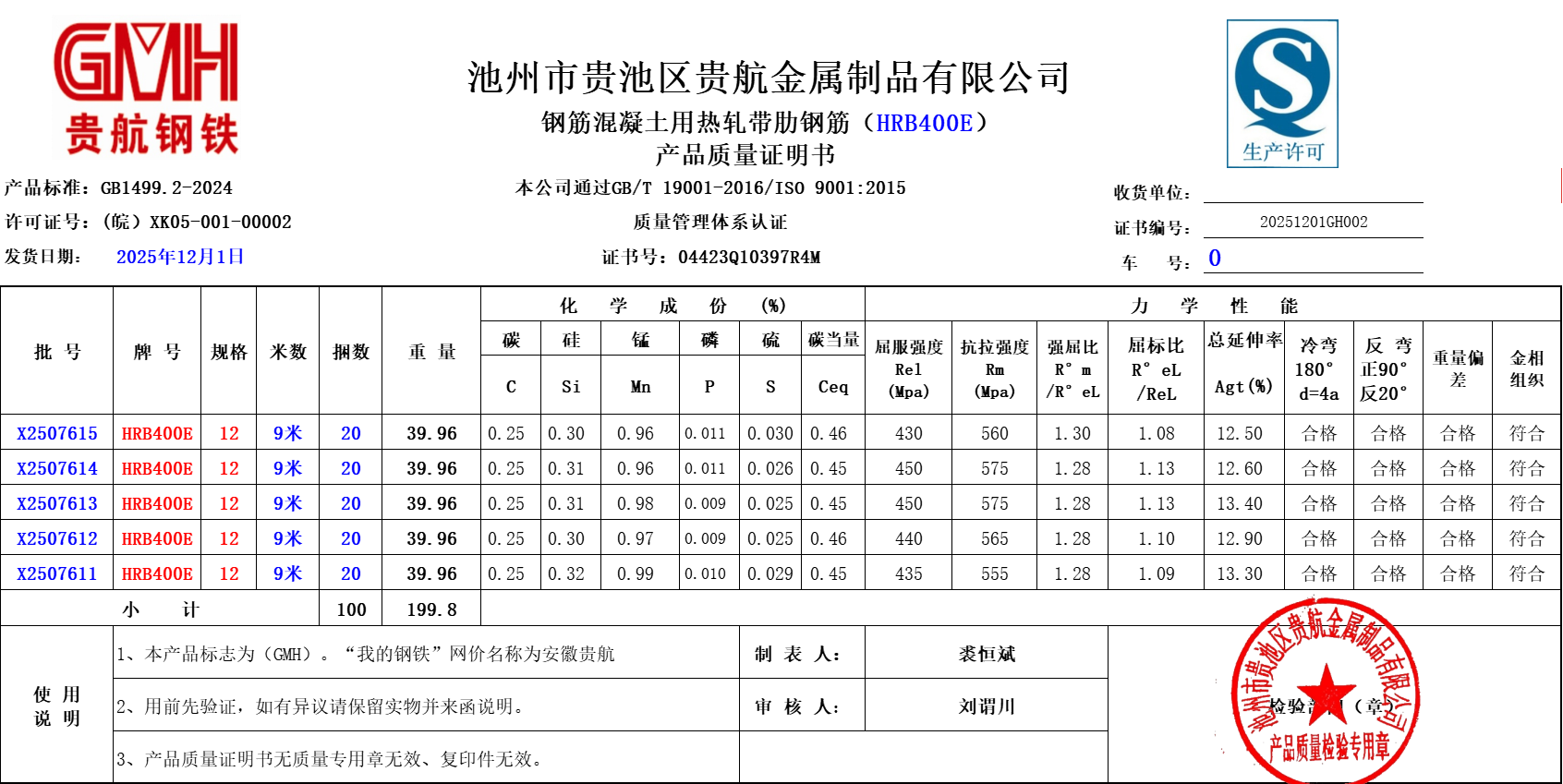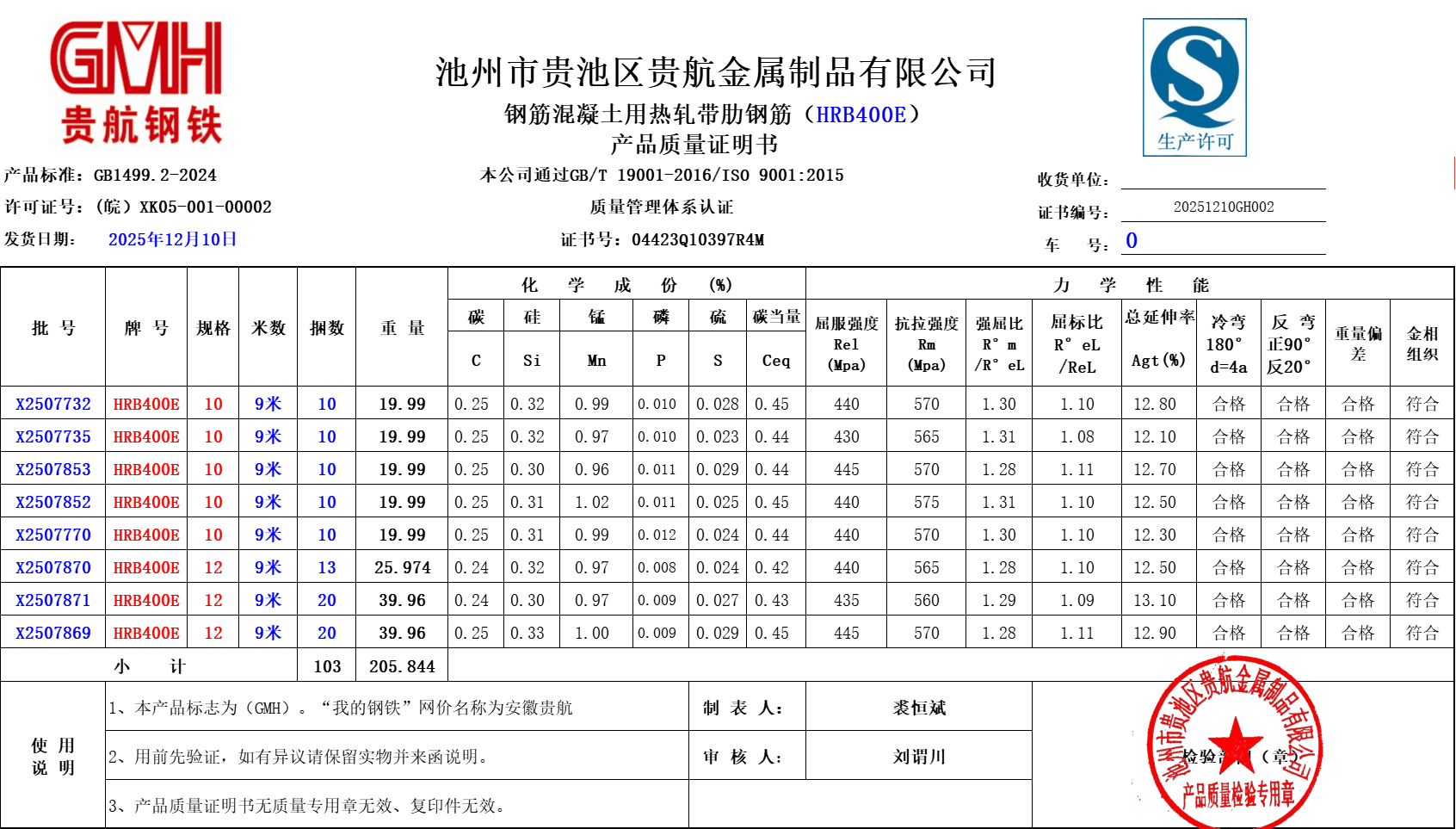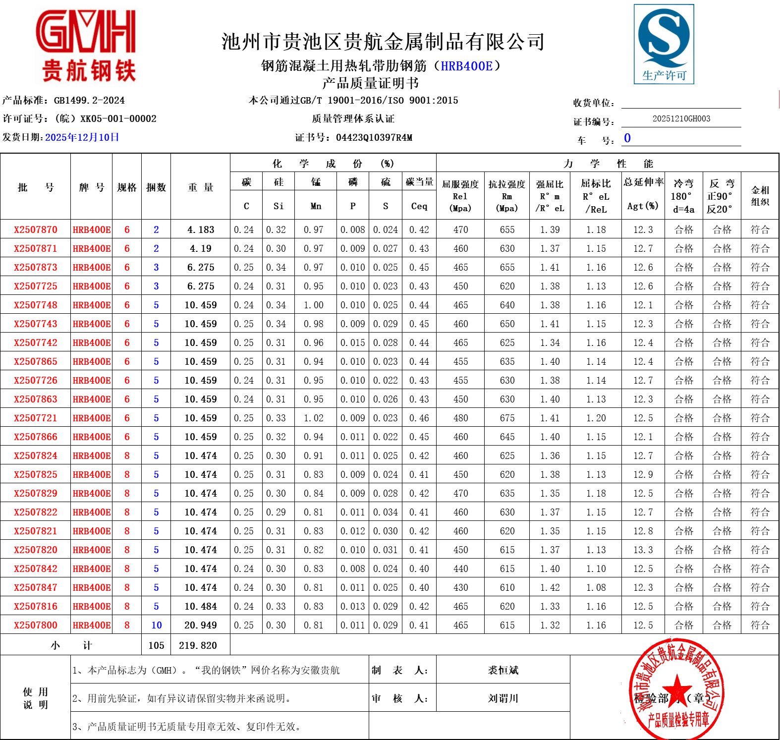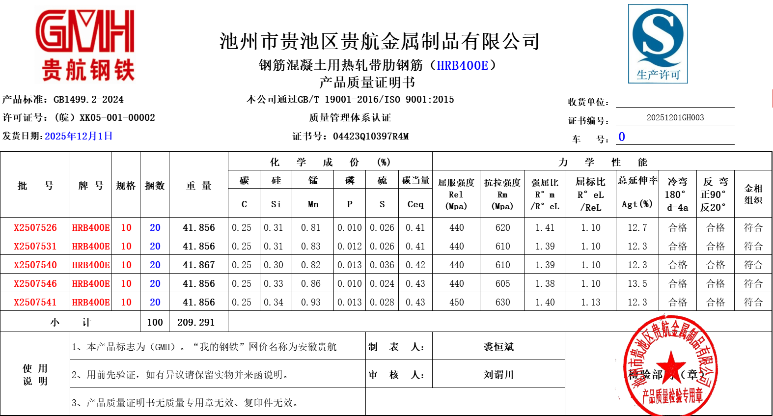 池州市贵池区贵航金属制品有限公司本公司通过GB/T 19001-2016/ISO 9001:2015