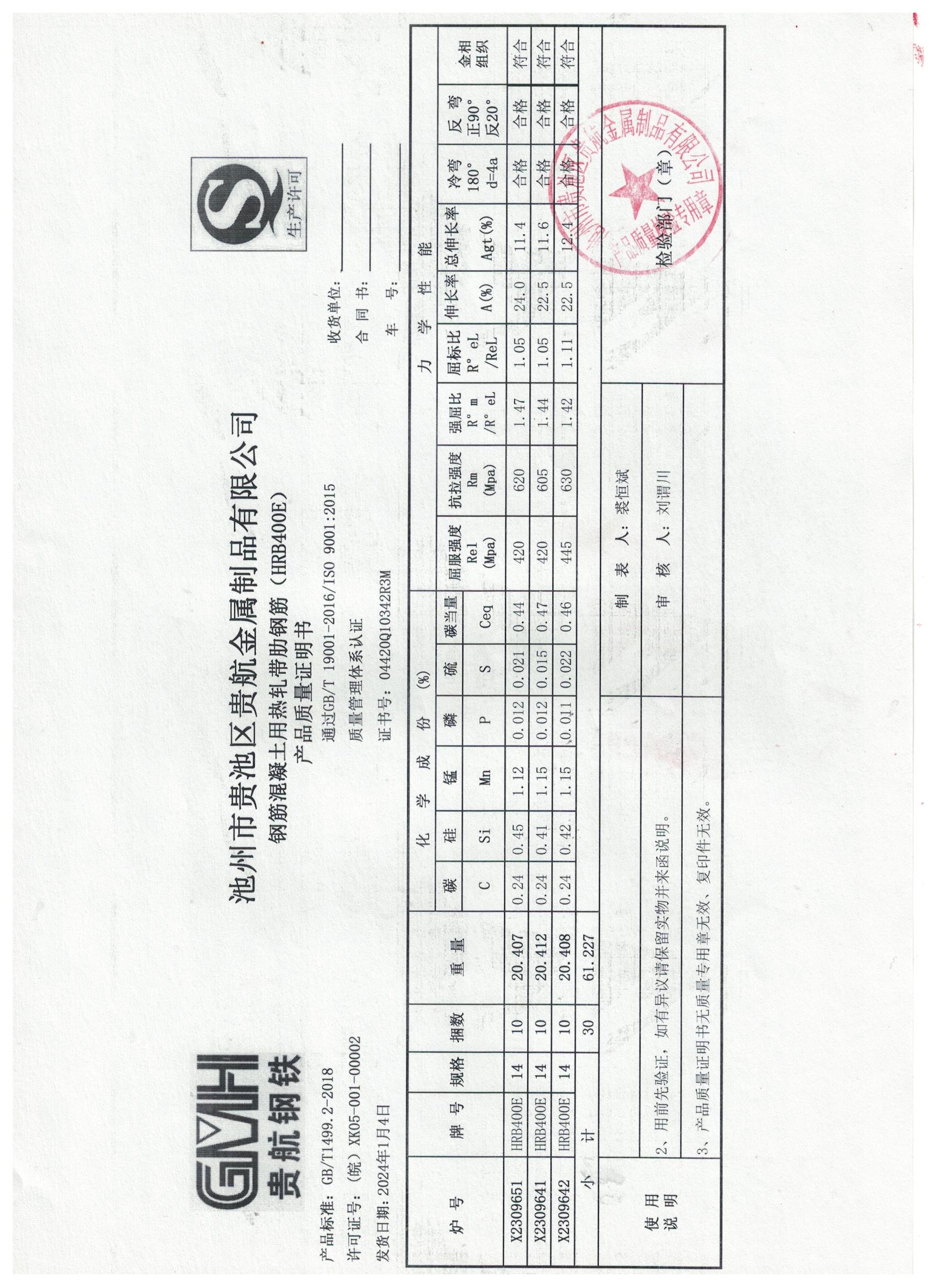 安徽省贵航特钢有限公司GH/JL-JZ-45提货单位:上海咏鑫实业有限公司3、如发现产品质重问题,请在验收后5天内向我公司质里科提出异议并保留实物,等我公司审验后处理,擅自使用我公司不负任何责任。