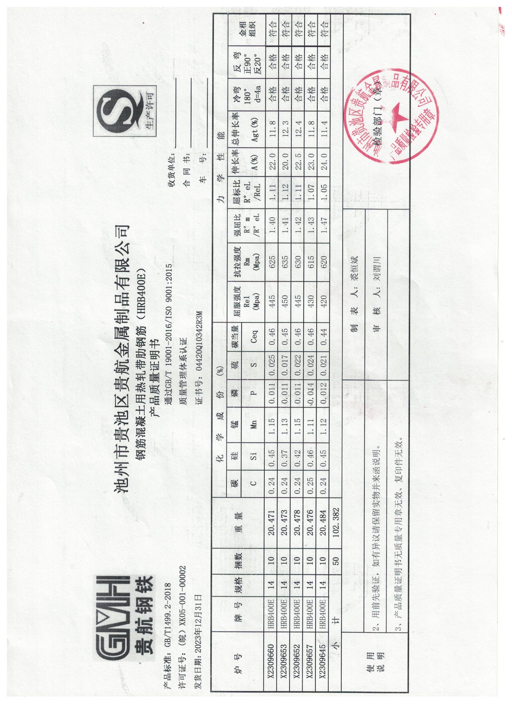 安徽省贵航特钢有限公司GH/JL-JZ-45提货单位:咏鑫公司3、如发现产品质里问题,请在验收后5天内向我公司质里科提出异议并保留实物,等我公司审验后处理,擅自使用我公司不负任何责任。