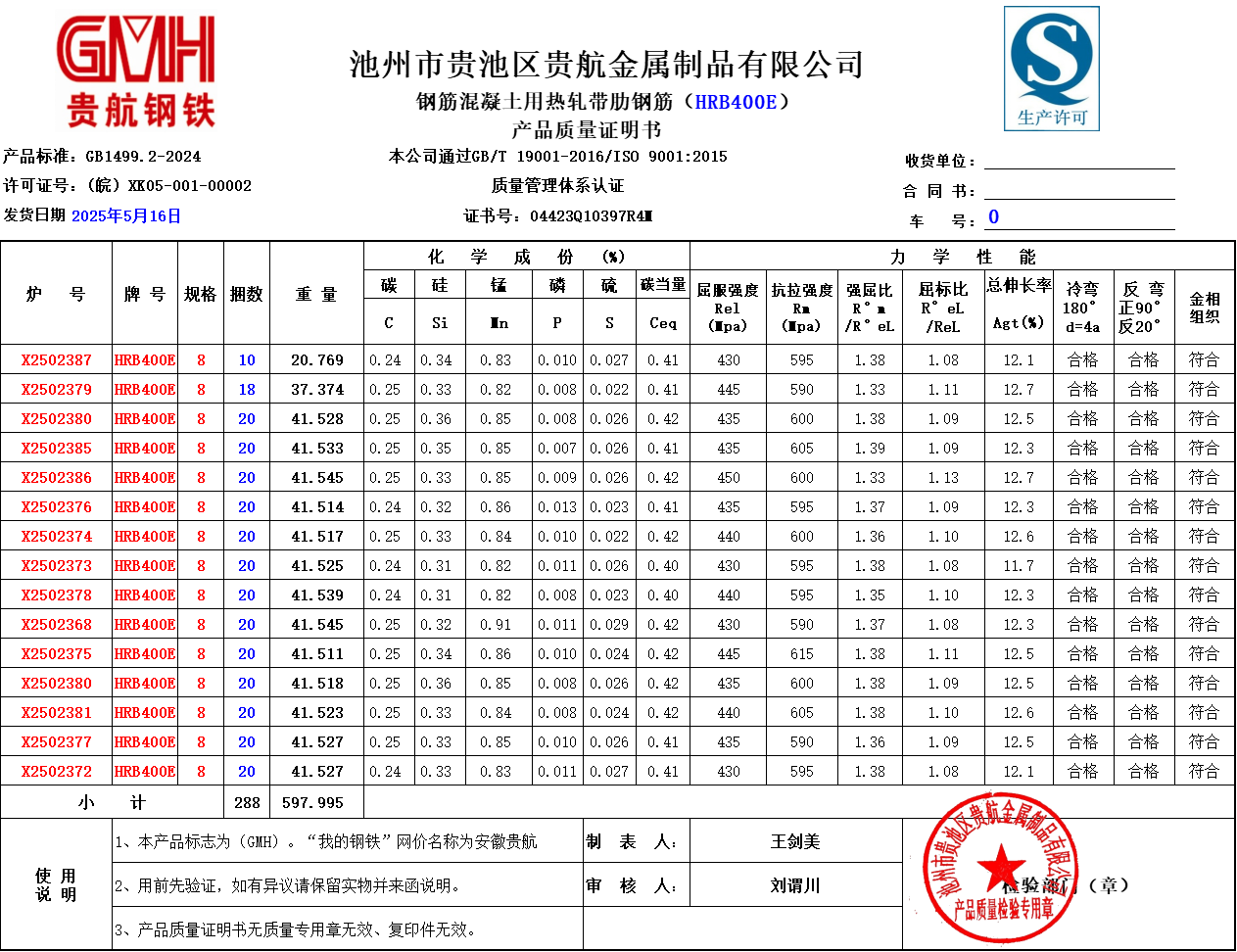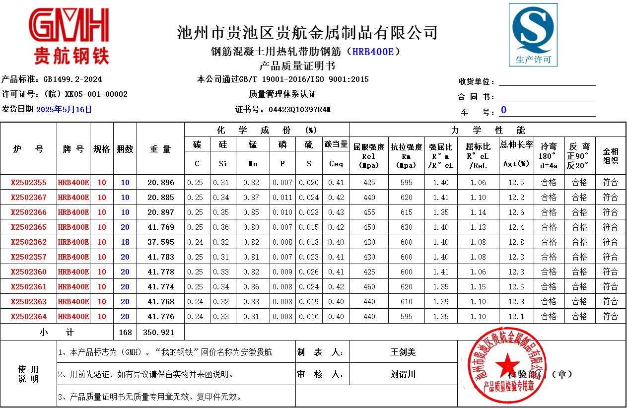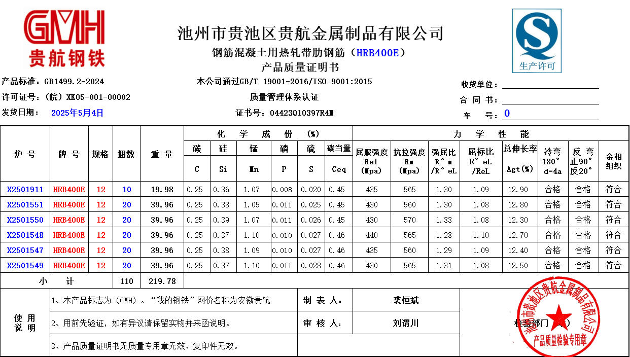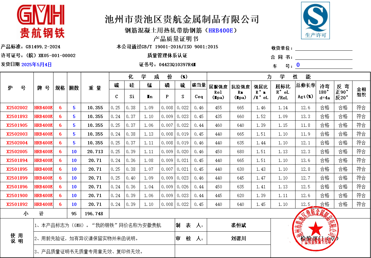 安徽省贵航特钢有限公司GH/JL-JZ-45提货单位:国贸启润(上海)有限公司3、如发现产品质量问题,请在验收后5天内向我公司质量科提出异议并保留实物,等我公司审验后处理,擅自使用我公司不负任何责任。