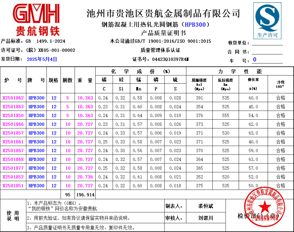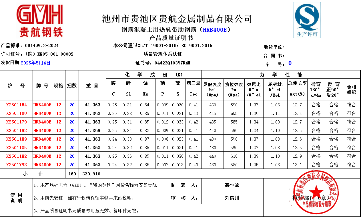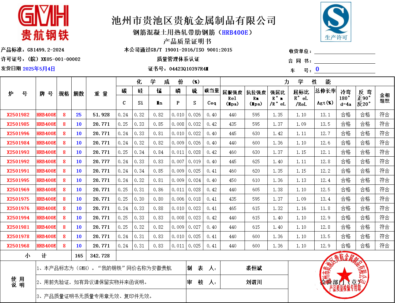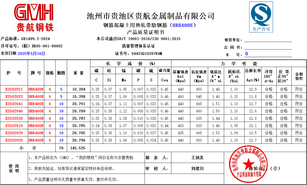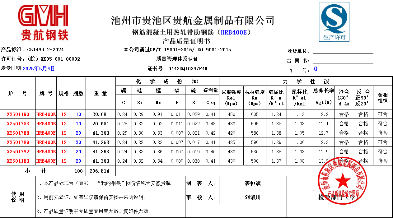 安徽省贵航特钢有限公司GH/JL-JZ-45提货单位:国贸启润(上海)有限公司3、如发现产品质量问题,请在验收后5天内向我公司质量科提出异议并保留实物,等我公司审验后处理,擅自使用我公司不负任何责任。