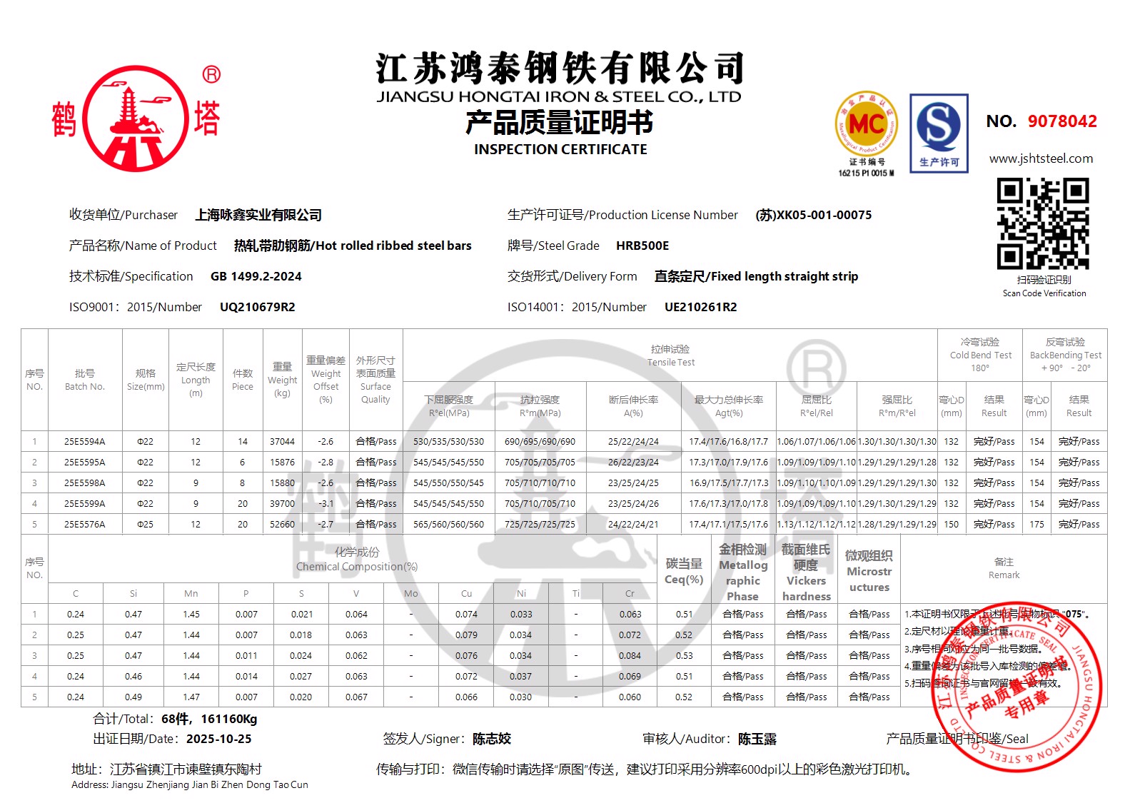 江苏鸿泰钢铁有限公司9078042上海咏鑫实业有限公司NOHI