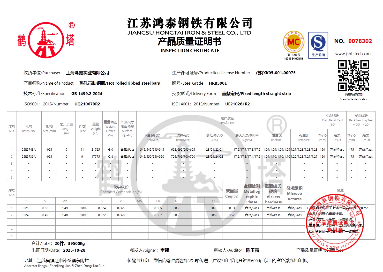 江苏鸿泰钢铁有限公司9078301上海咏鑫实业有限公司NOH