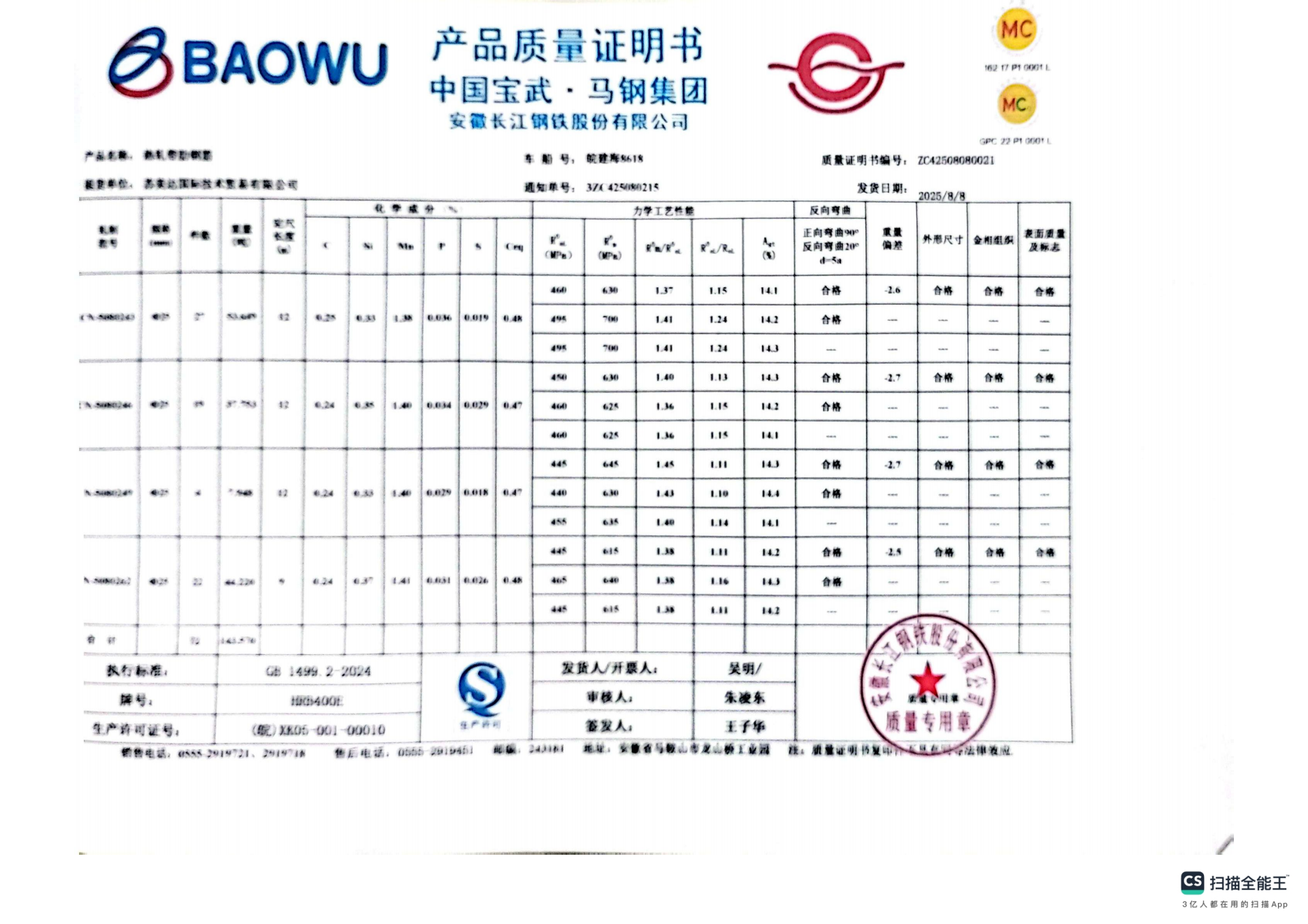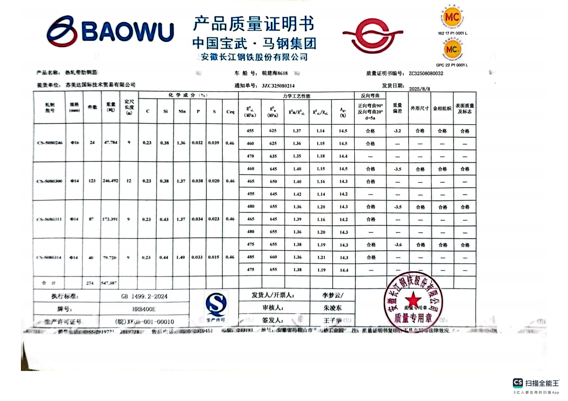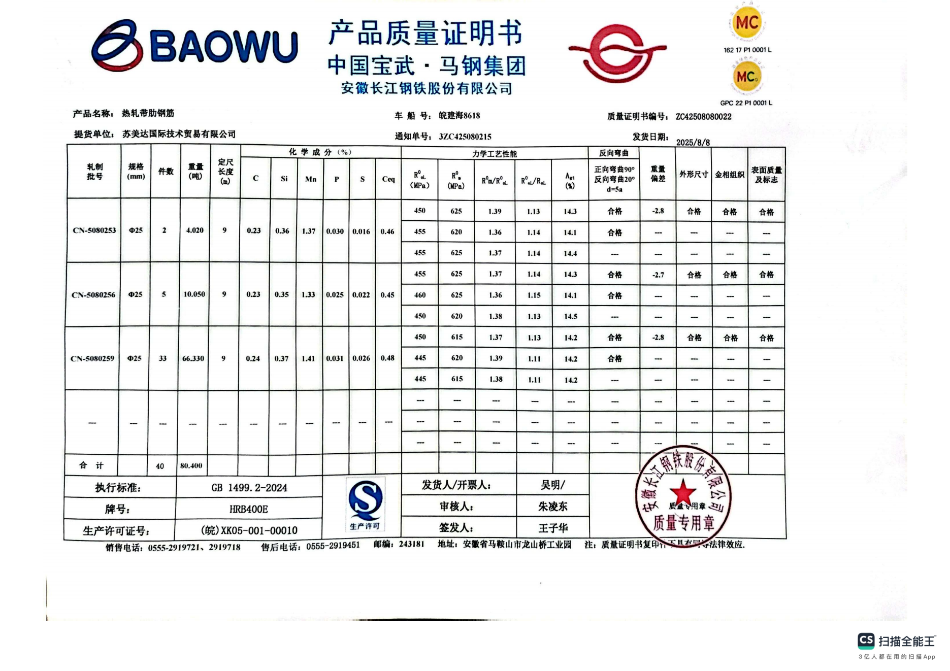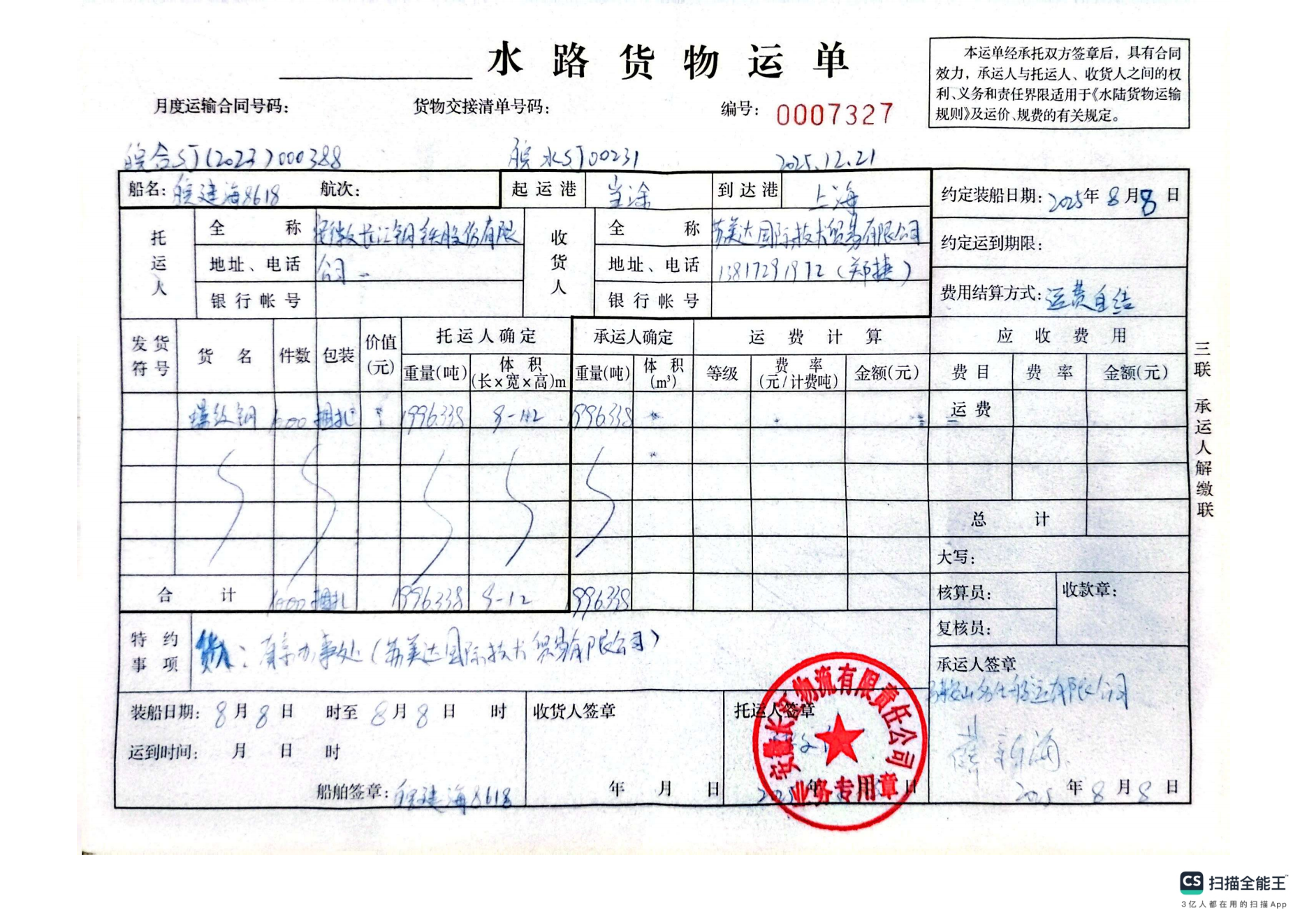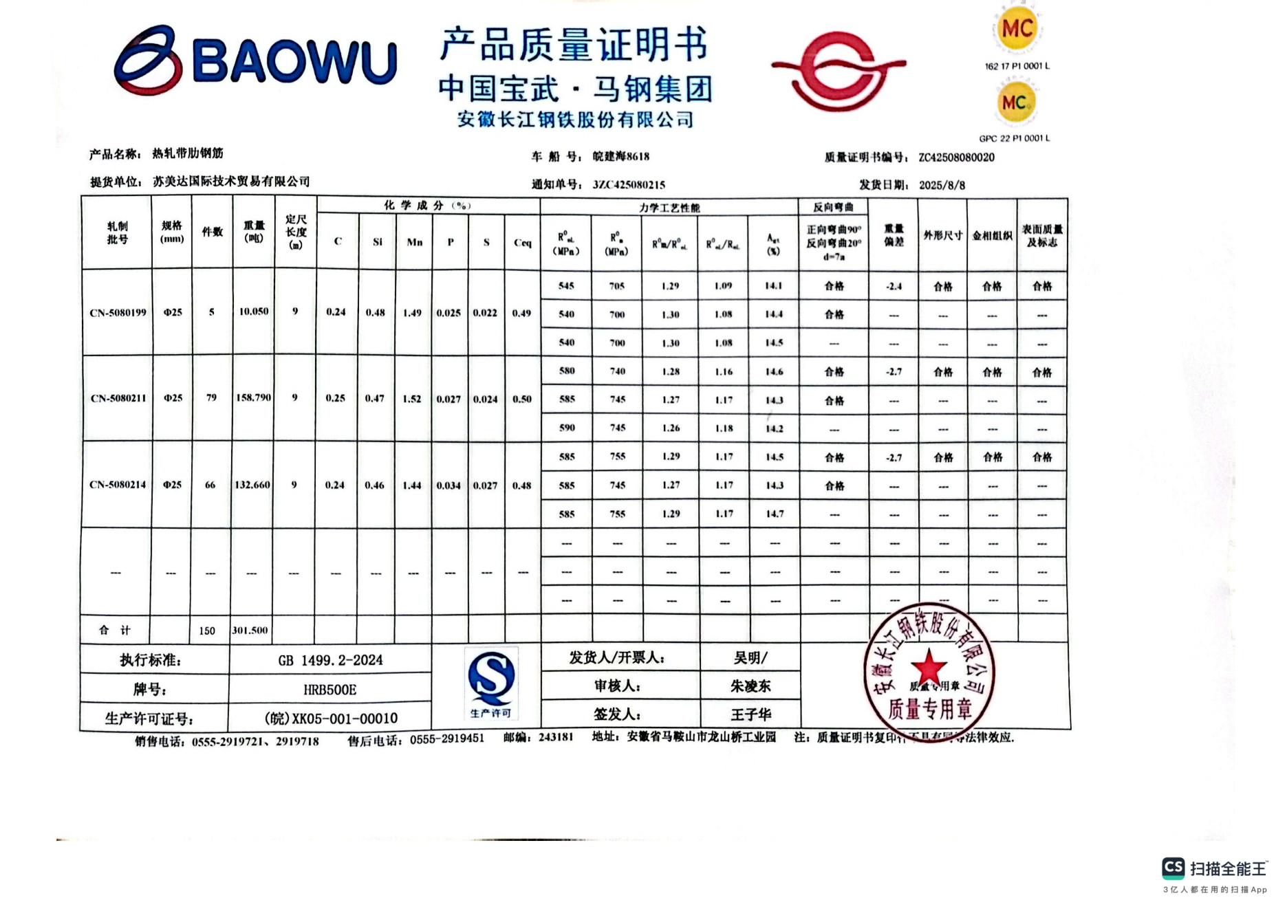 安徽长江钢铁股份有限公司提货单位:苏美达国际技术贸易有限公司