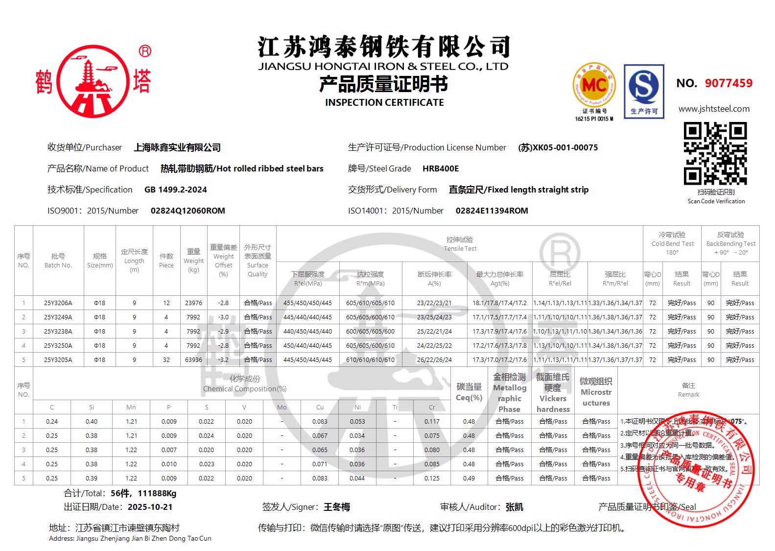 江苏鸿泰钢铁有限公司9077460上海咏鑫实业有限公司