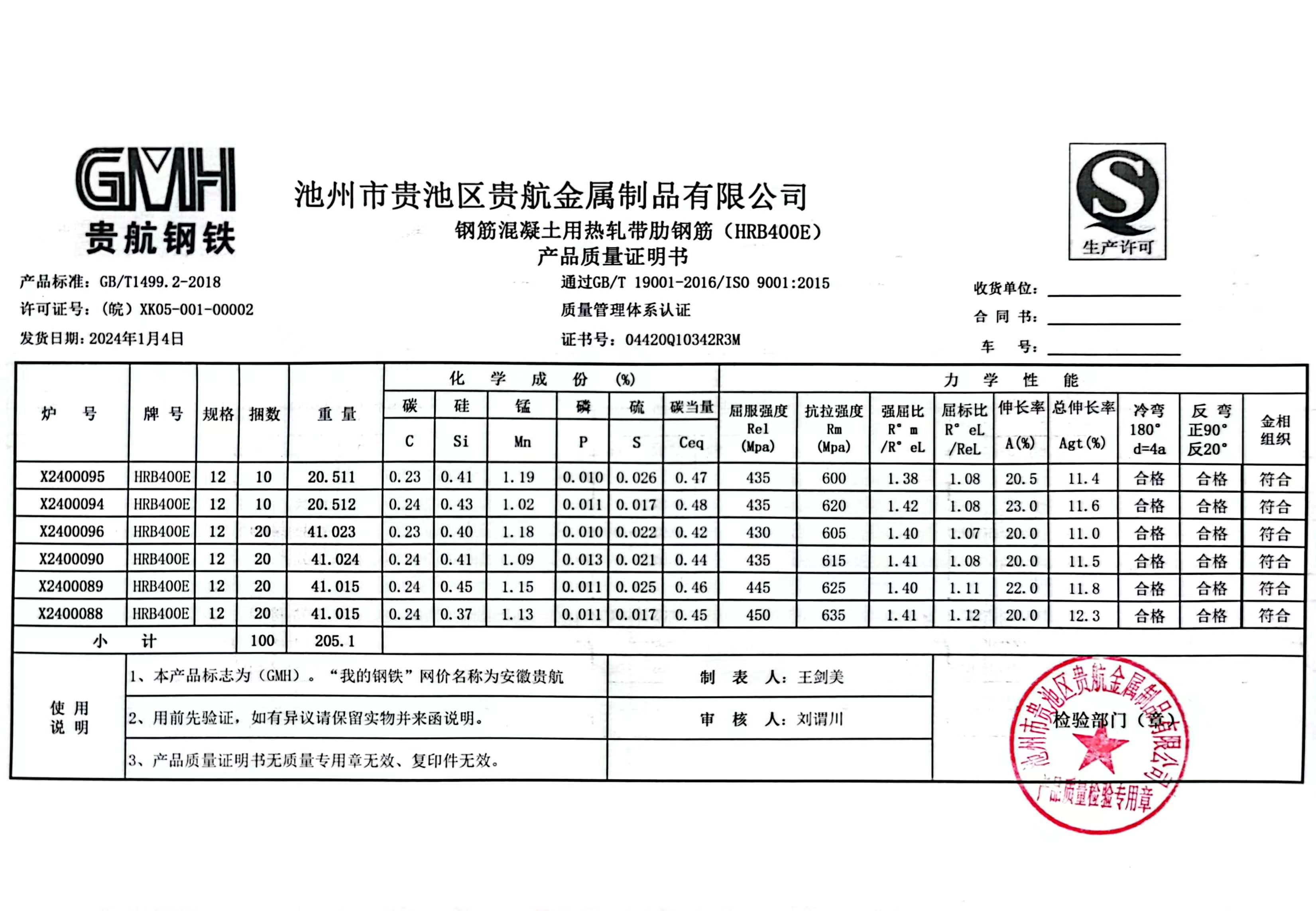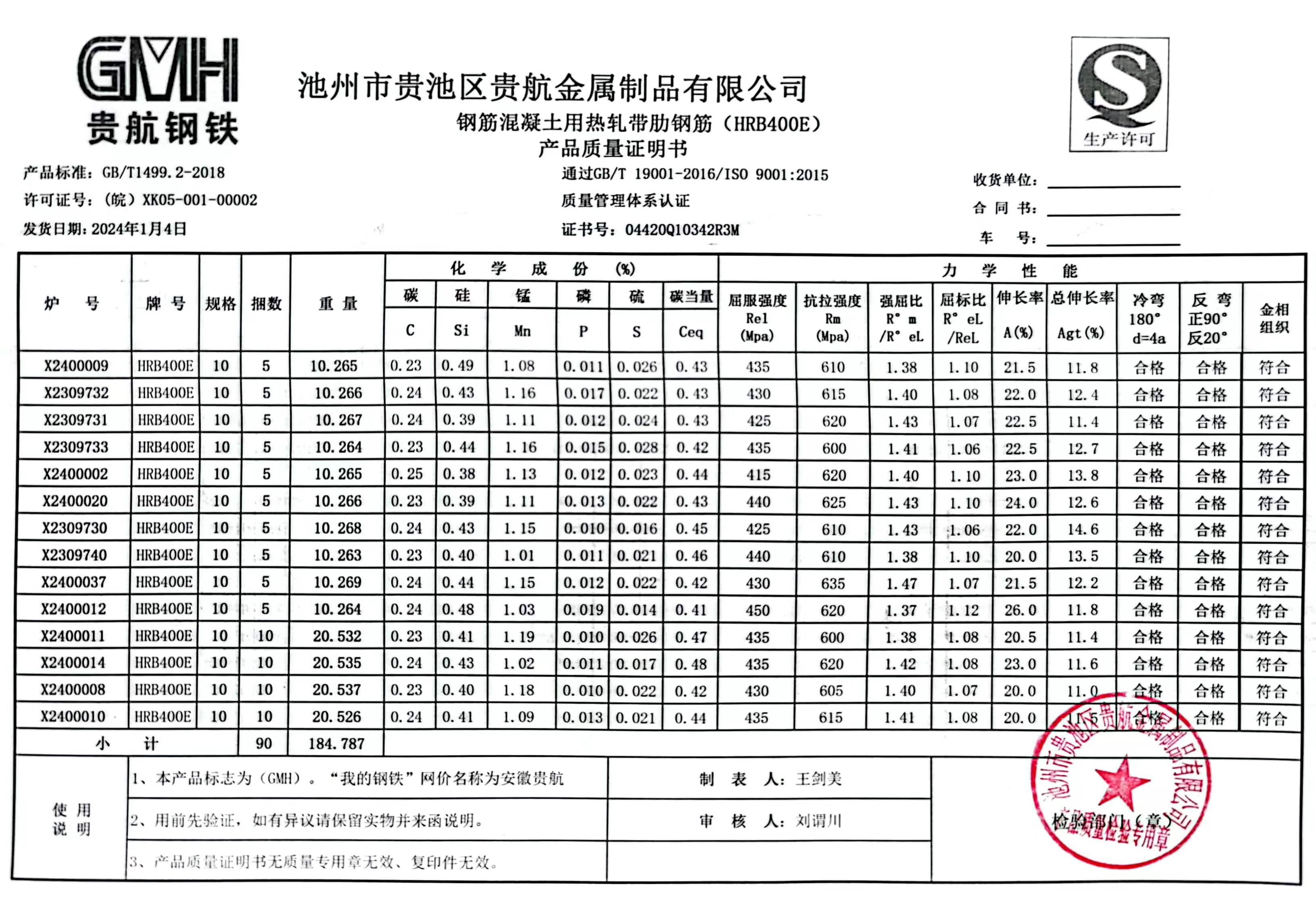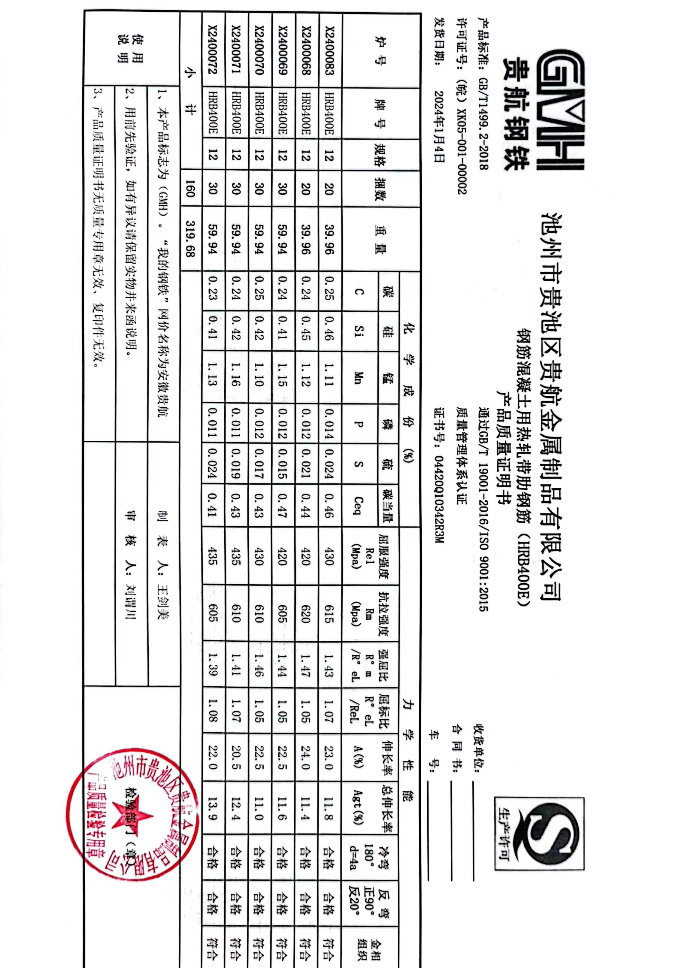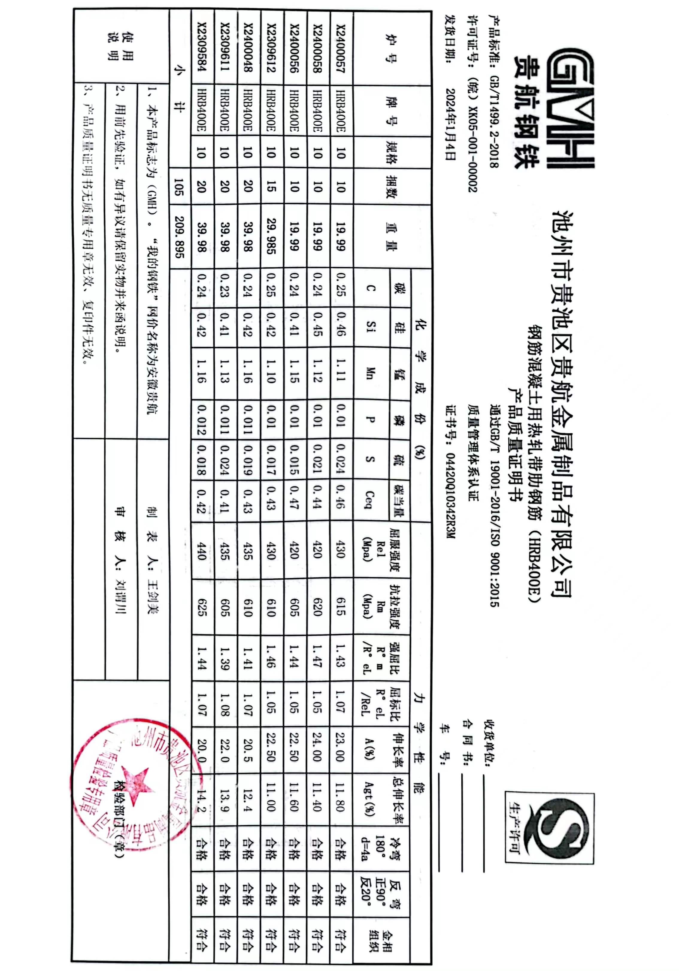 丹阳龙江钢铁有限公司质量证明书天津启润投资有限公司