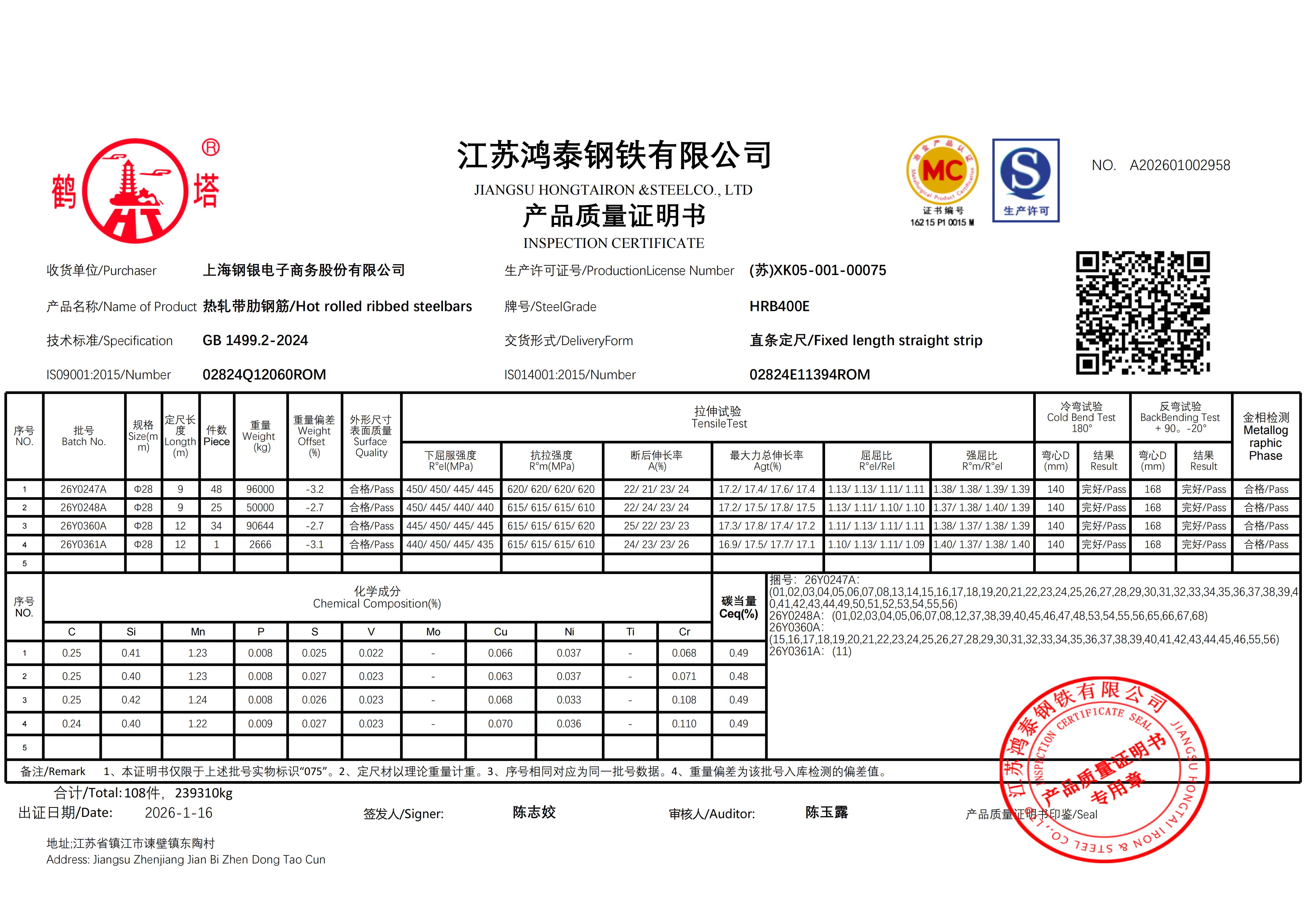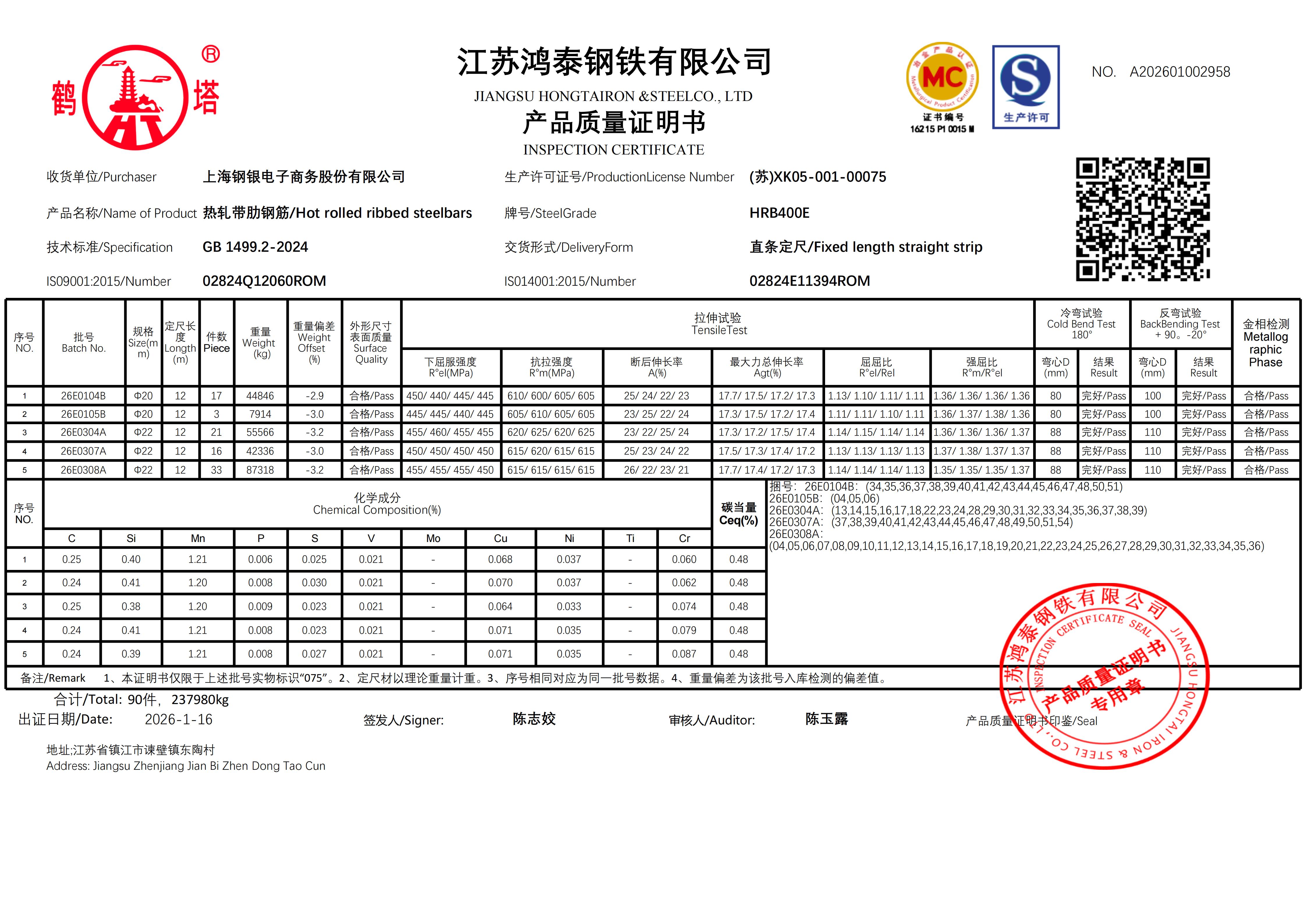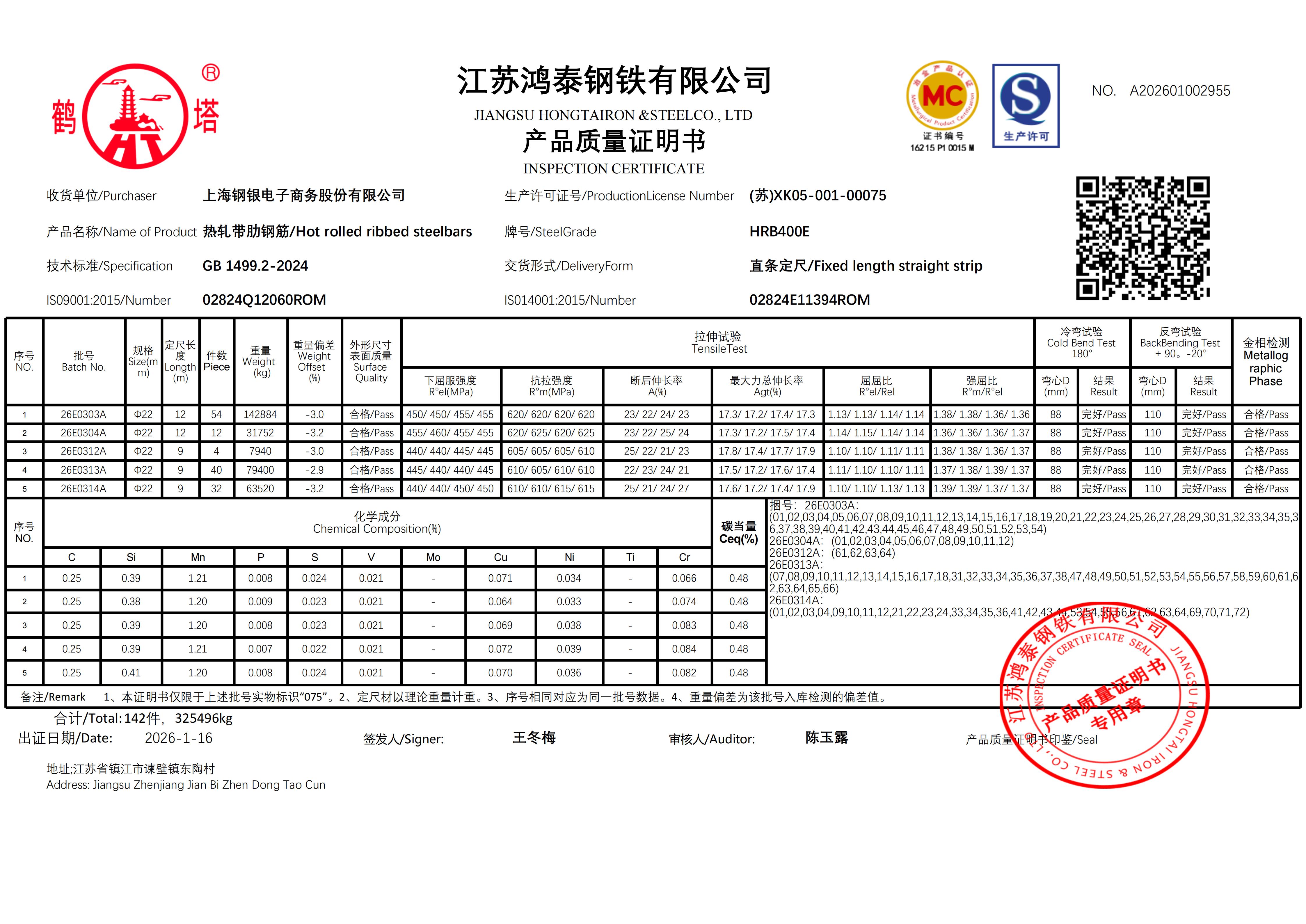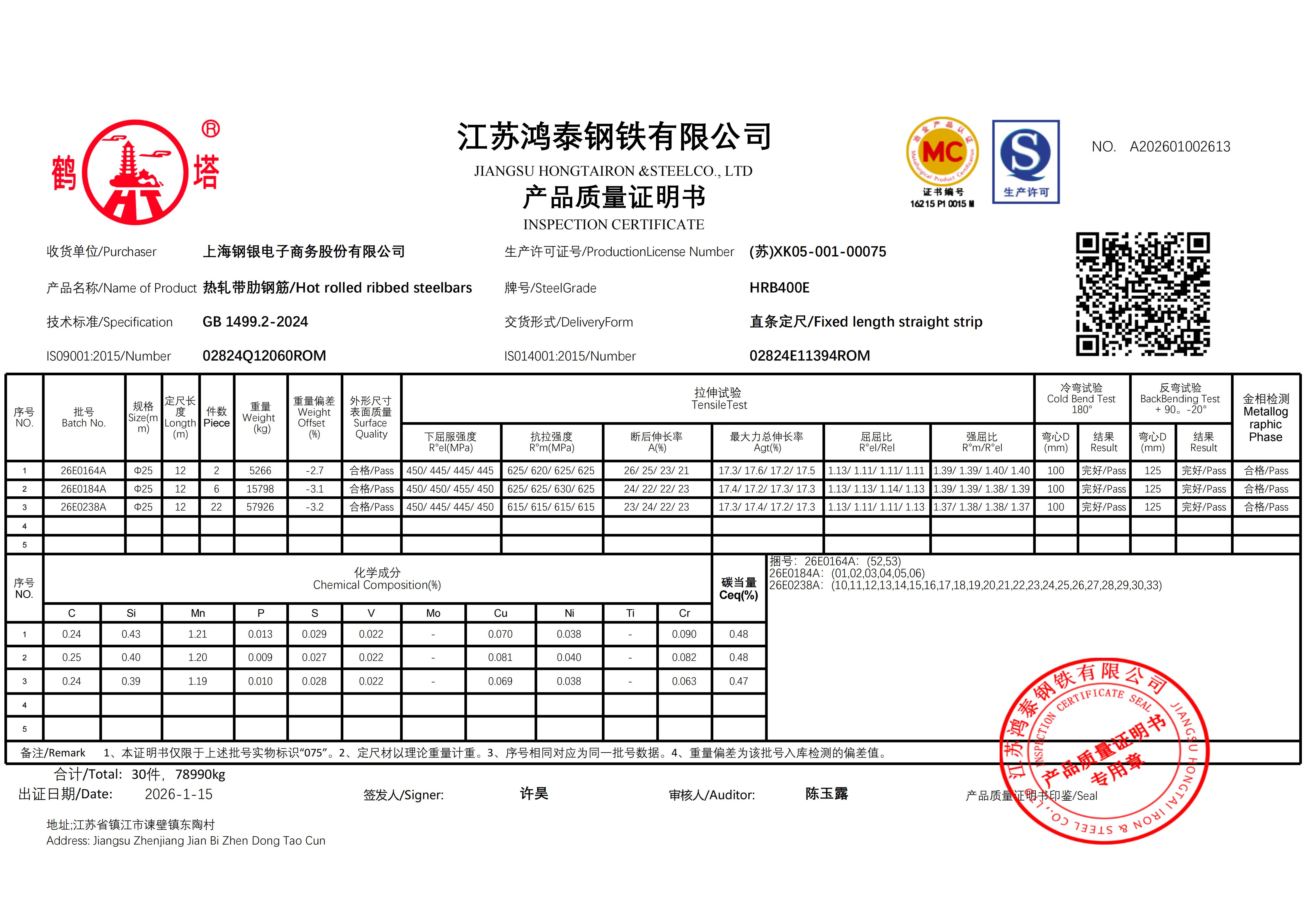 江苏鸿泰钢铁有限公司 A202601002612上海钢银电子商务股份有限公司NO