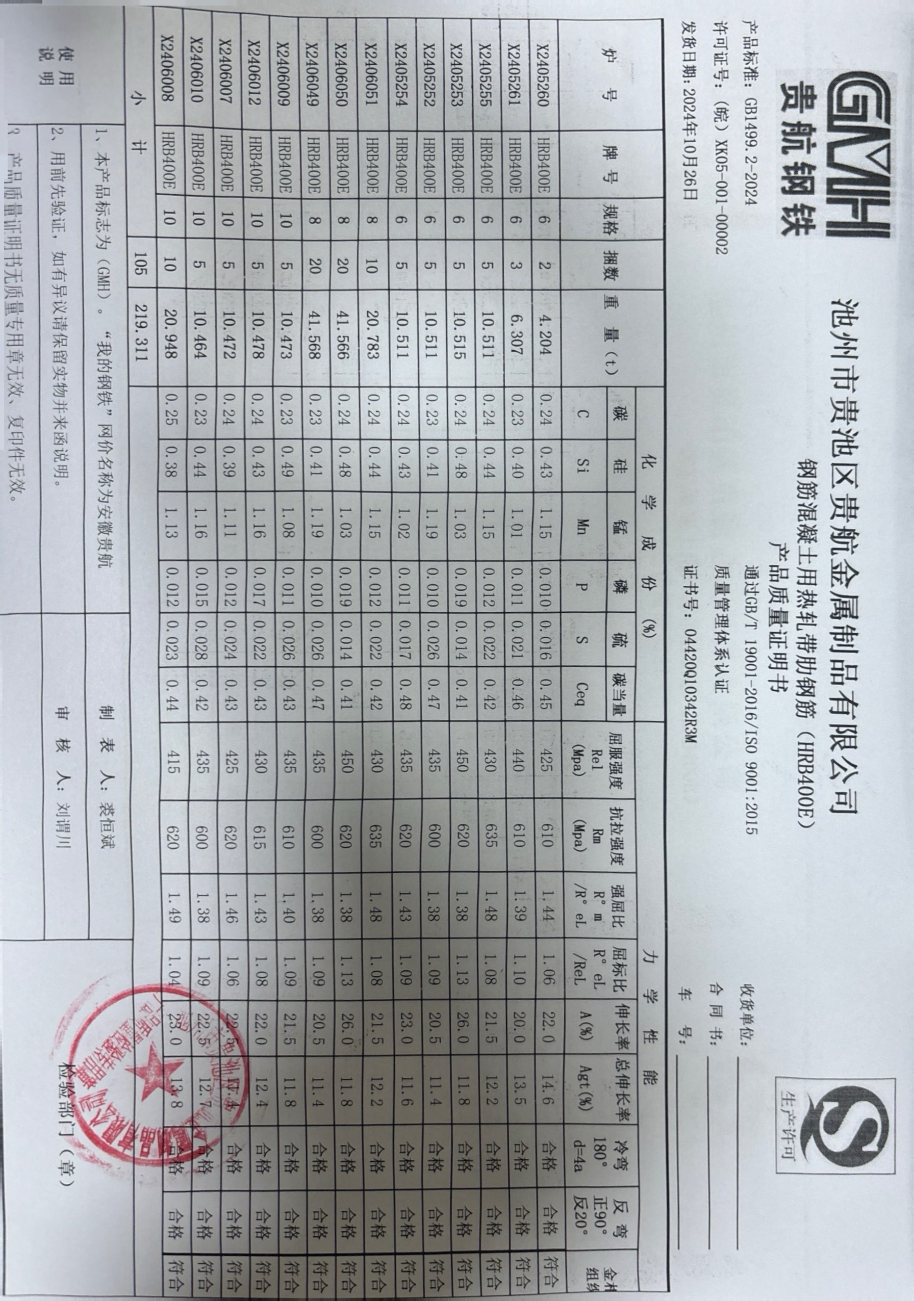 丹阳龙江钢铁有限公司质量证明书天津启润投资有限公司