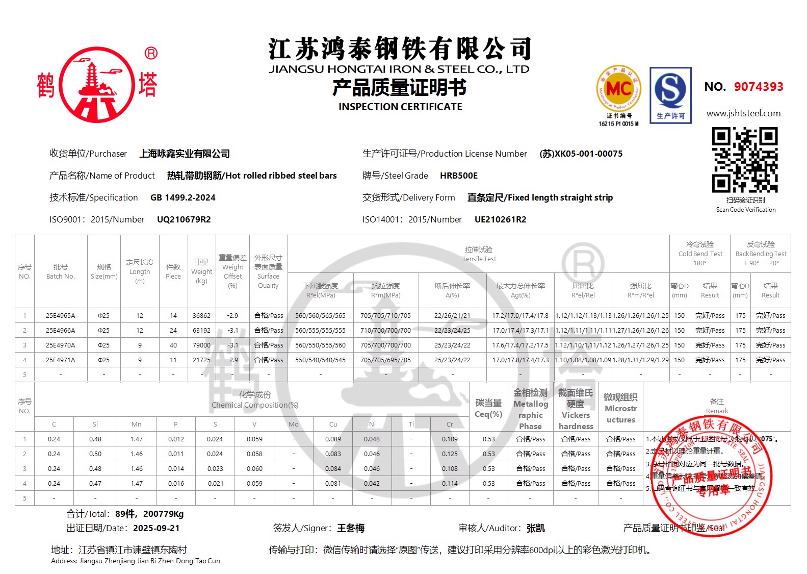 江苏鸿泰钢铁有限公司9074804上海咏鑫实业有限公司NOHI