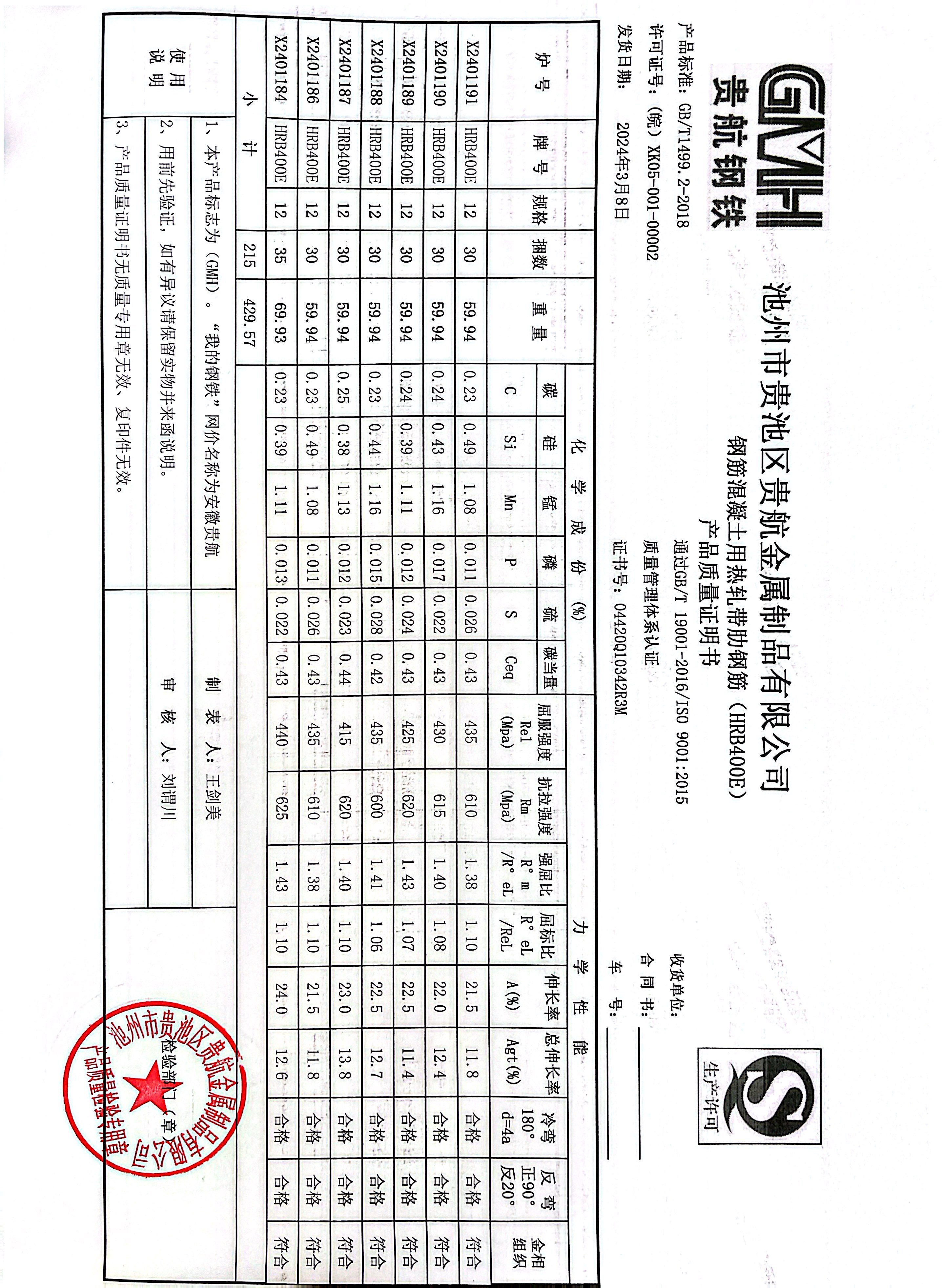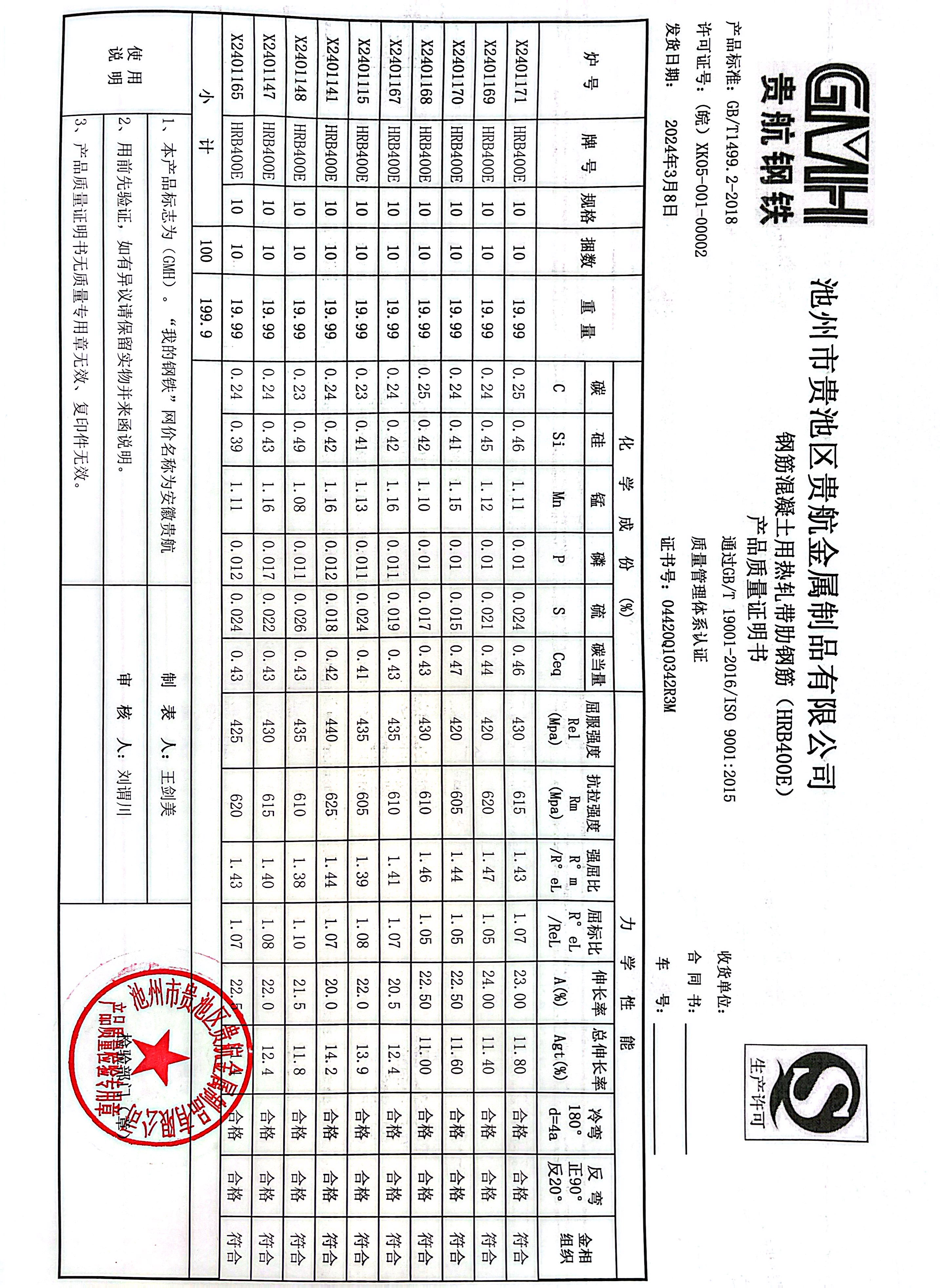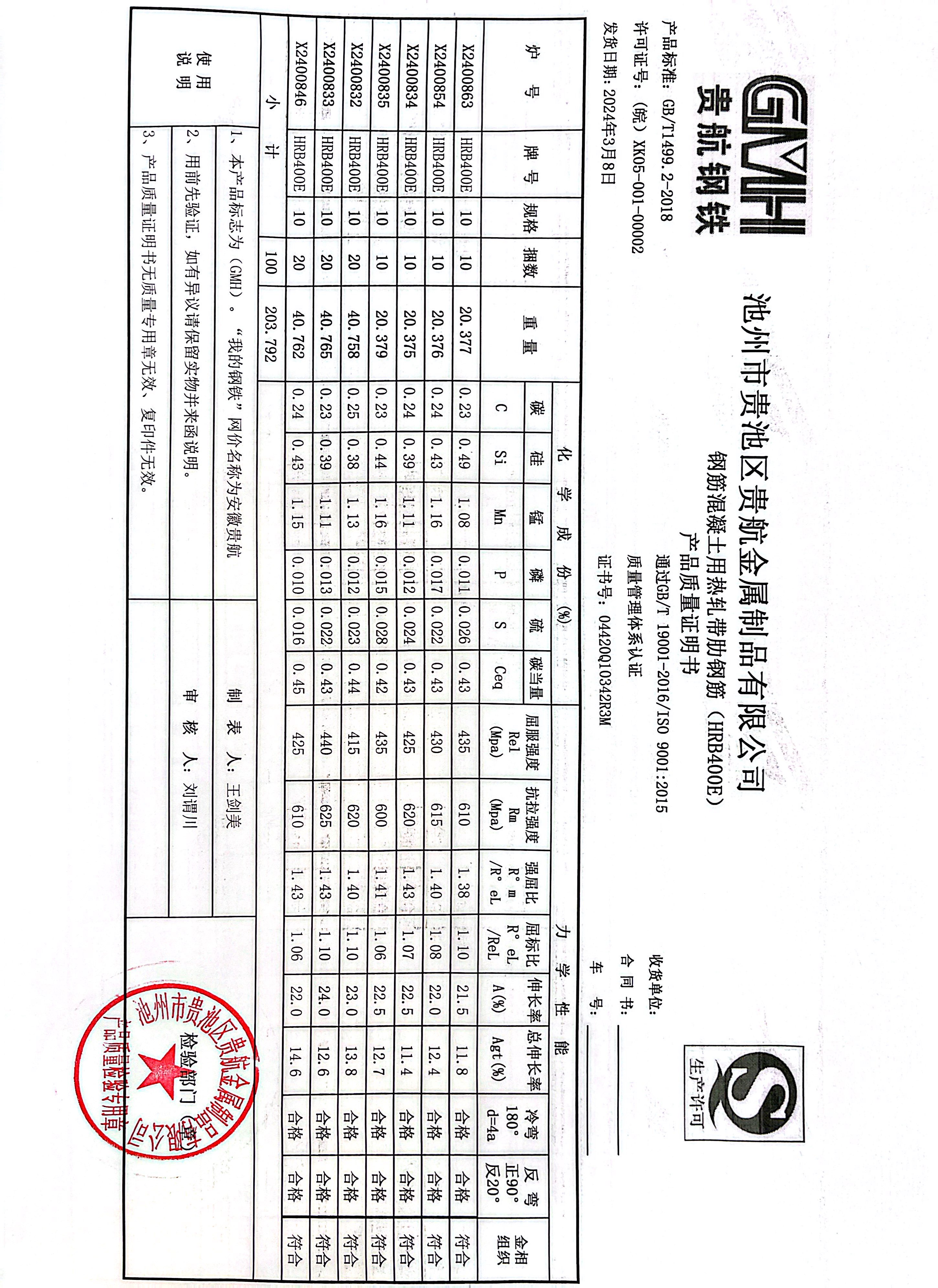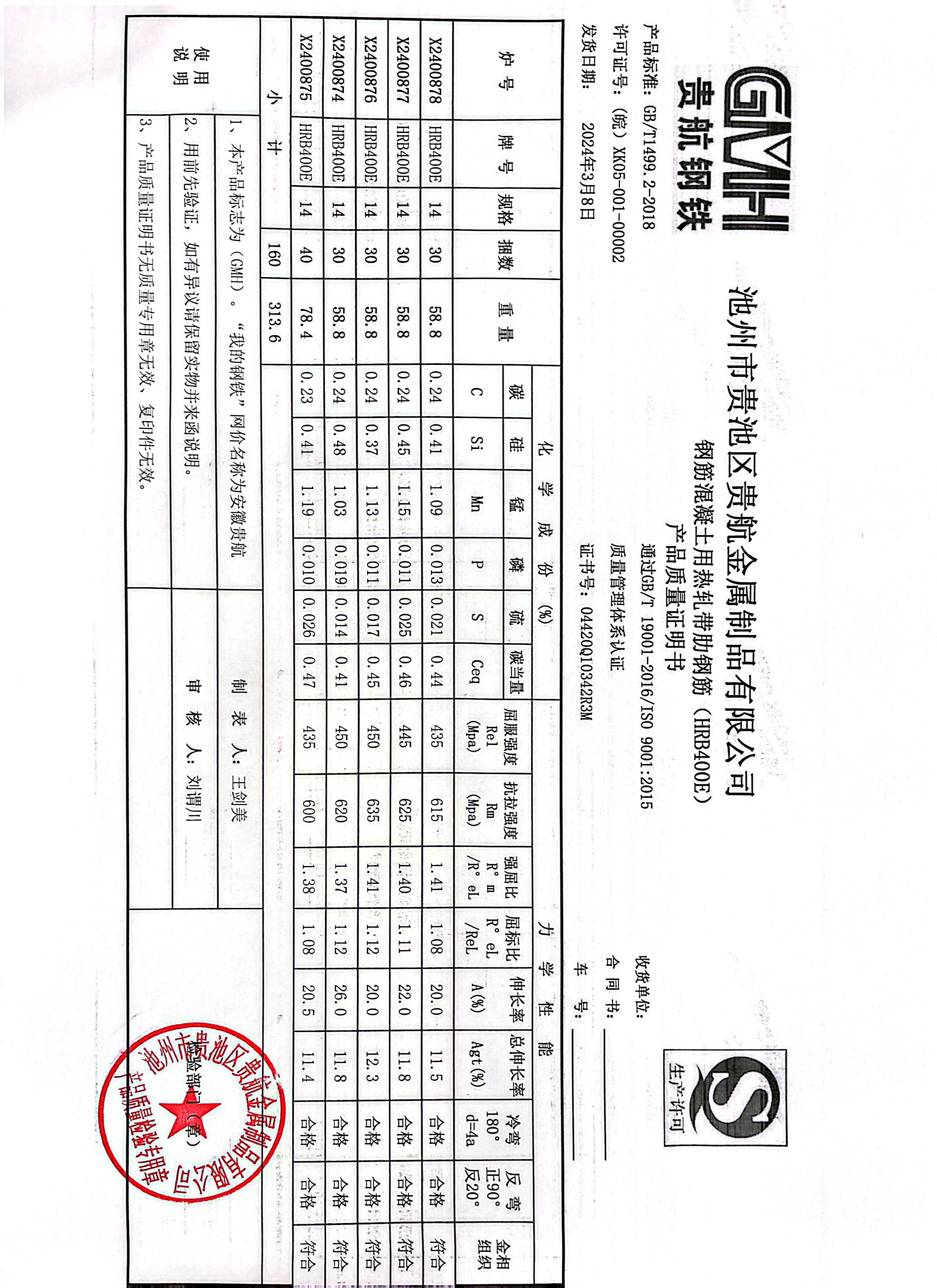丹阳龙江钢铁有限公司质量证明书天津启润投资有限公司
