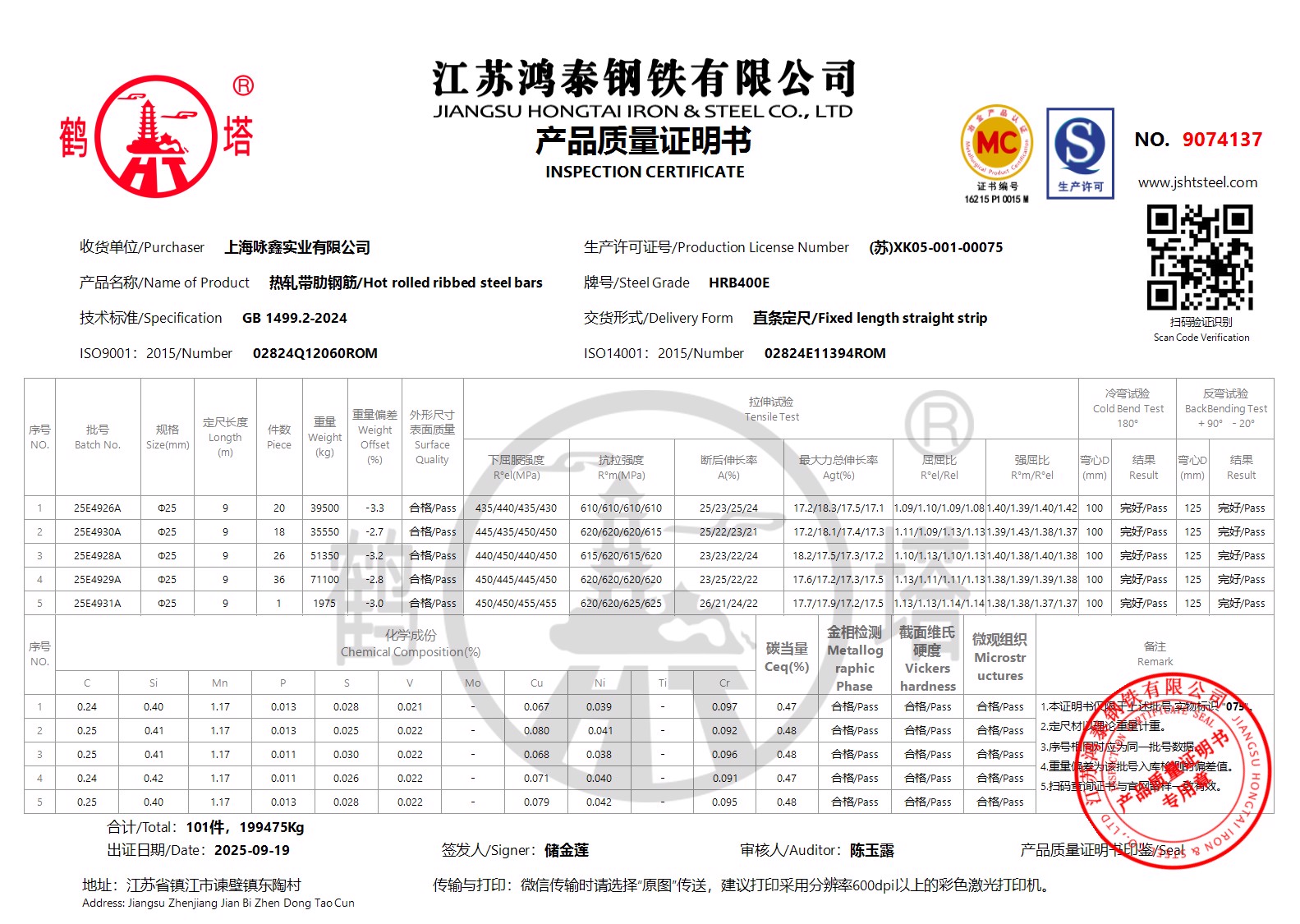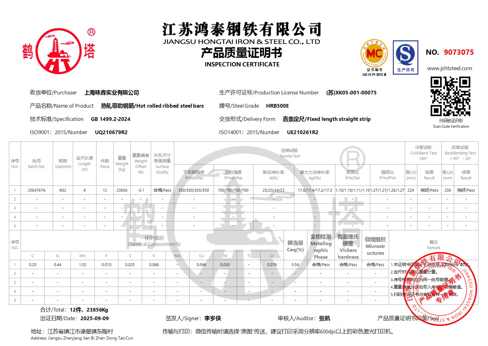 江苏鸿泰钢铁有限公司9074136上海咏鑫实业有限公司NO81IVD