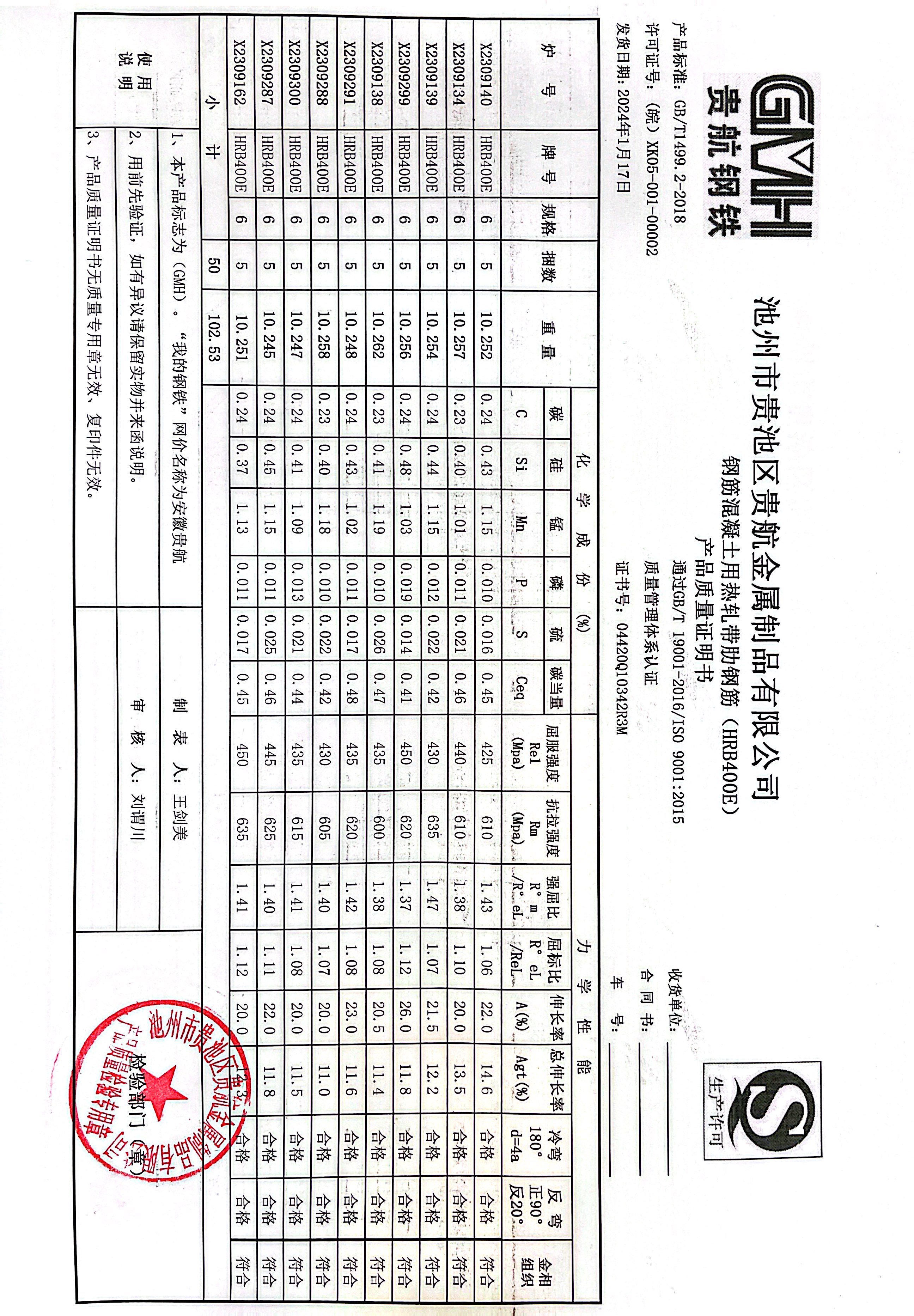 丹阳龙江钢铁有限公司质量证明书天津启润投资有限公司