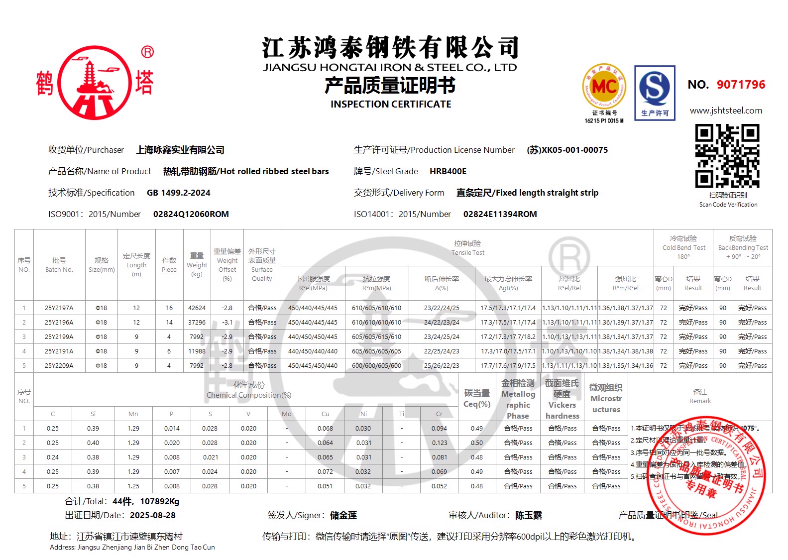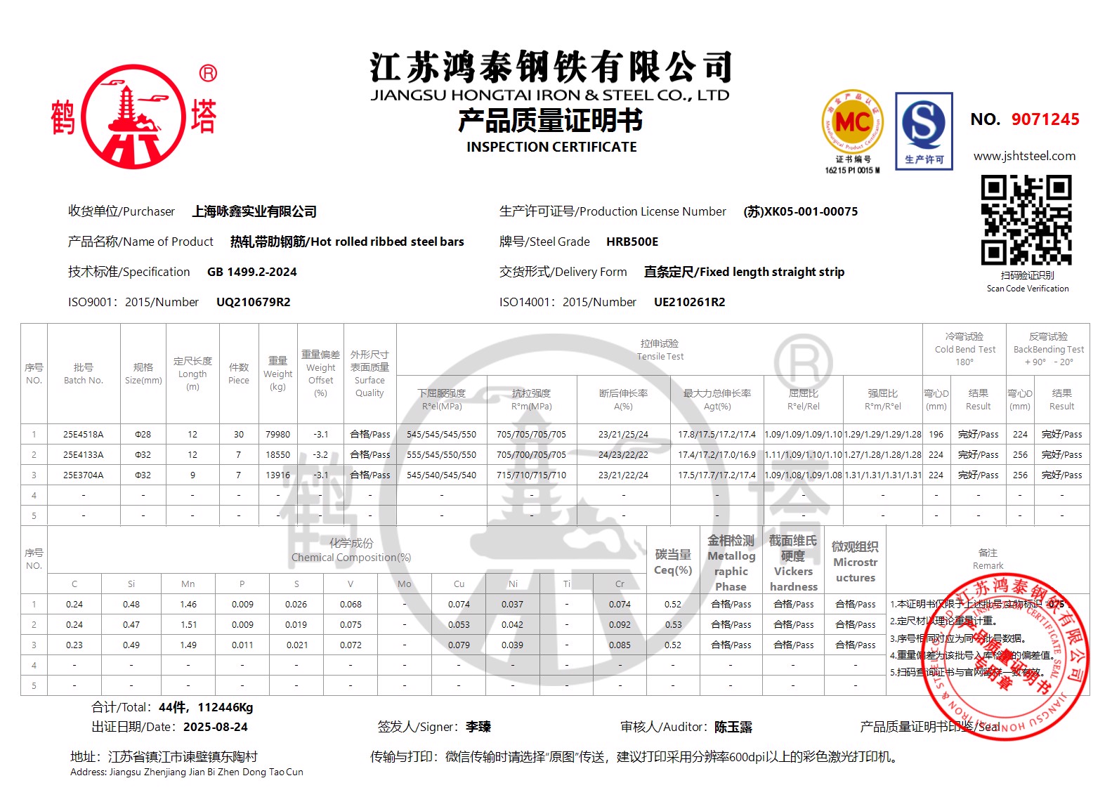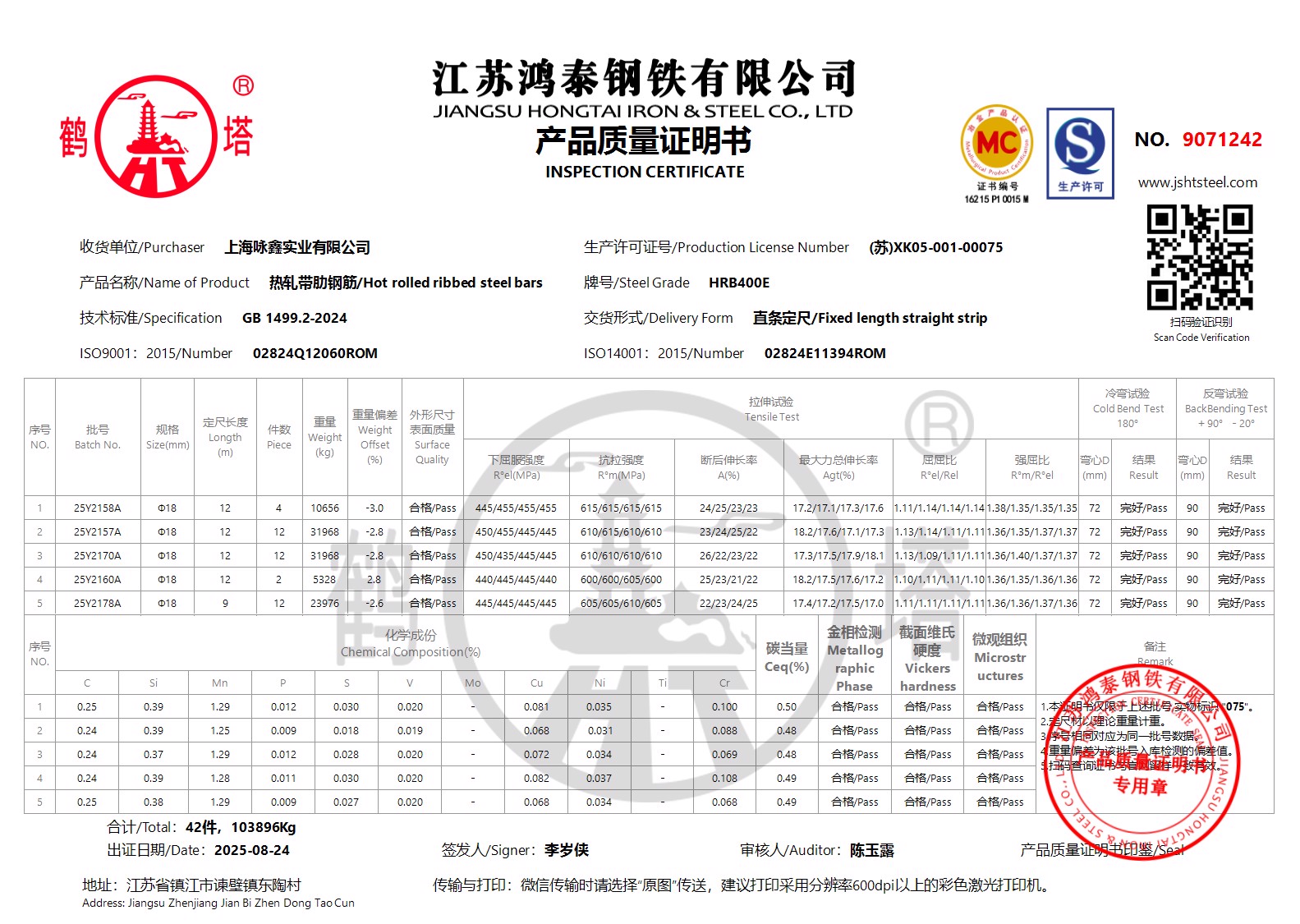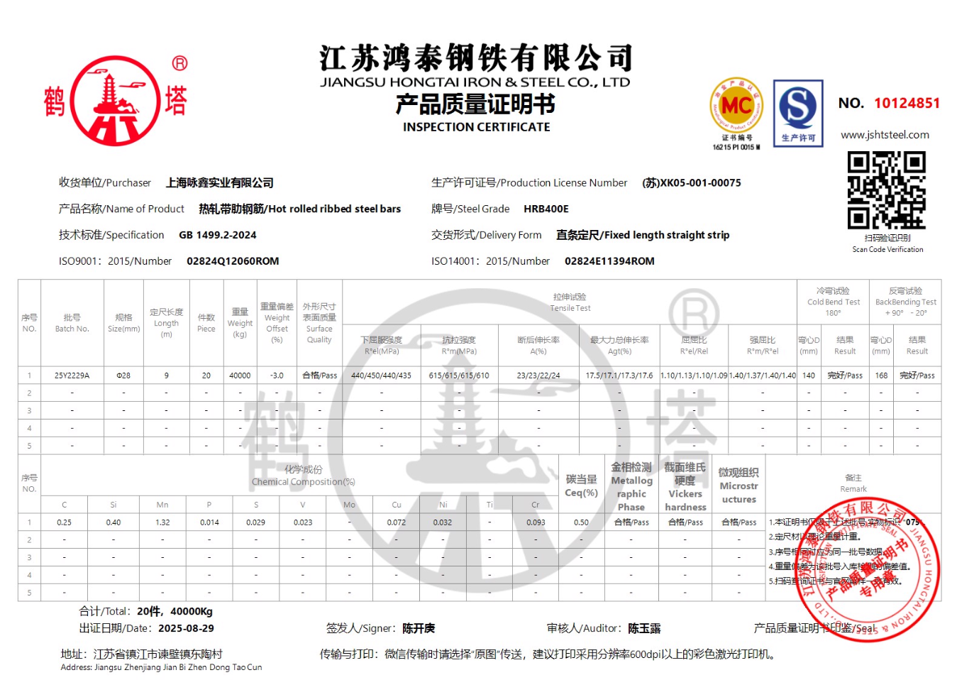 江苏鸿泰钢铁有限公司9072420上海咏鑫实业有限公司NOHI