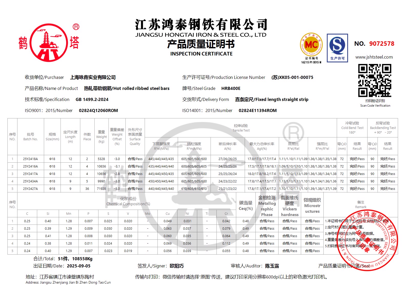 江苏鸿泰钢铁有限公司9072578上海咏鑫实业有限公司