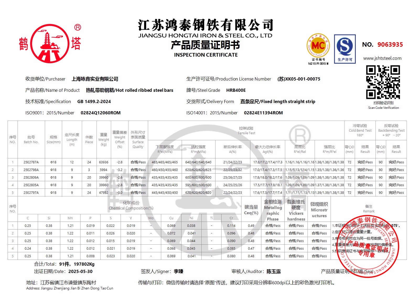 江苏鸿泰钢铁有限公司9065595上海咏鑫实业有限公司