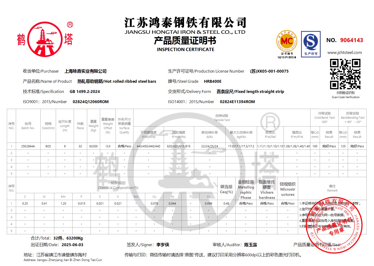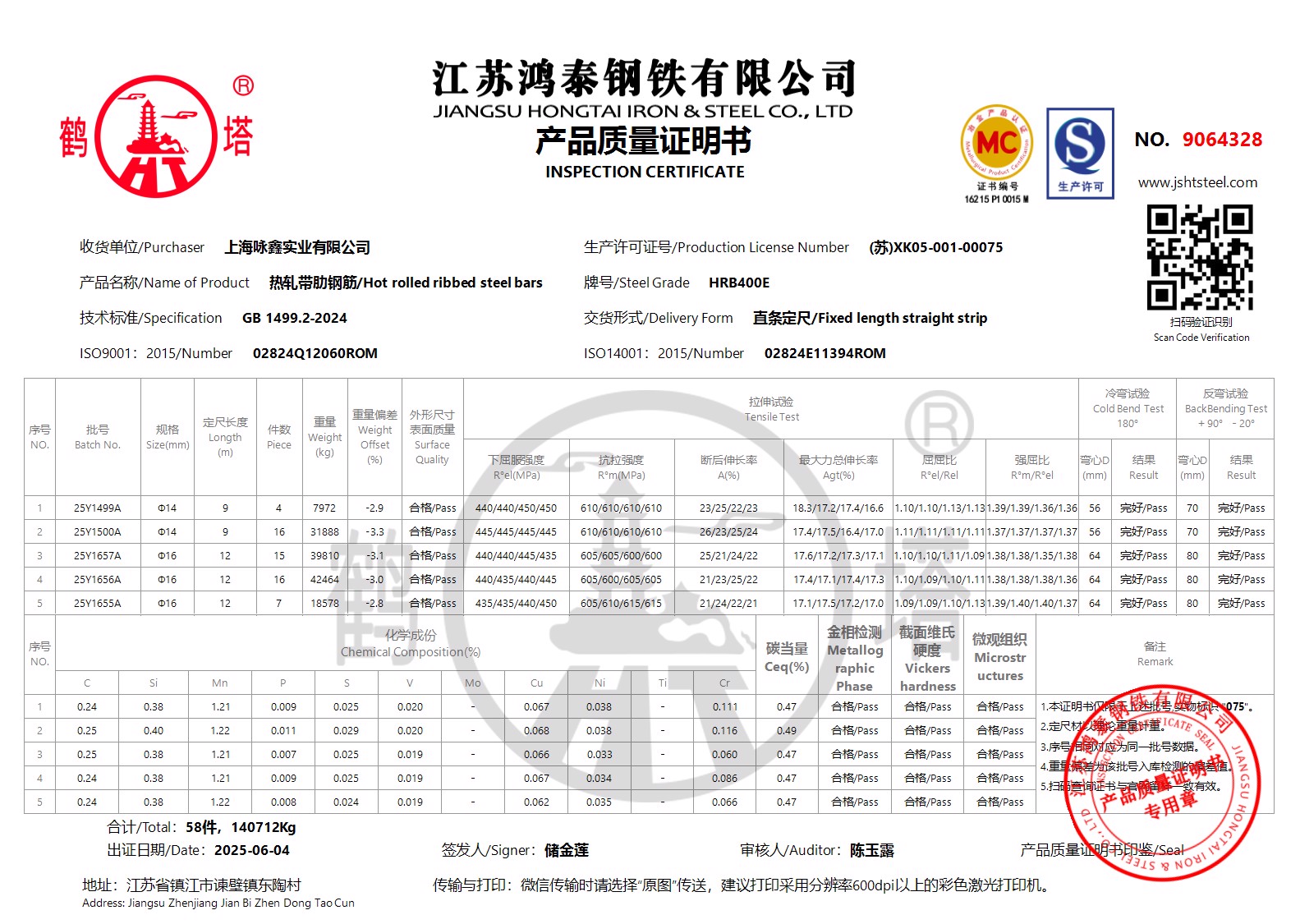 江苏鸿泰钢铁有限公司9064328上海咏鑫实业有限公司NOHI