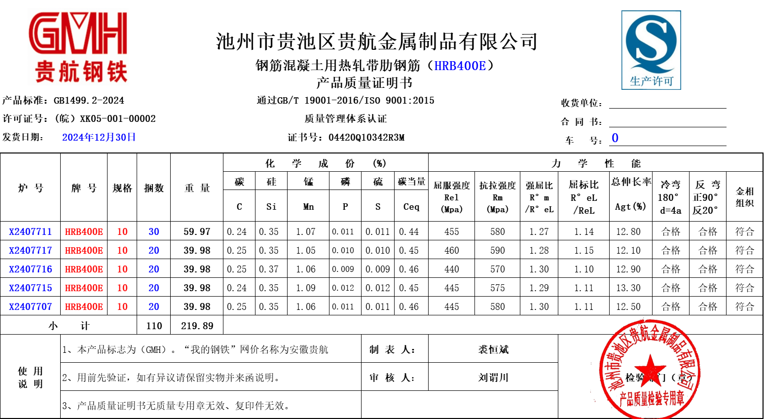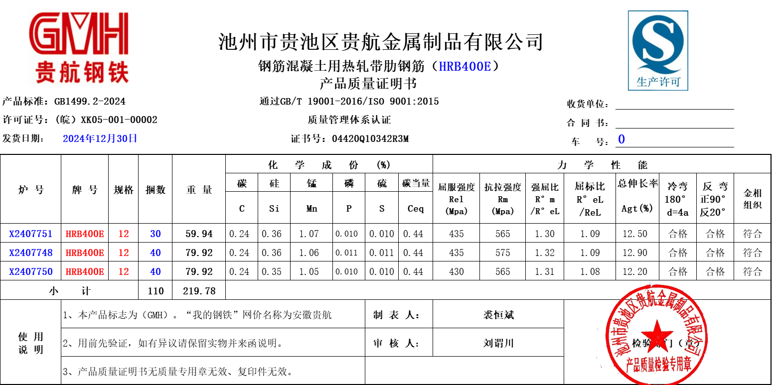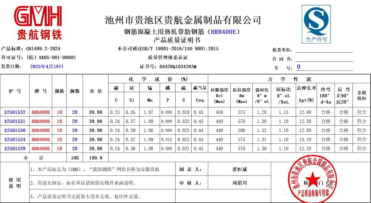 池州市贵池区贵航金属制品有限公司本公司通过GB/T19001-2016/ISO9001:2015
