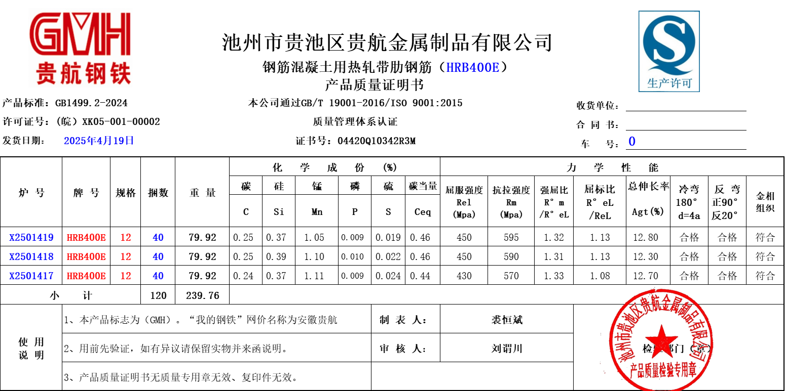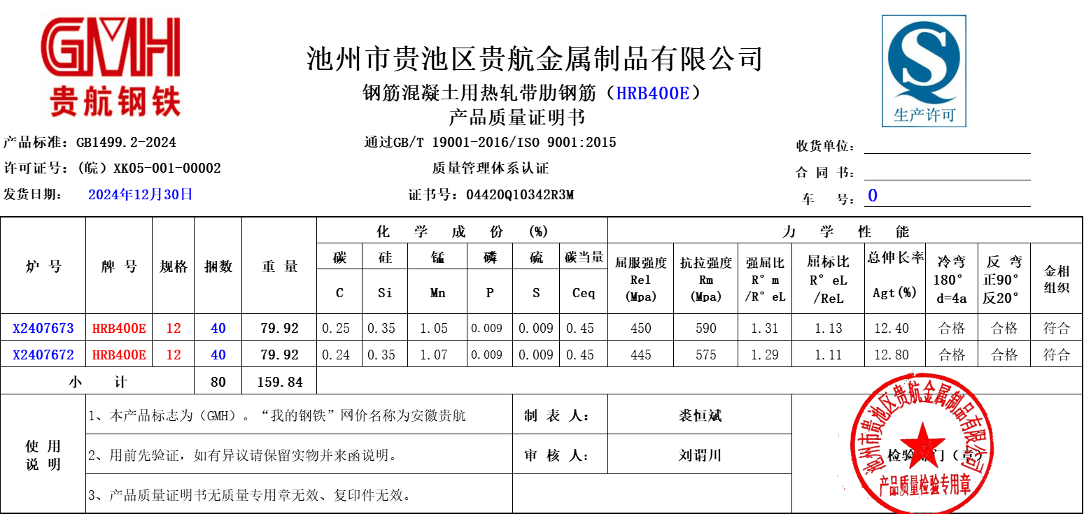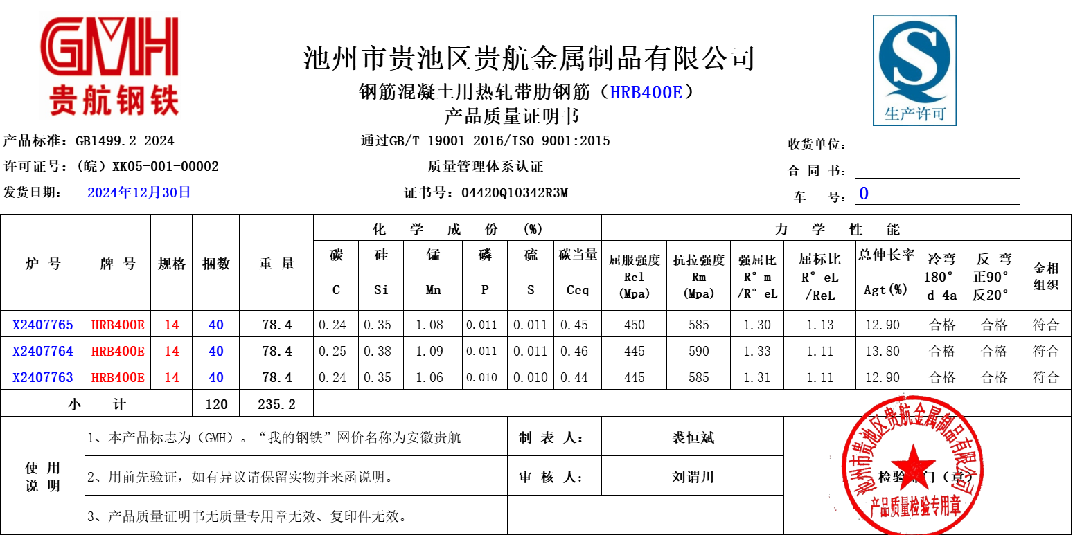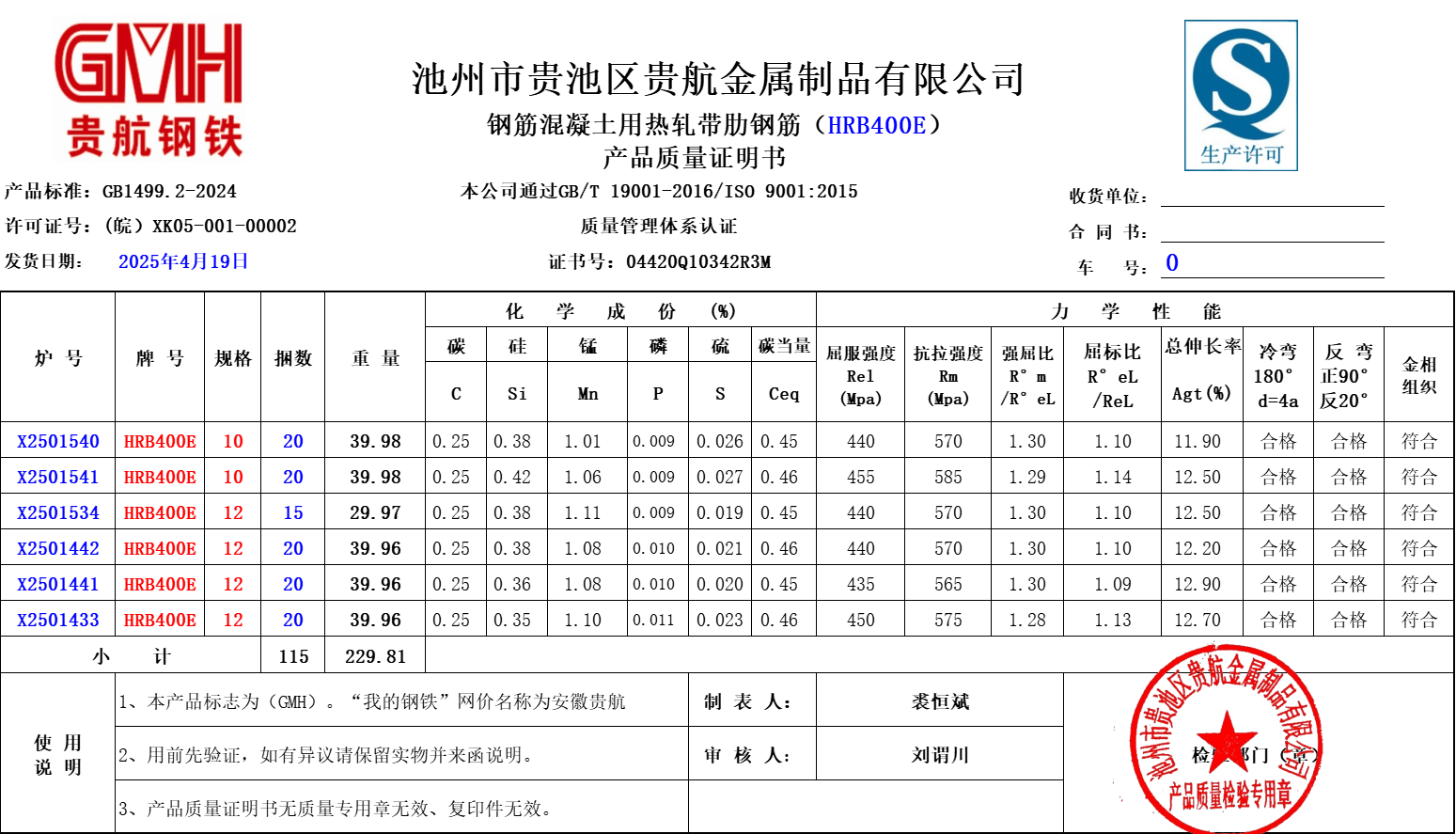 池州市贵池区贵航金属制品有限公司本公司通过GB/T19001-2016/ISO9001:2015