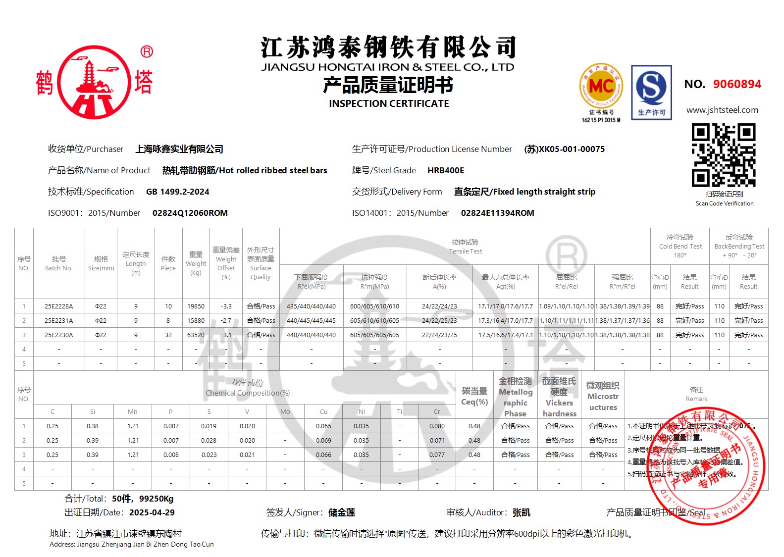 江苏鸿泰钢铁有限公司9060894上海咏鑫实业有限公司