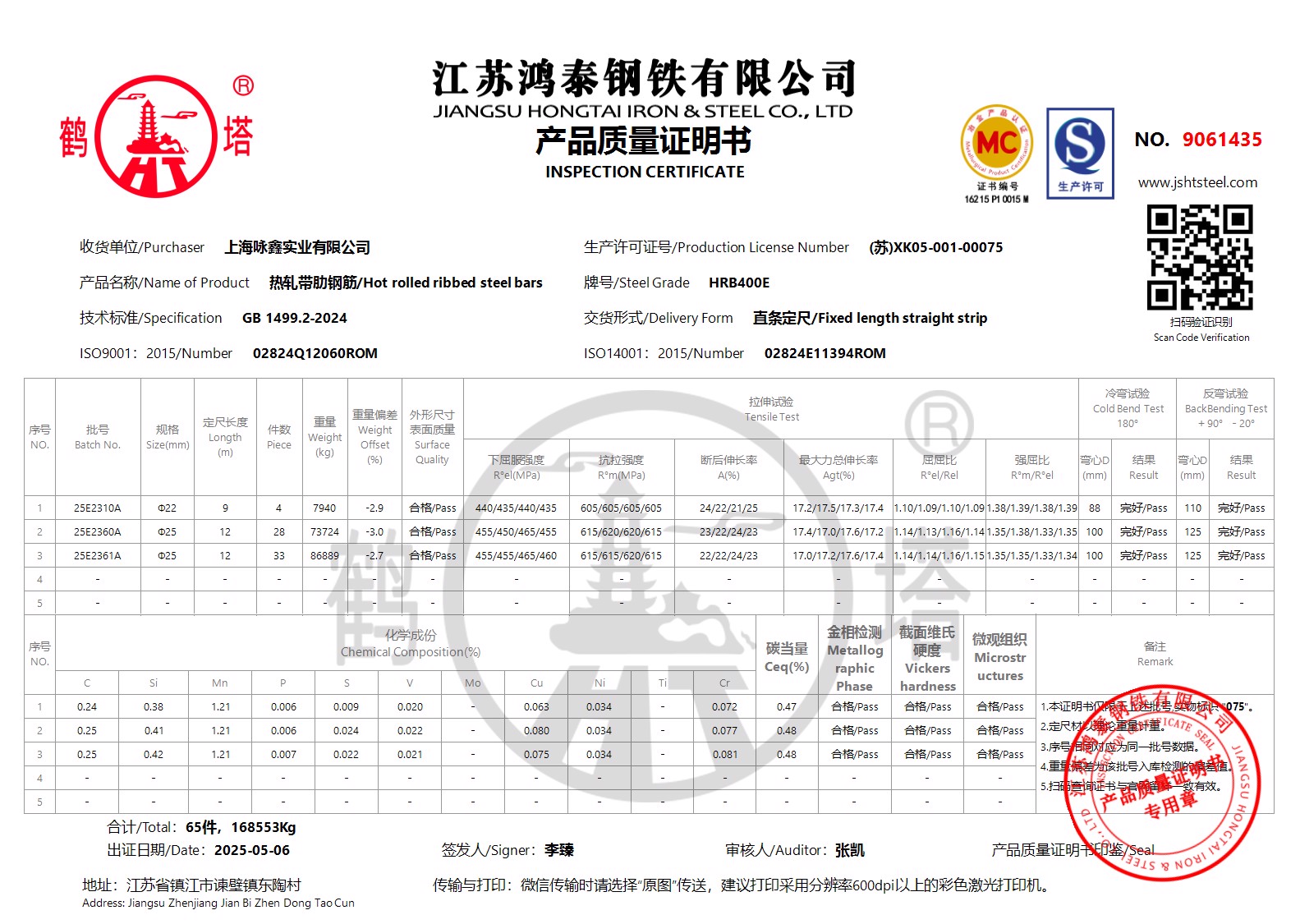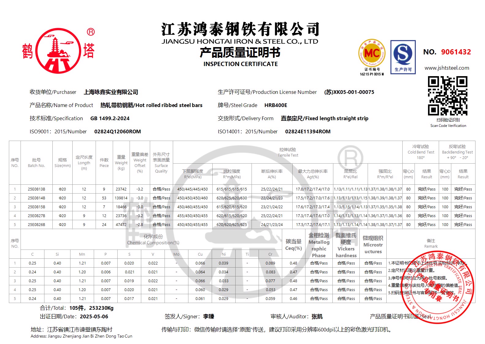 江苏鸿泰钢铁有限公司9061434上海咏鑫实业有限公司