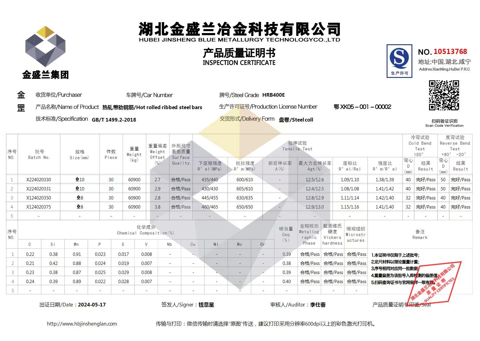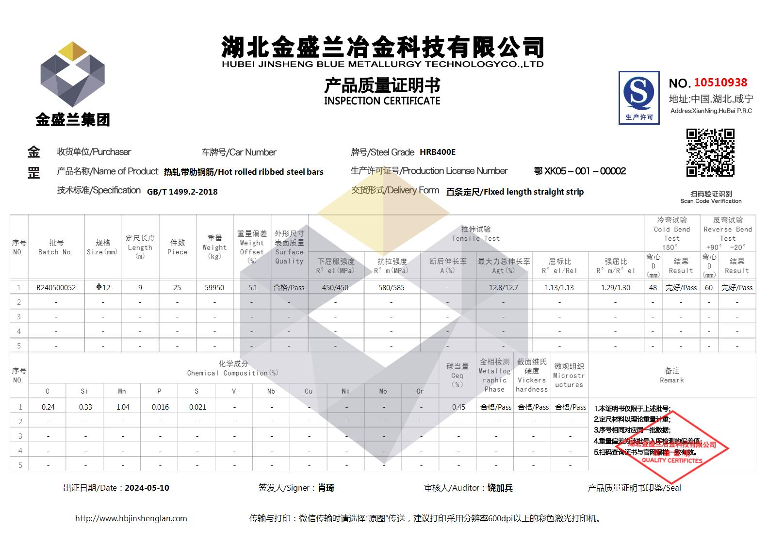 湖北金盛兰冶金科技有限公司10510938NONO4.重量偏差为该批号入库检测的偏差值:公司