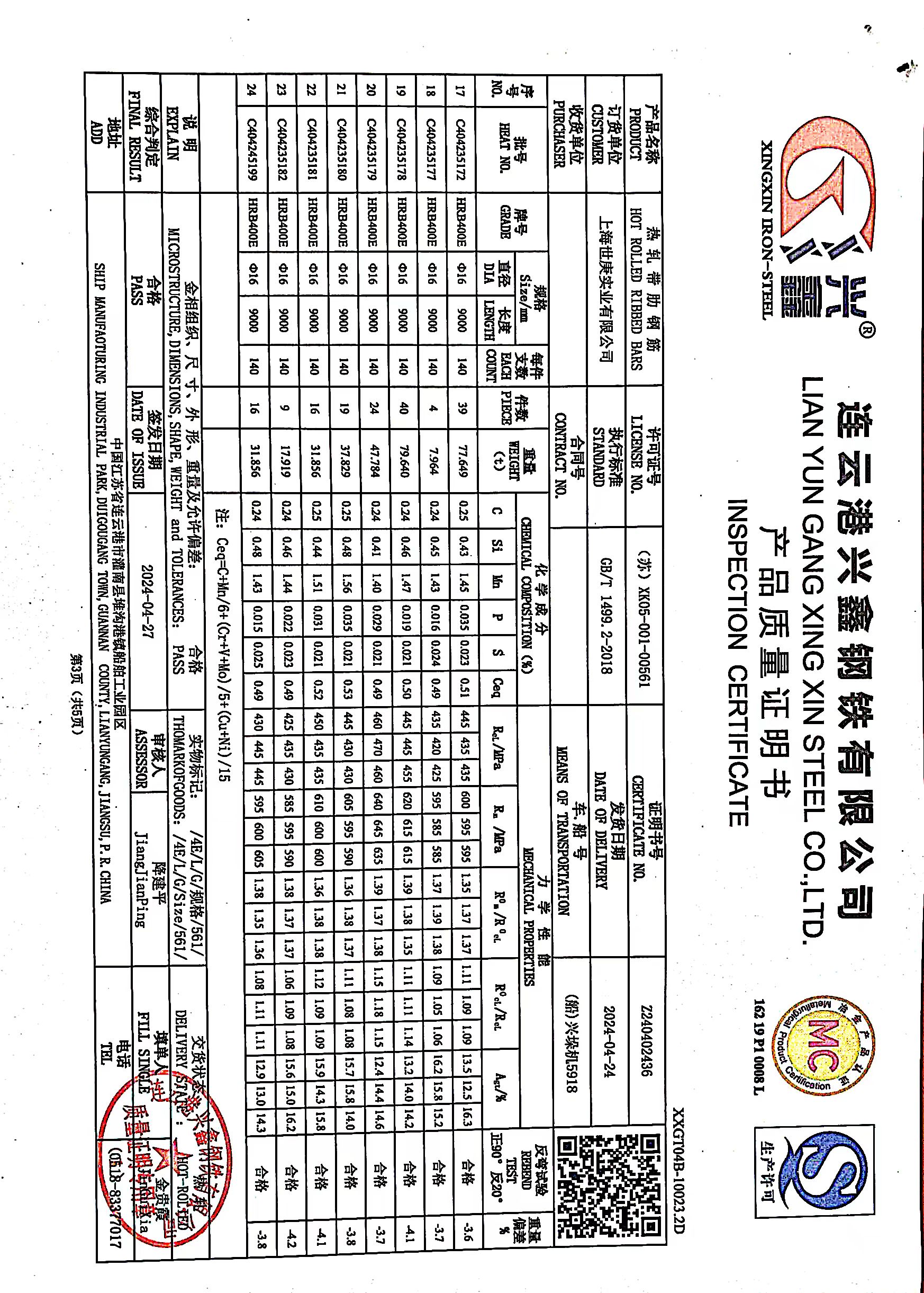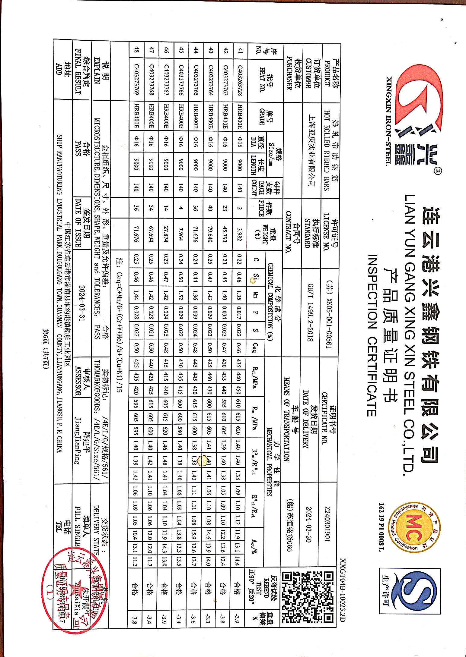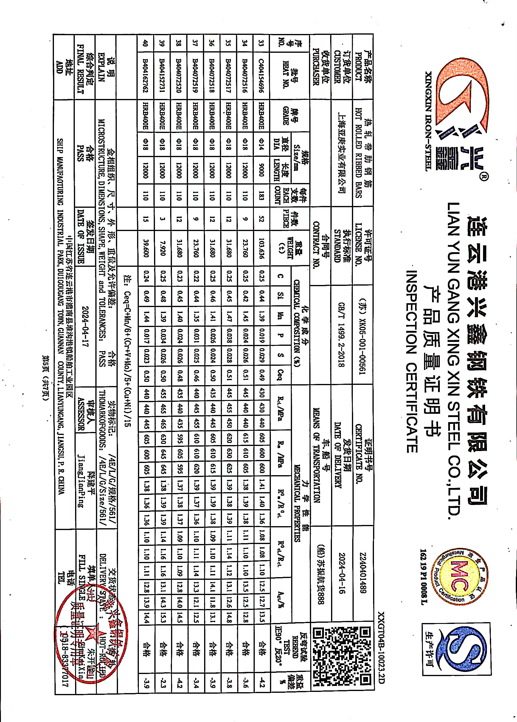 YXGT04B-10023A.3连云港亚新钢铁有限公司上海盛和国际贸易有限公司NOTES: