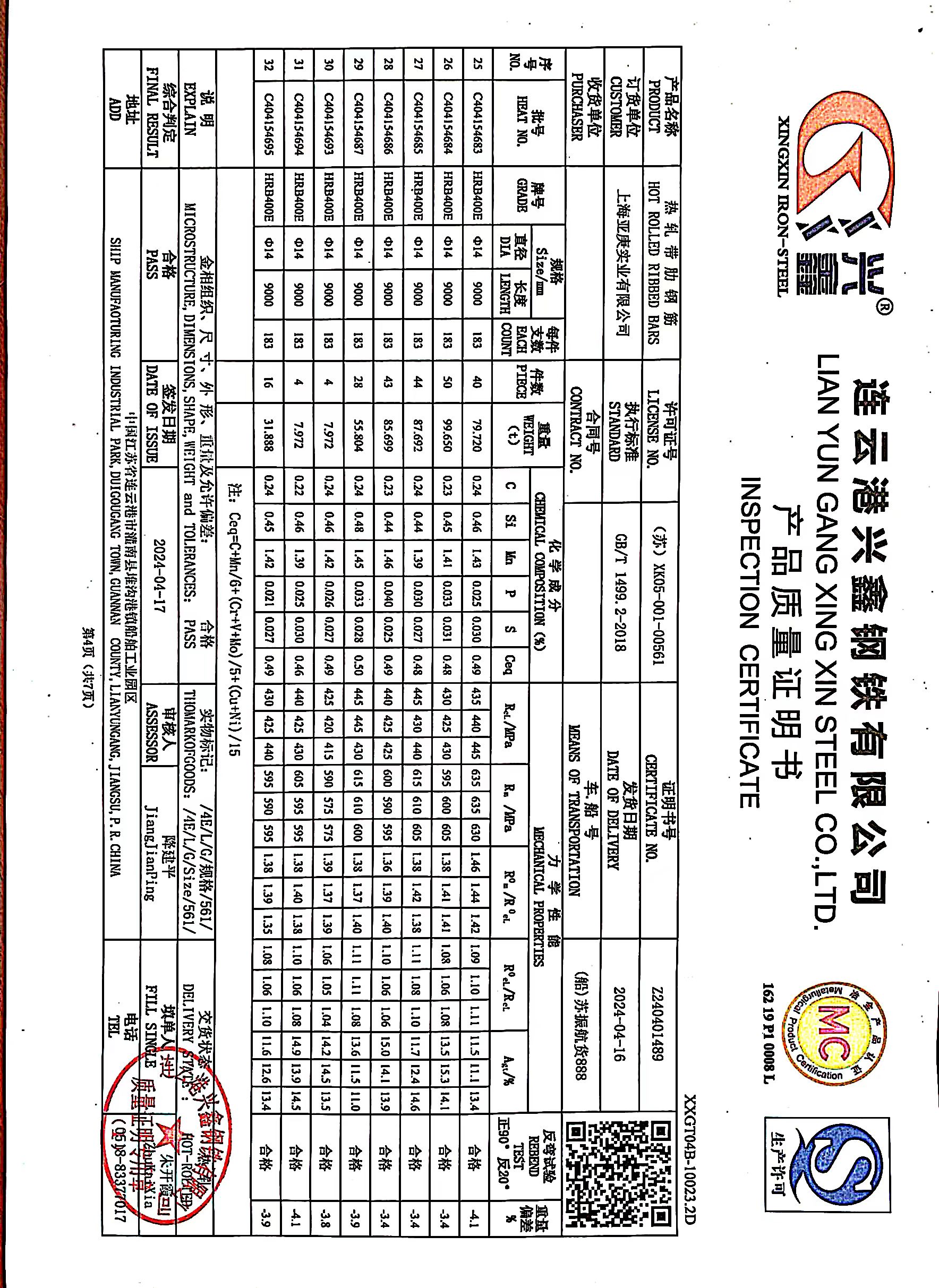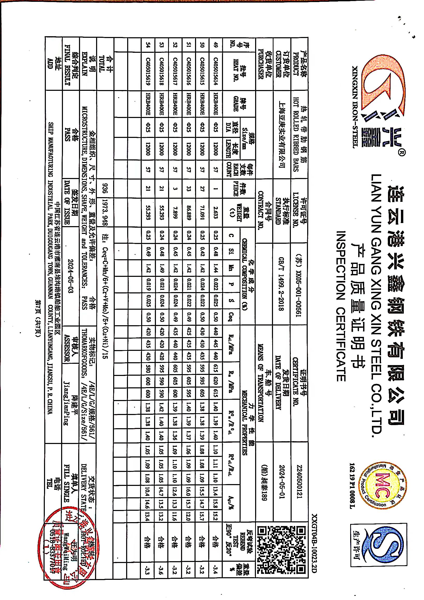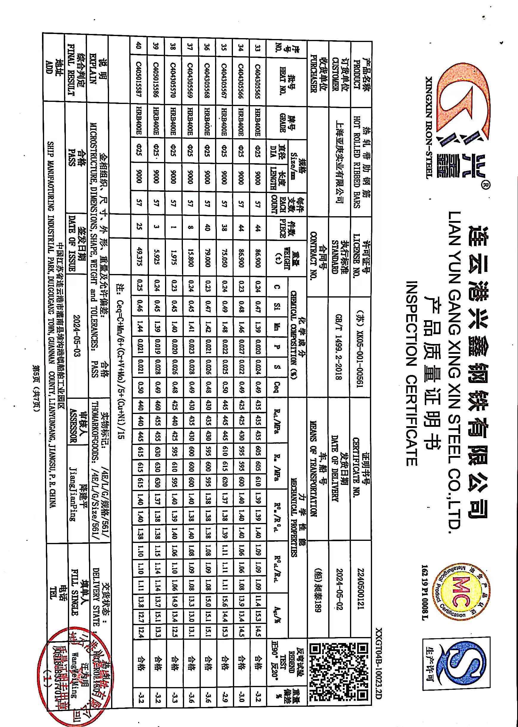 YXGT04B-10023A.3连云港亚新钢铁有限公司上海盛和国际贸易有限公司NOTES: