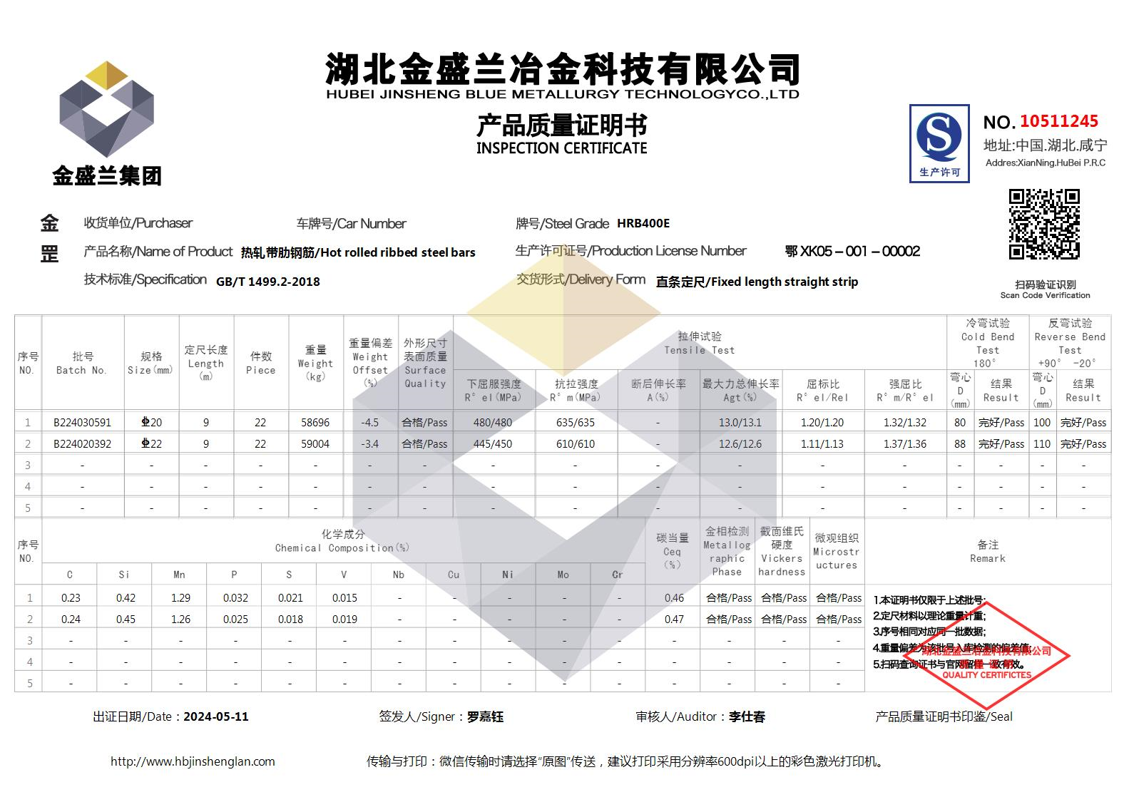 湖北金盛兰冶金科技有限公司10511245NONO4.重量偏差为该批号入库检测的偏差值:公司