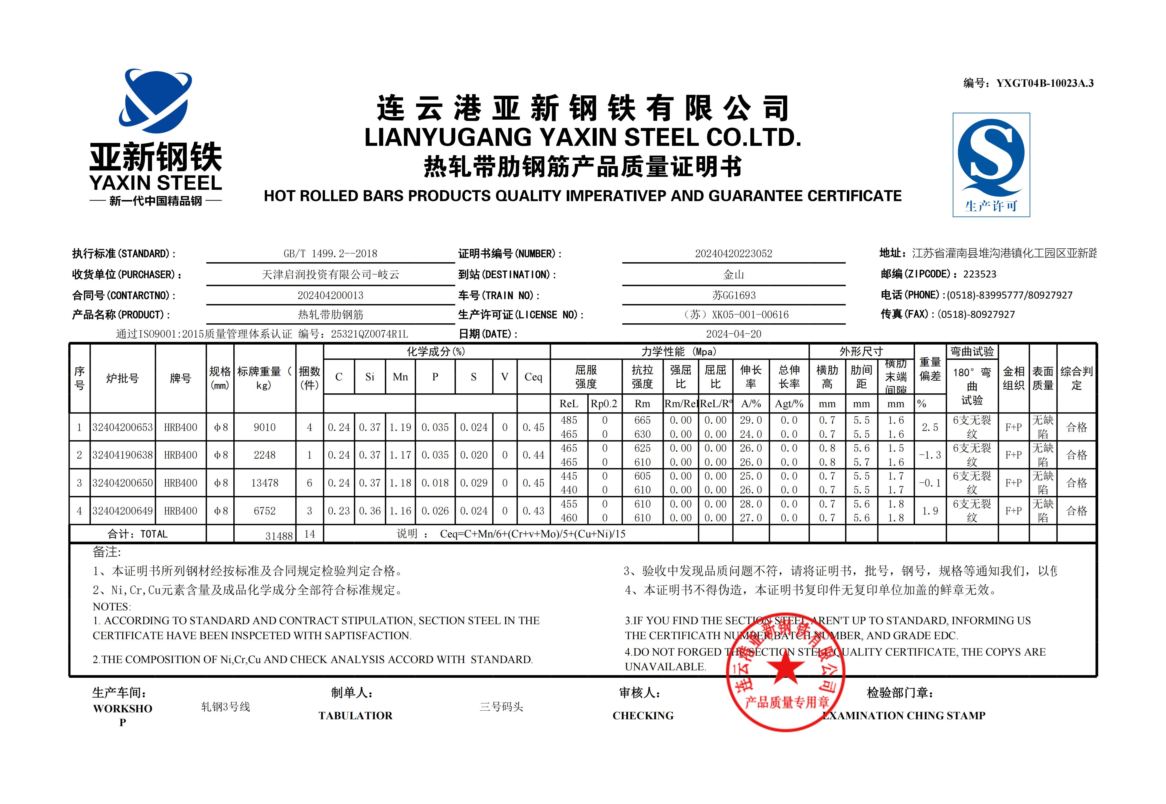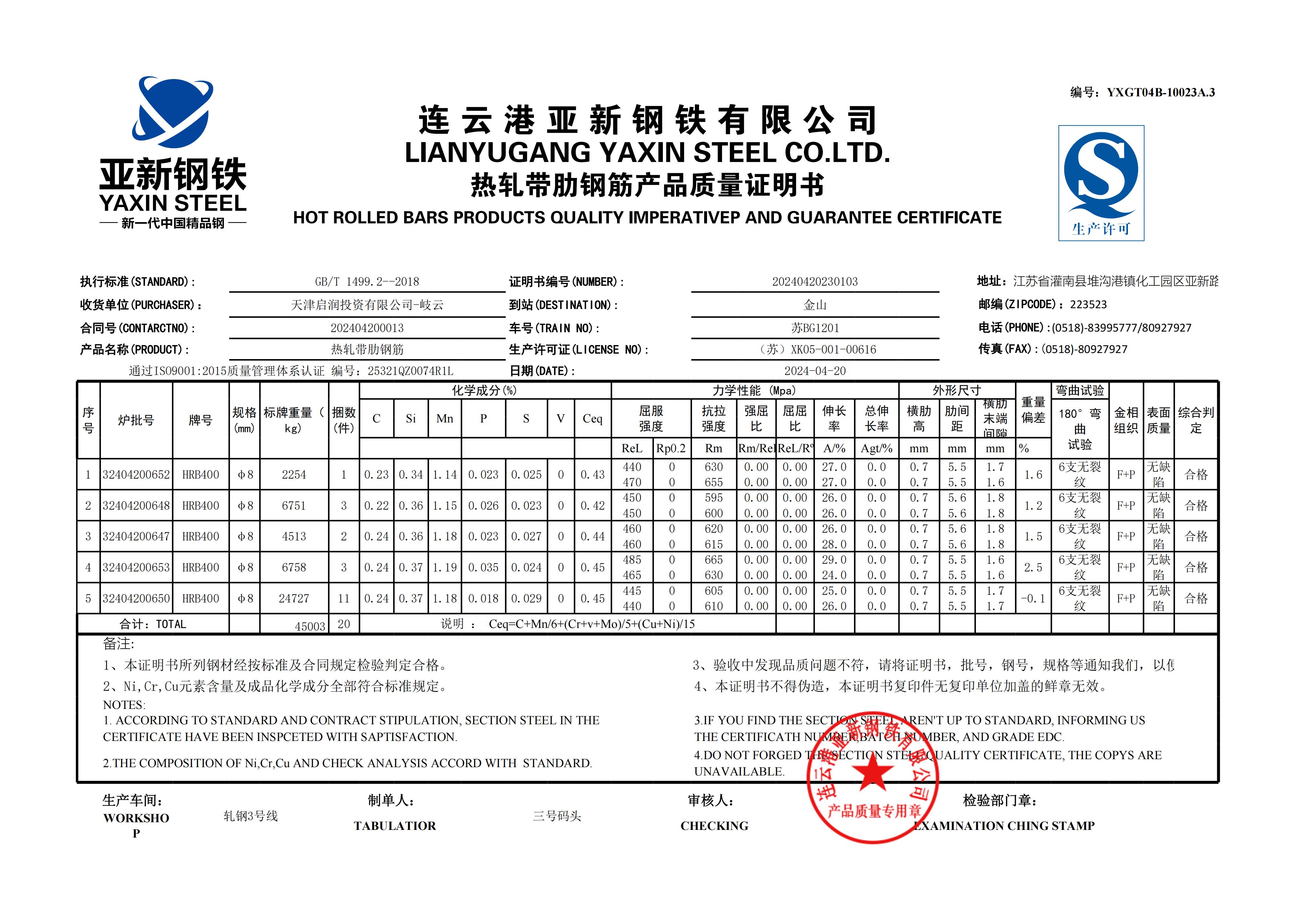 YXGT04B-10023A.3连云港亚新钢铁有限公司天津启润投资有限公司-岐云NOTES: