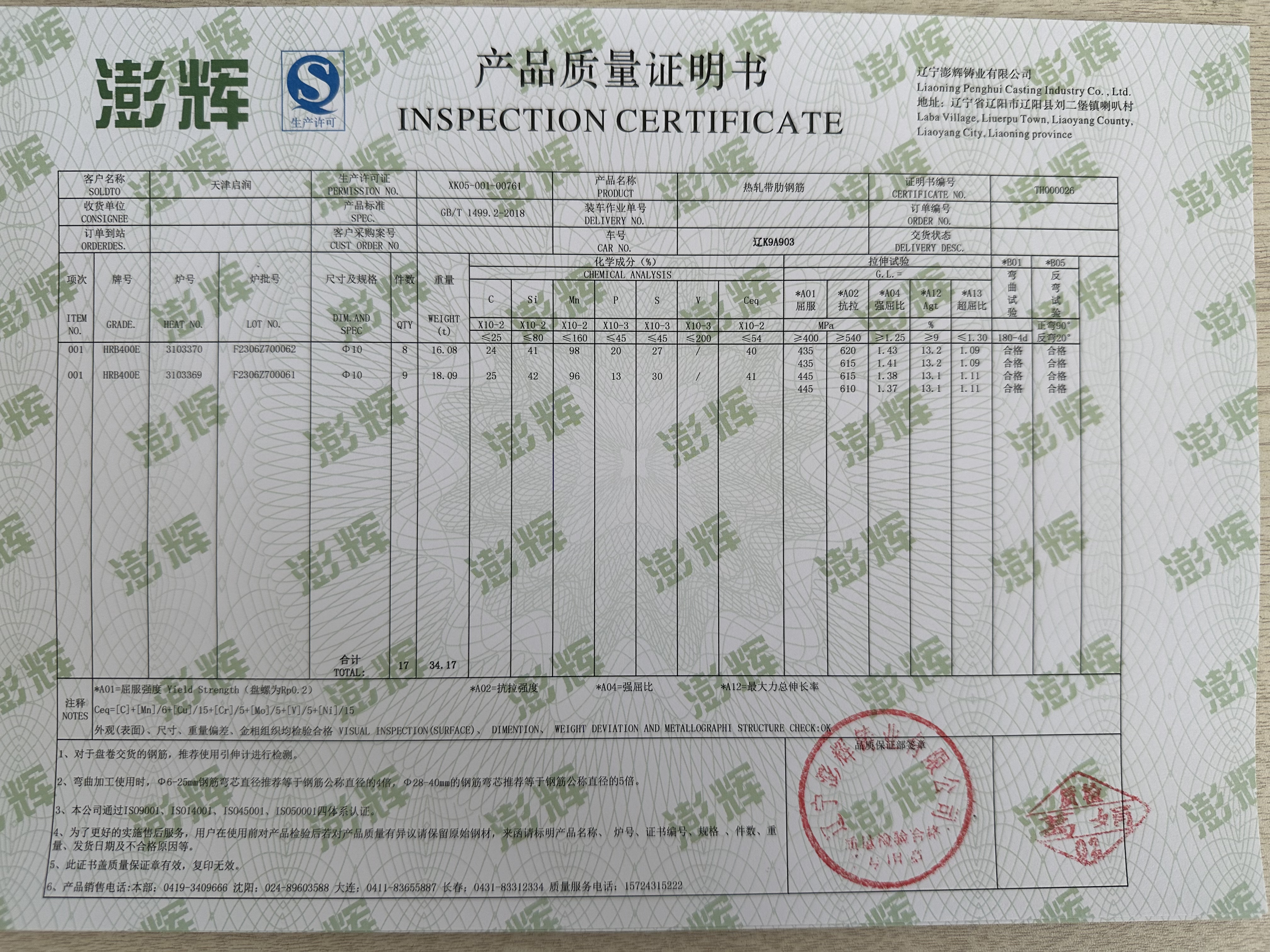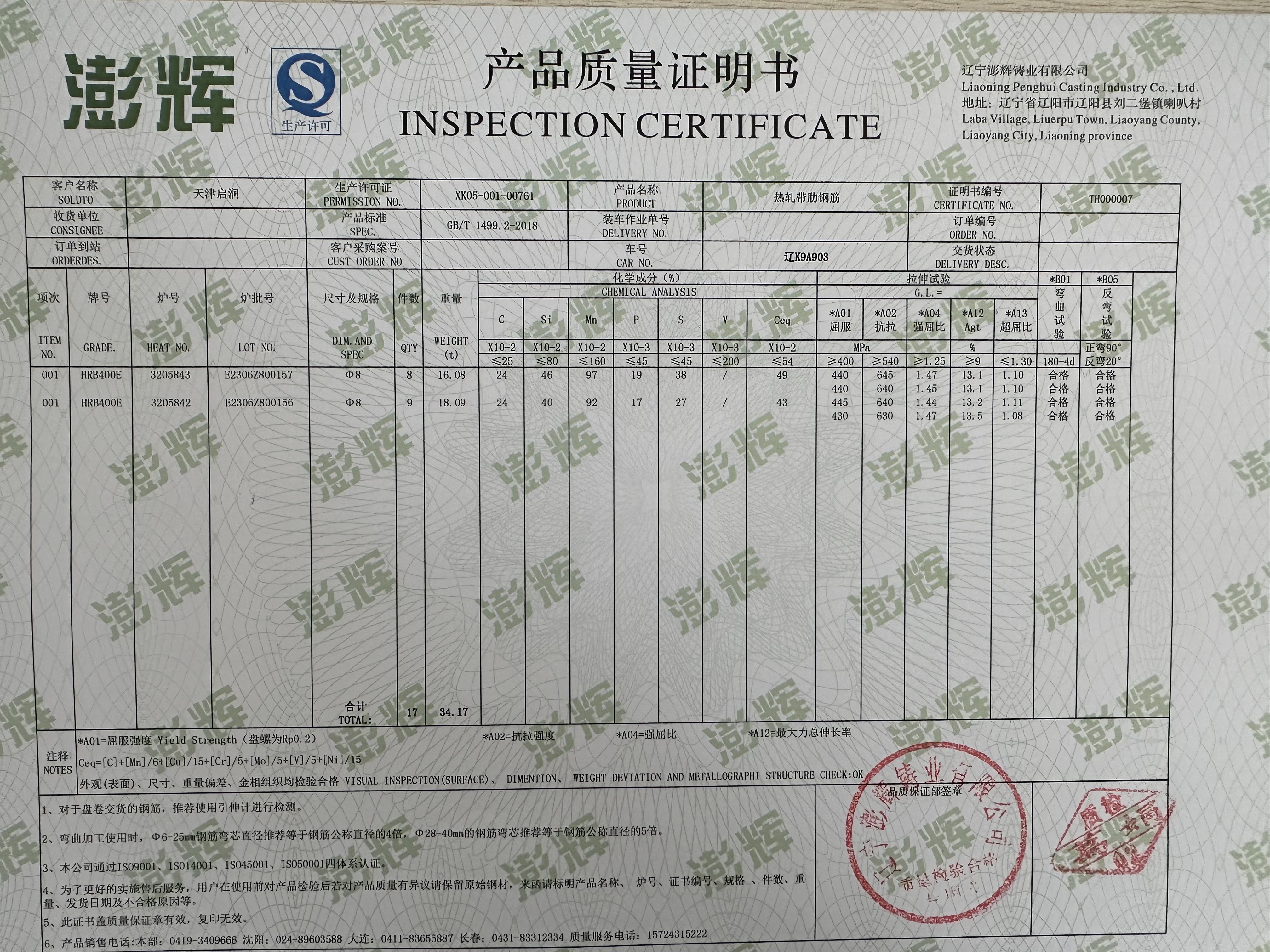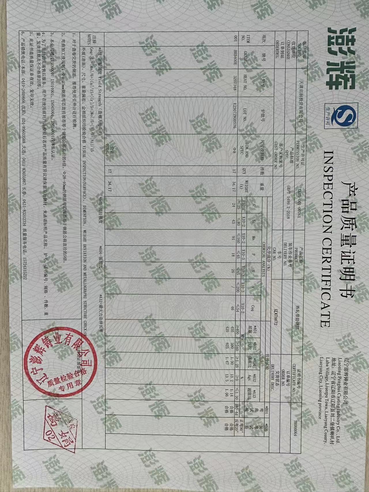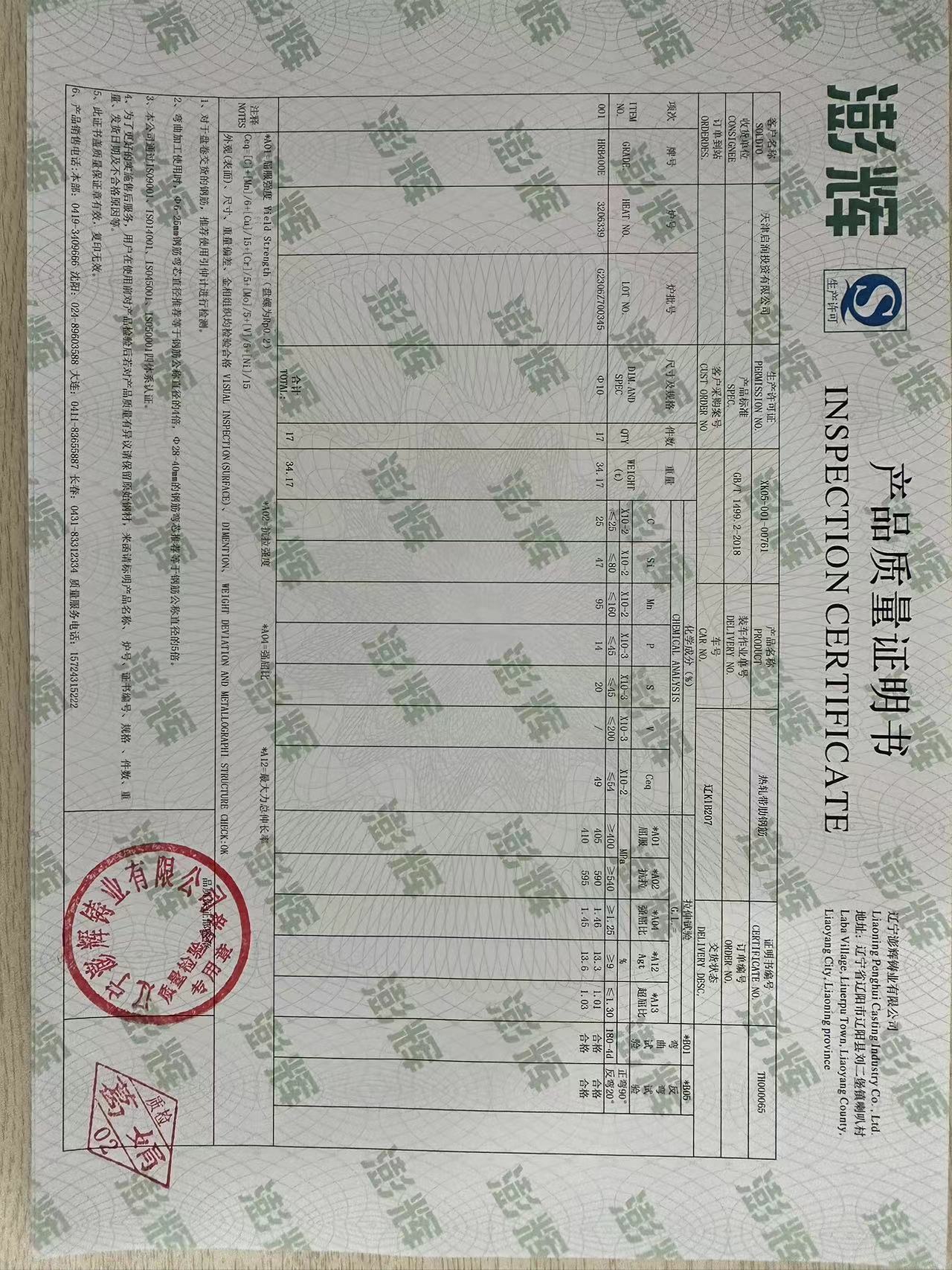 辽宁澎辉铸业有限公司NOTES3、本公司通过IS09001、IS014001、IS045001、IS050001四体系认证。