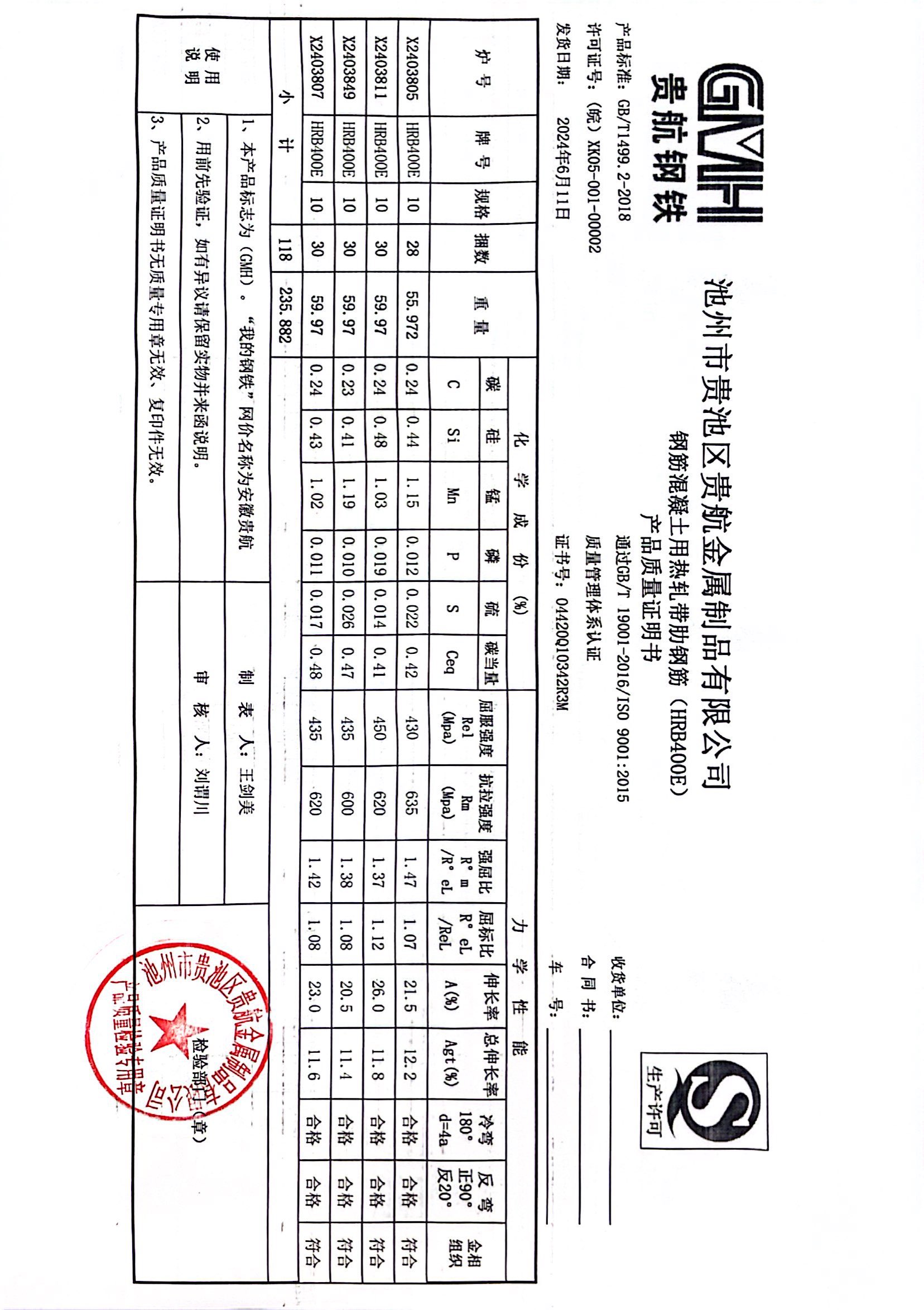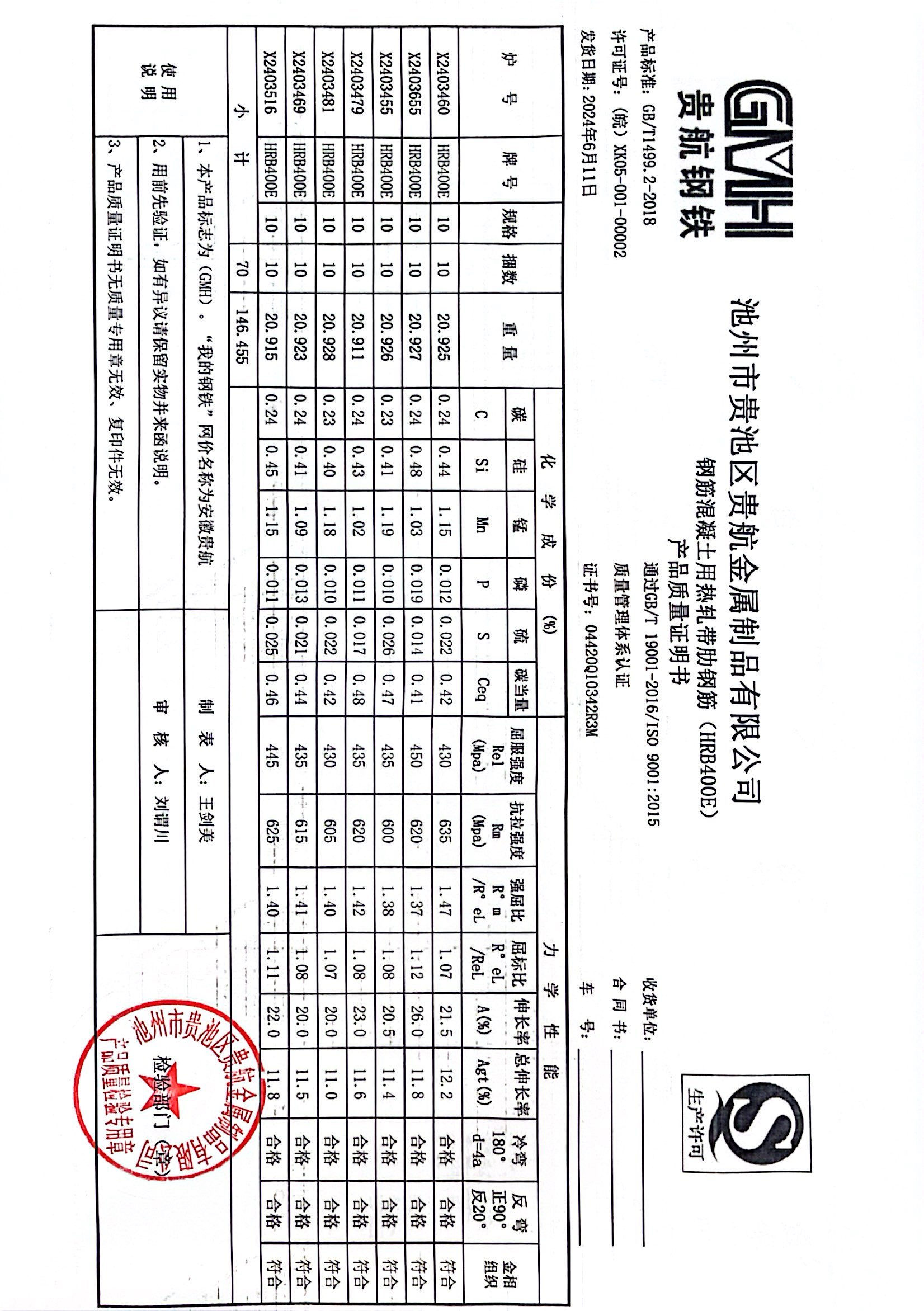 安徽省贵航特钢有限公司GH/JL-JZ-45提货单位:上海咏鑫实业有限公司3、如发现产品质量问题,请在验收后5天内向我公司质量科提出异议并保留实物,等我公司审验后处理,擅自使用我公司不负任何责任。