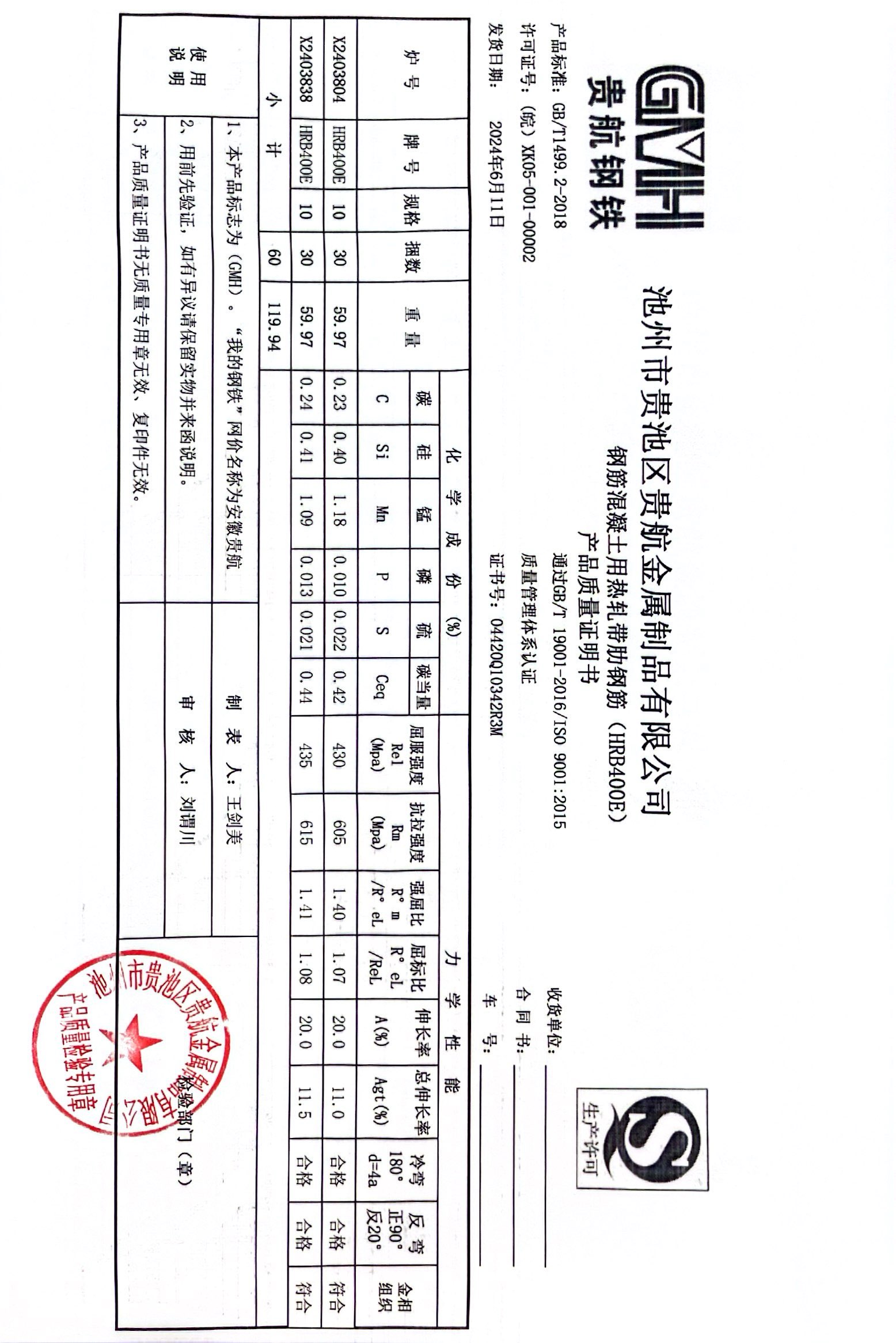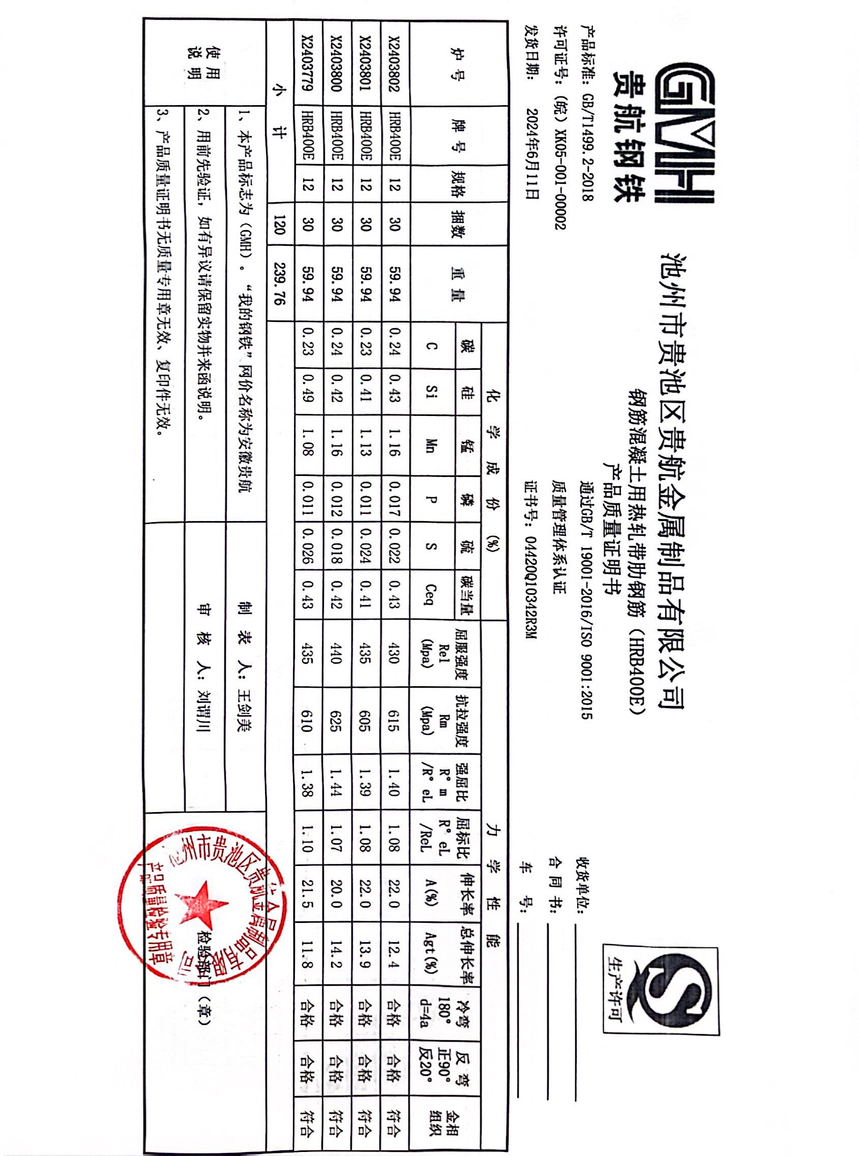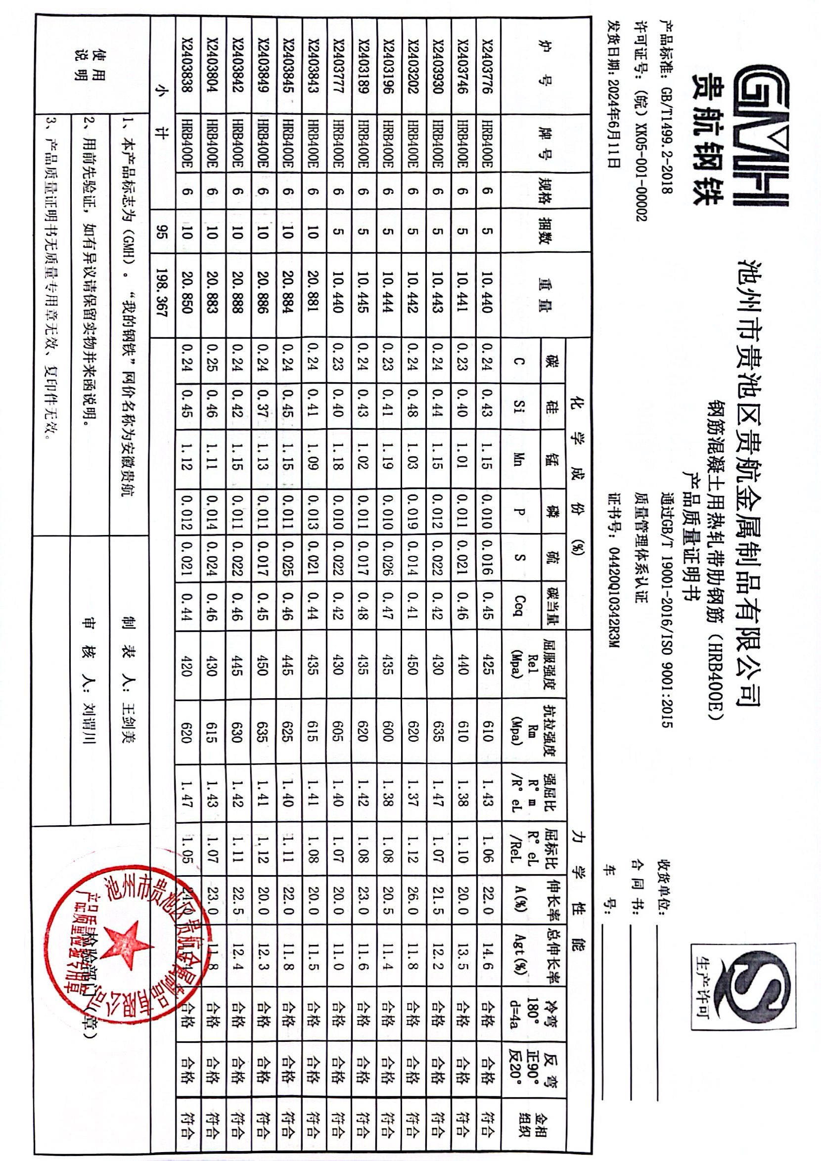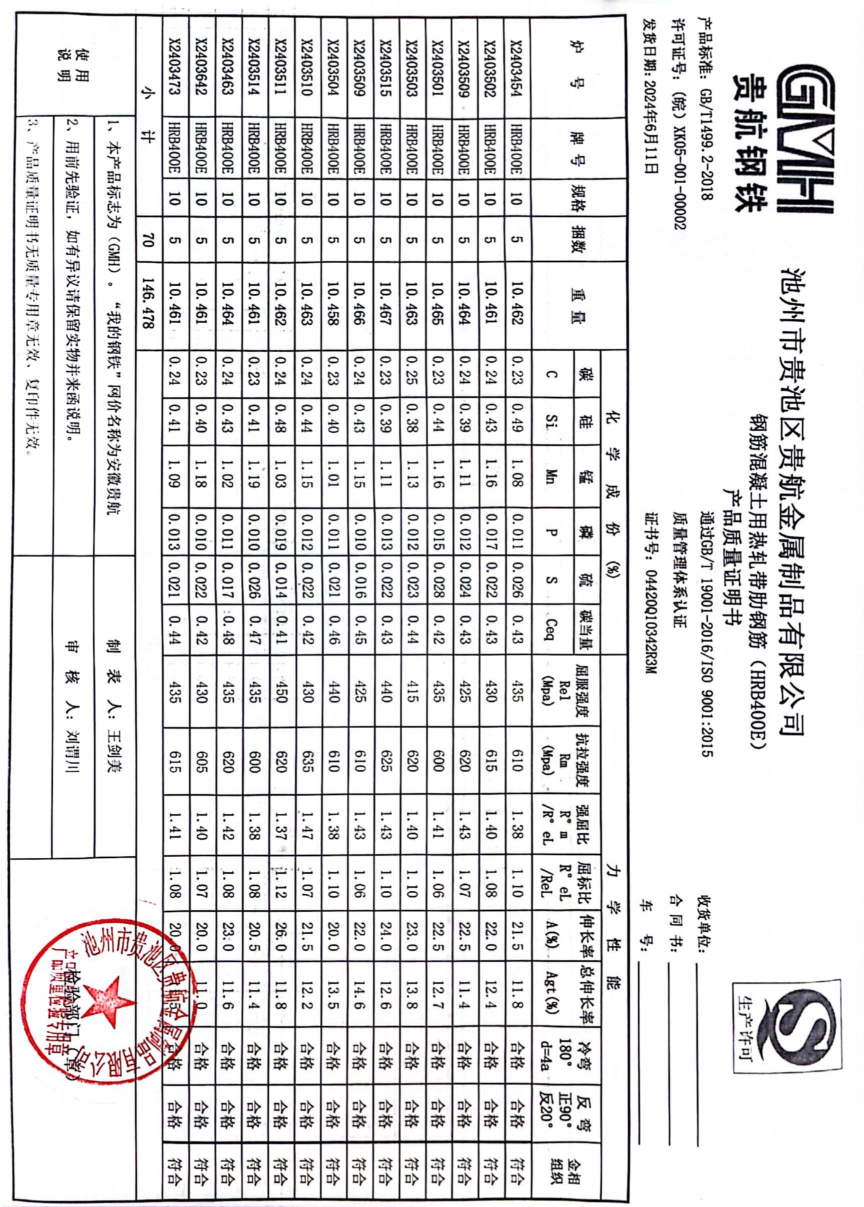 安徽省贵航特钢有限公司GH/JL-JZ-45提货单位:上海卓钢链电子商务有限公司3、如发现产品质量问题,请在验收后5天内向我公司质科提出异议并保留实物,等我公司审验后处理,擅自使用我公司不负任何责任。