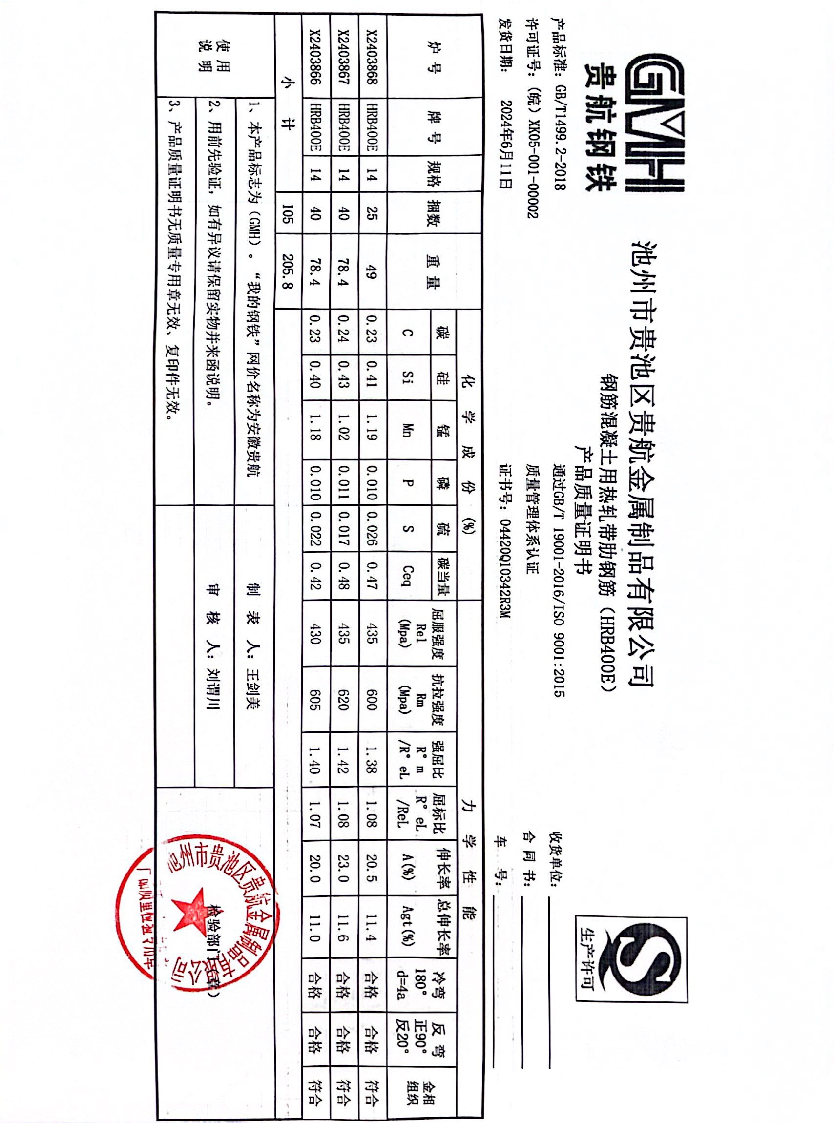 安徽省贵航特钢有限公司GH/JL-JZ-45提货单位:上海咏鑫实业有限公司3、如发现产品质量问题,请在验收后5天内向我公司质里科提出异议并保留实物,等我公司审验后处理,擅自使用我公司不负任何责任。