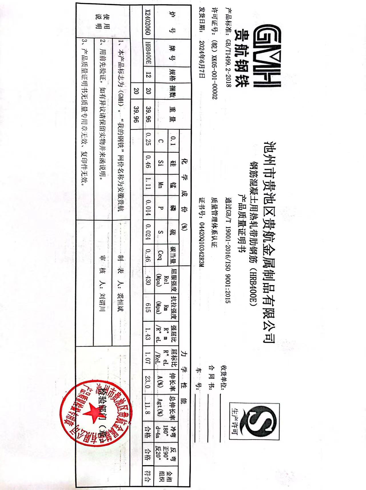 安徽省贵航特钢有限公司GH/JL-JZ-45提货单位:上海咏鑫实业有限公司3、如发现产品质问题,请在验收后5天内向我公司质量科提出异议并保留实物,等我公司审验后处理,擅自使用我公司不负任何责任。
