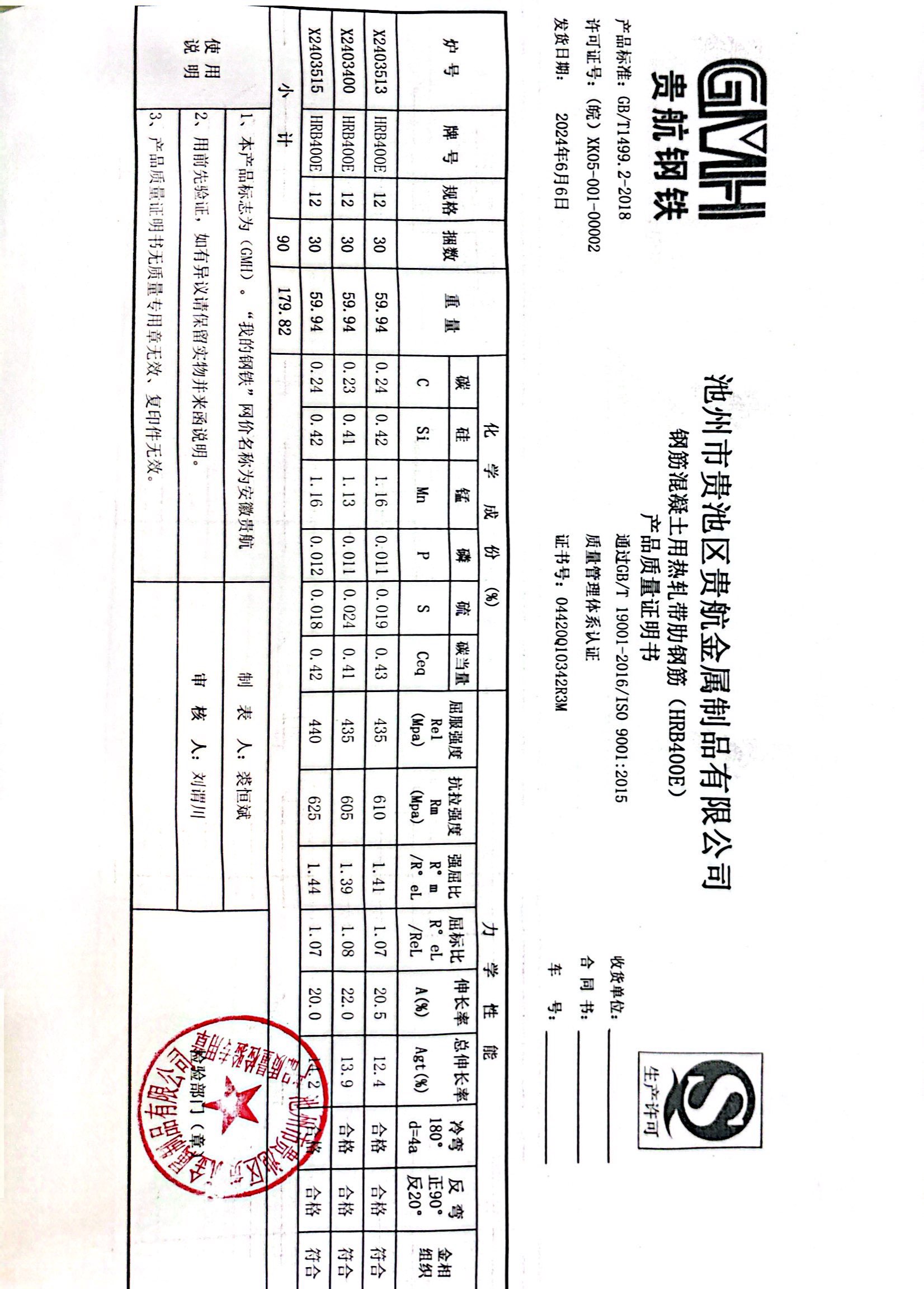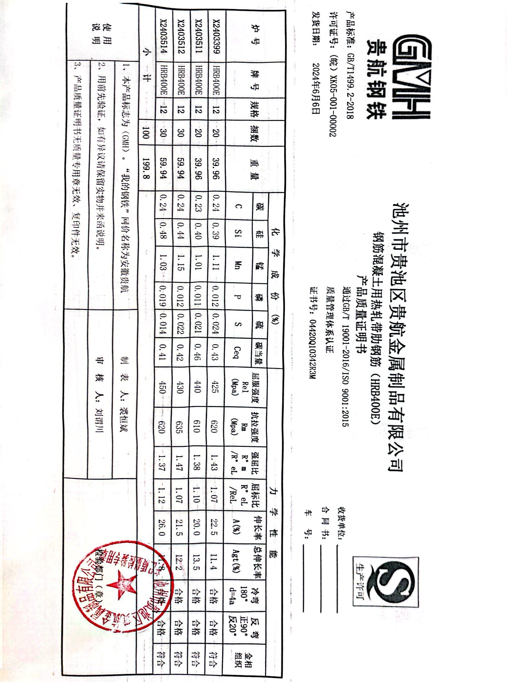 安徽省贵航特钢有限公司GH/JL-JZ-45提货单位:上海咏鑫实业有限公司3、如发现产品质量问题,请在验收后5天内向我公司质科提出异议并保留实物,等我公司审验后处理,擅自使用我公司不负任何责任。