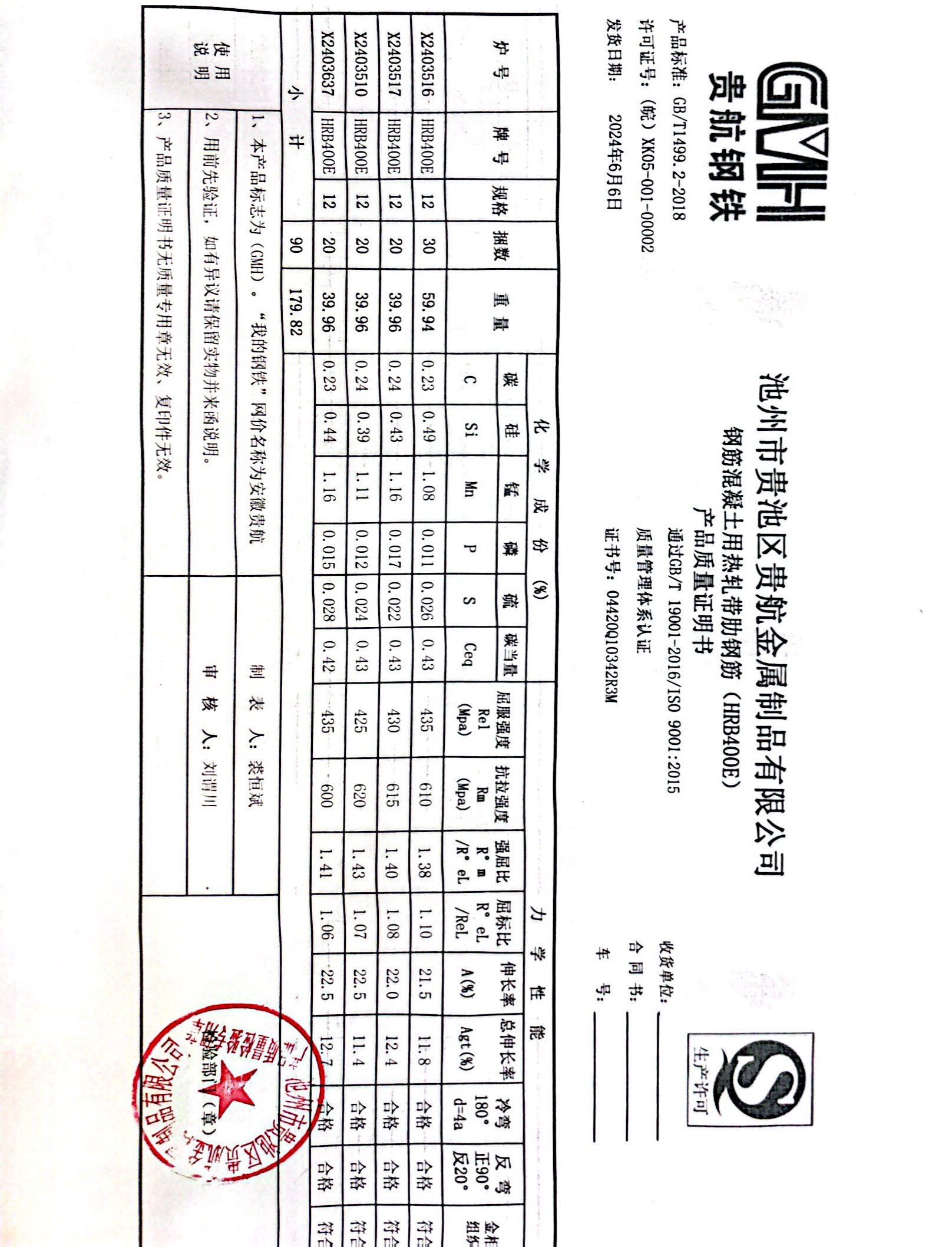 安徽省贵航特钢有限公司GH/JL-JZ-45提货单位:上海咏鑫实业有限公司3、如发现产品质量问题,请在验收后5天内向我公司质量科提出异议并保留实物,等我公司审验后处理,擅自使用我公司不负任何责任。