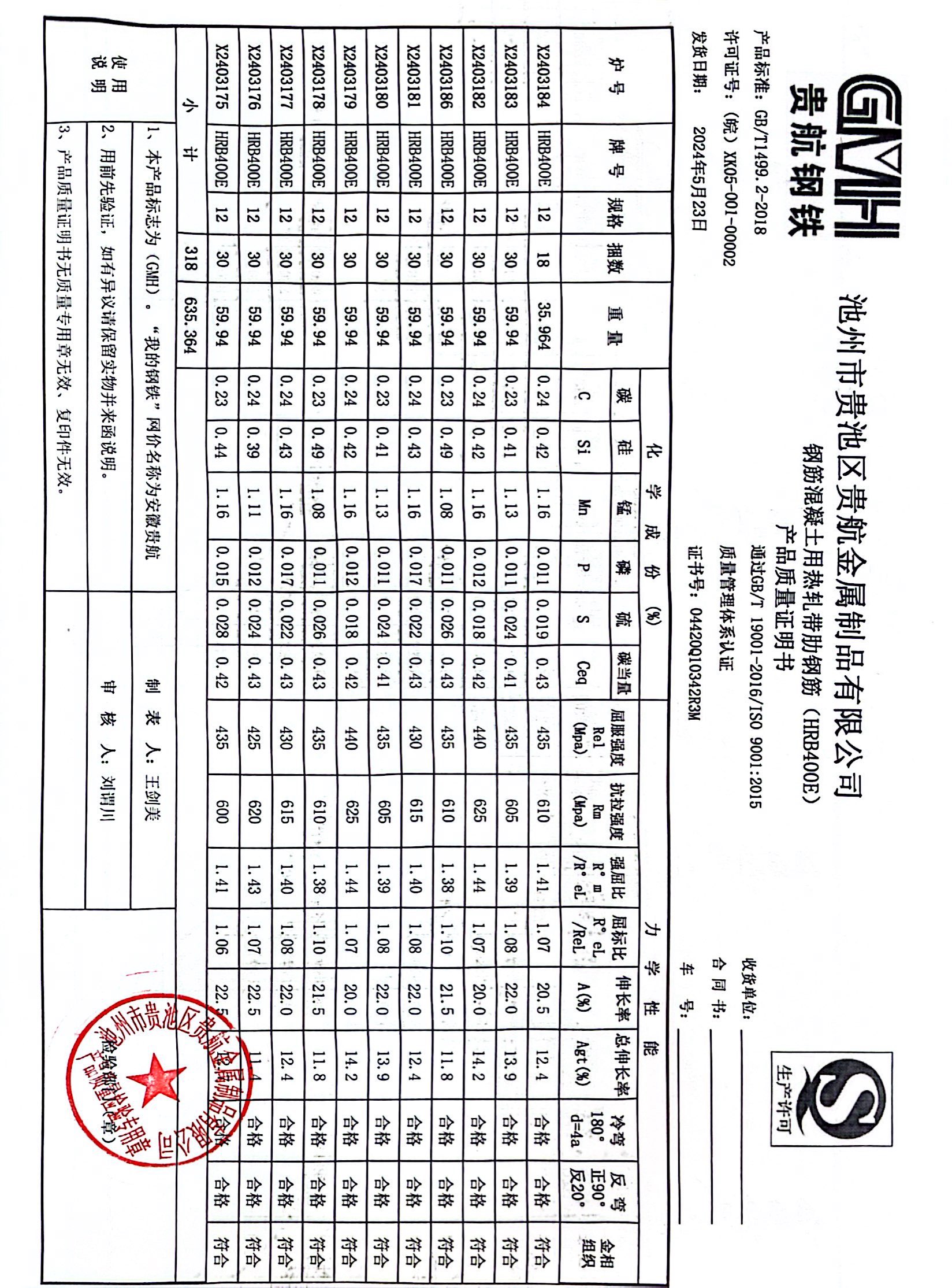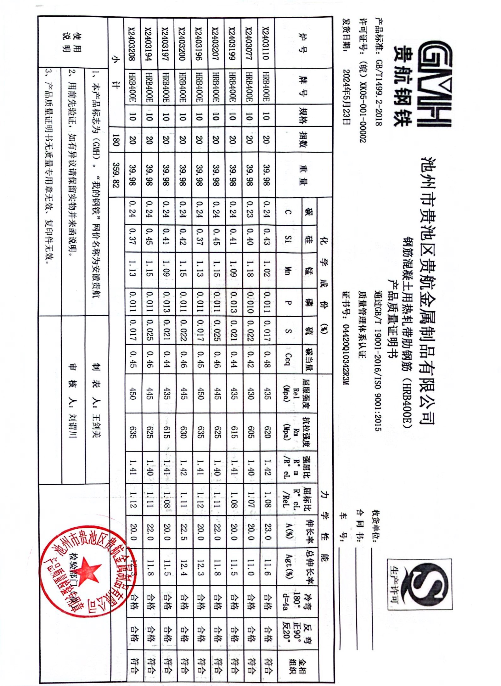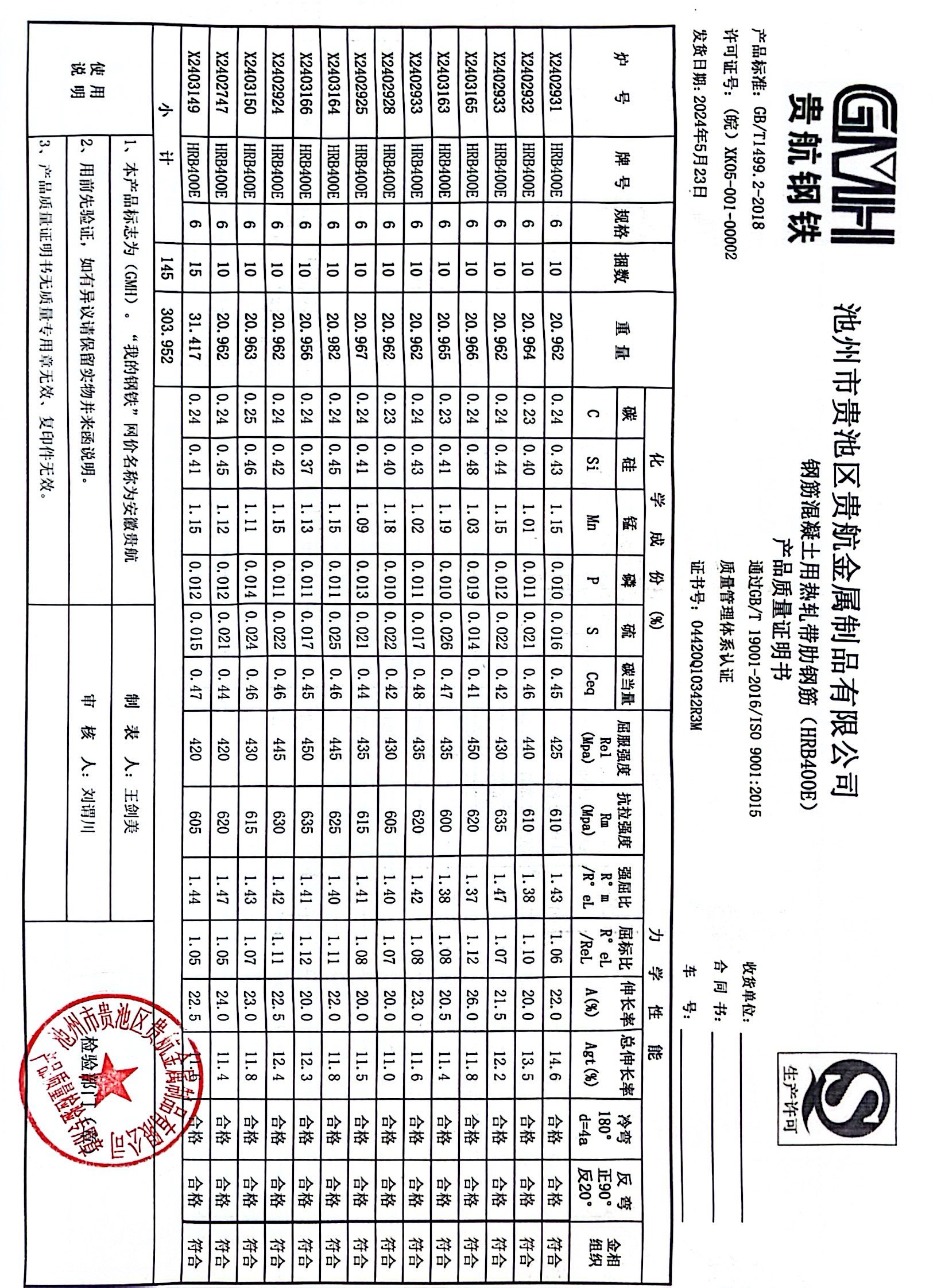 安徽省贵航特钢有限公司GH/JL-JZ-45提货单位:上海爵淼实业发展有限公司3、如发现产品质量问题,请在验收后5天内向我公司质科提出异议并保留实物,等我公司审验后处理,擅自使用我公司不负任何责任。