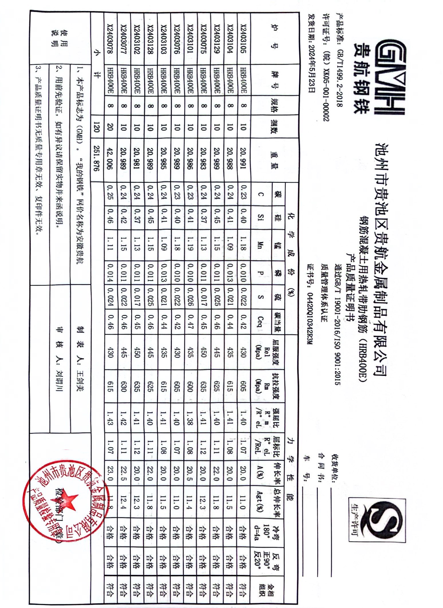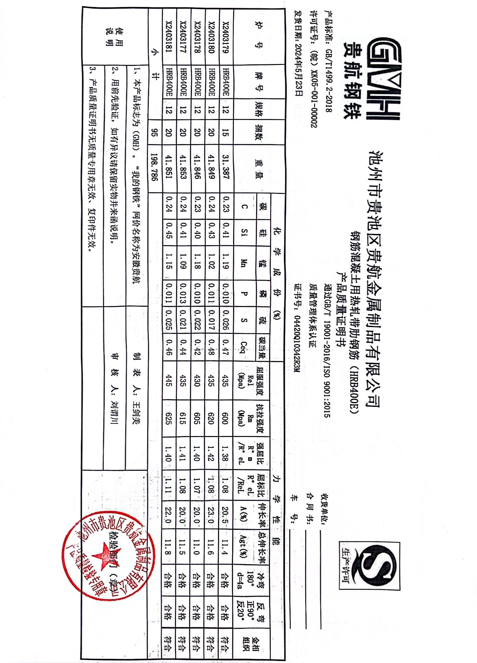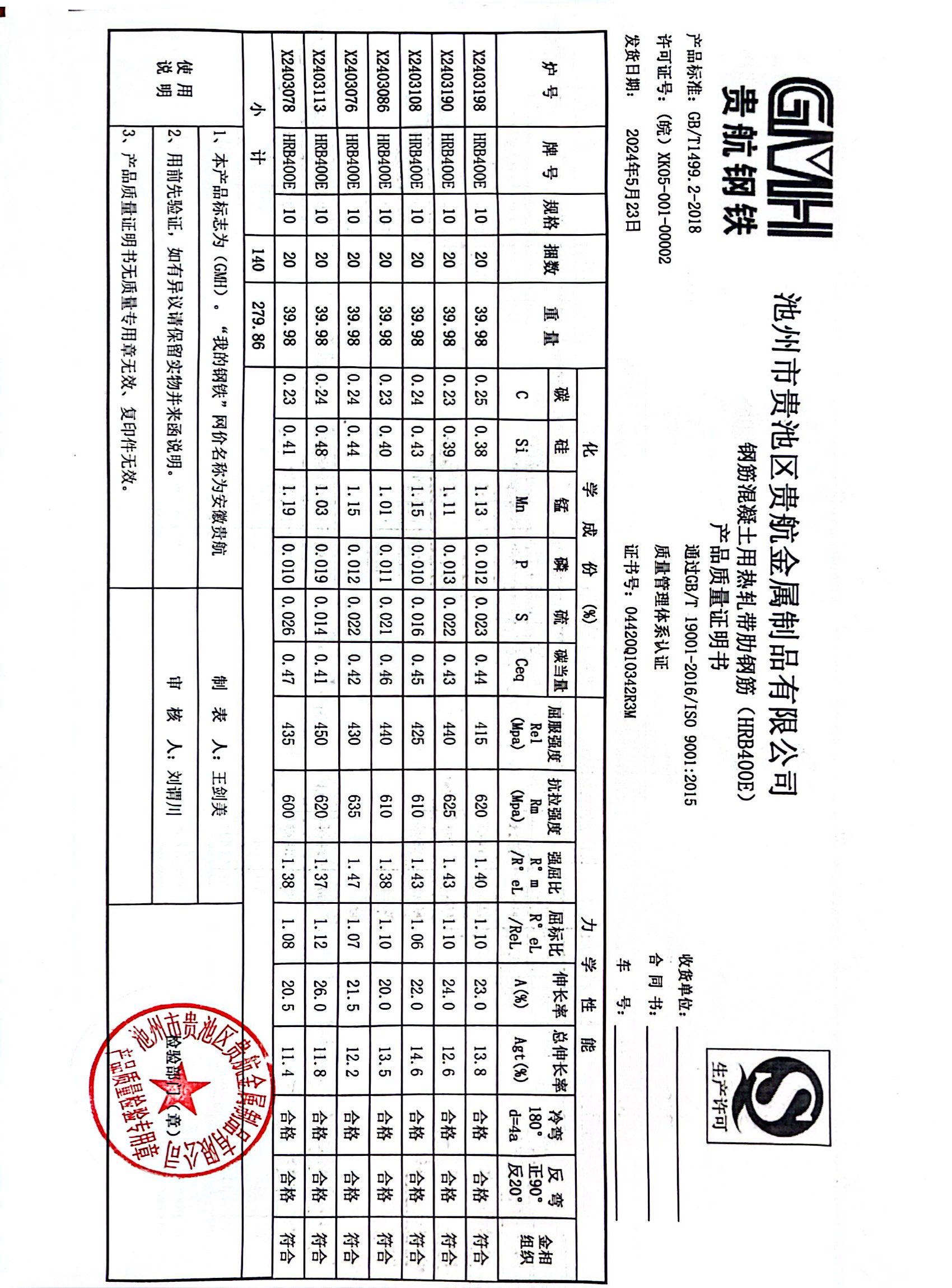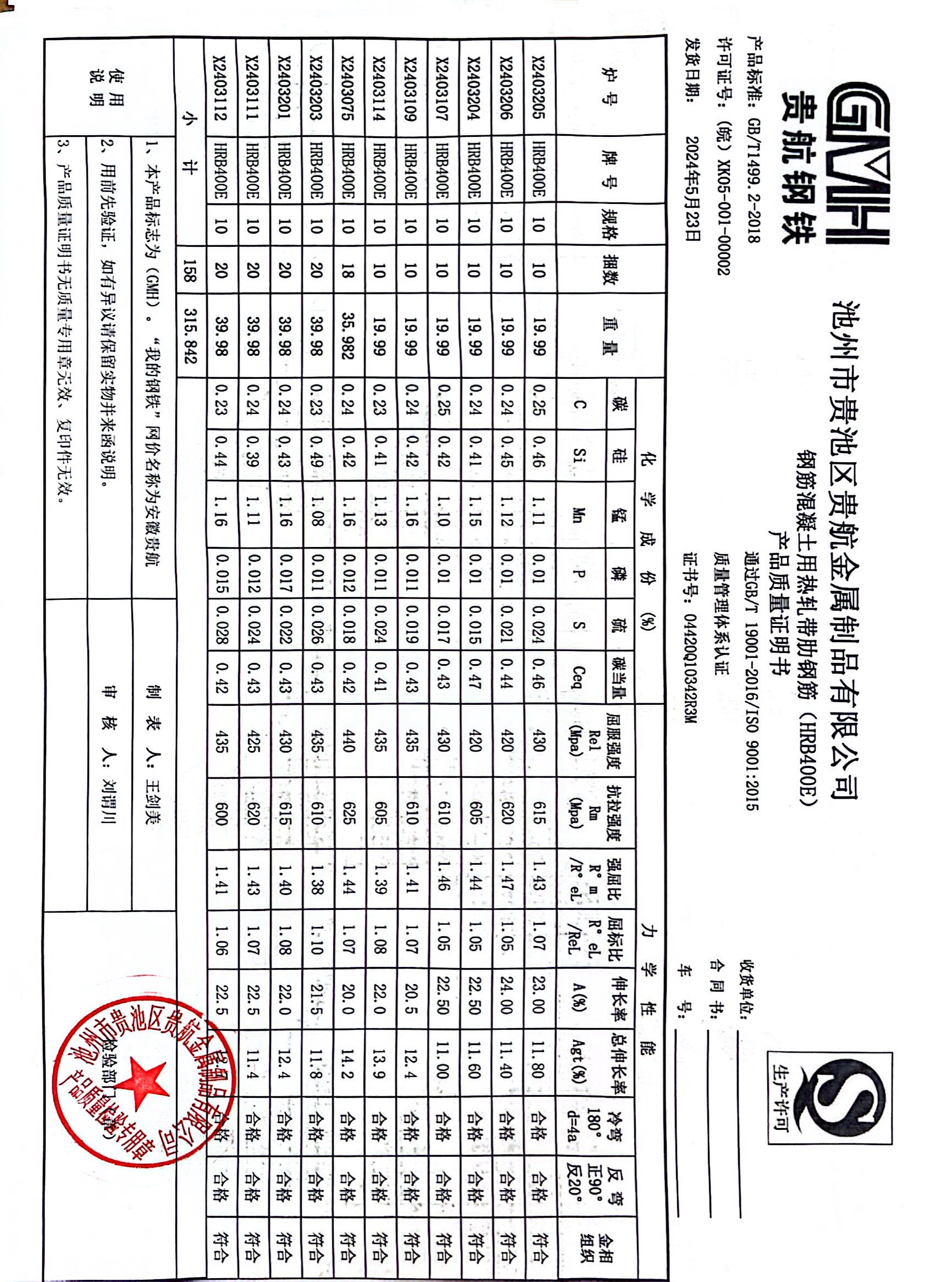 安徽省贵航特钢有限公司GH/JL-JZ-45提货单位:上海爵淼实业发展有限公司3、如发现产品质量问题,请在验收后5天内向我公司质科提出异议并保留实物,等我公司审验后处理,擅自使用我公司不负任何责任。