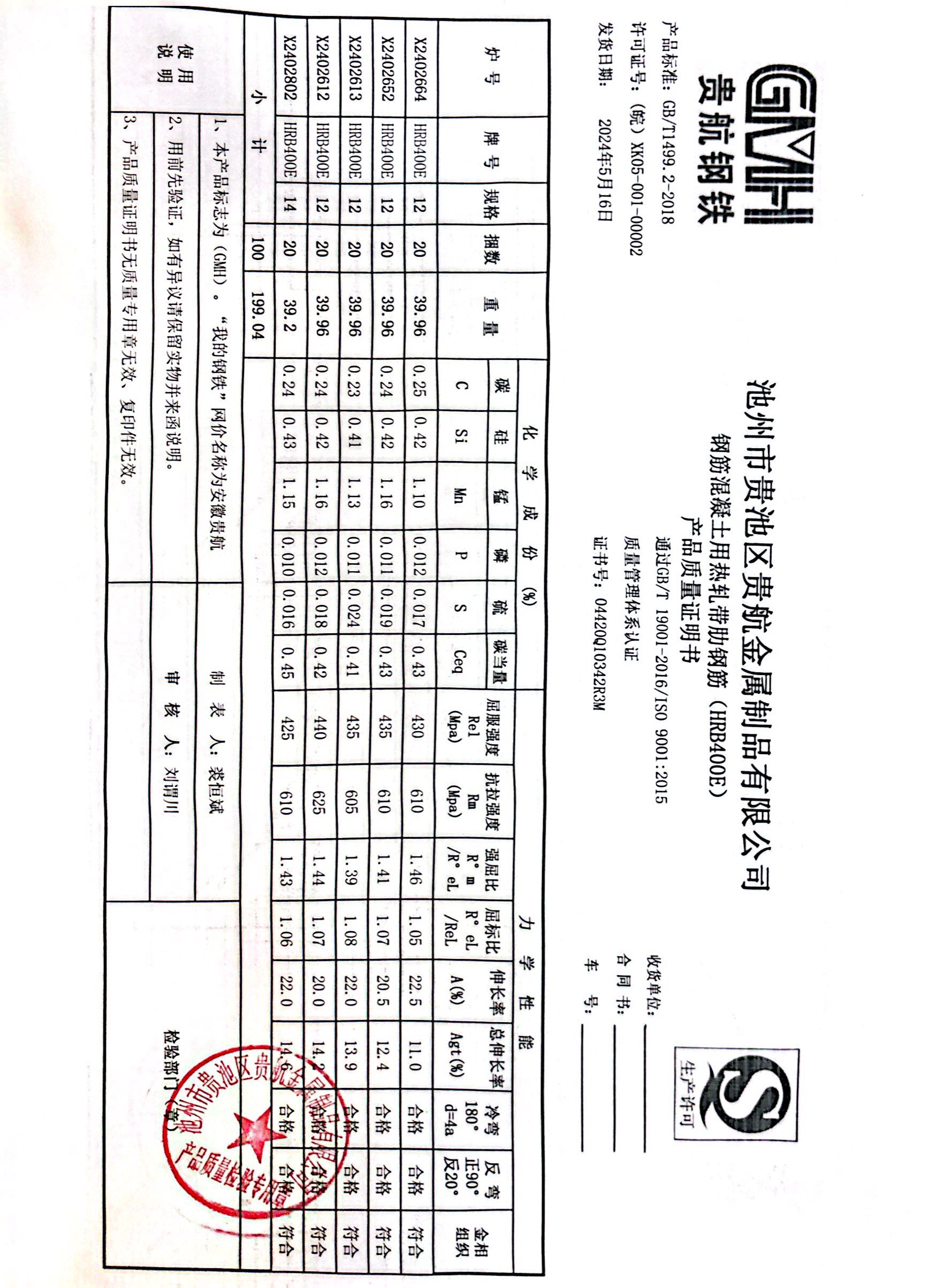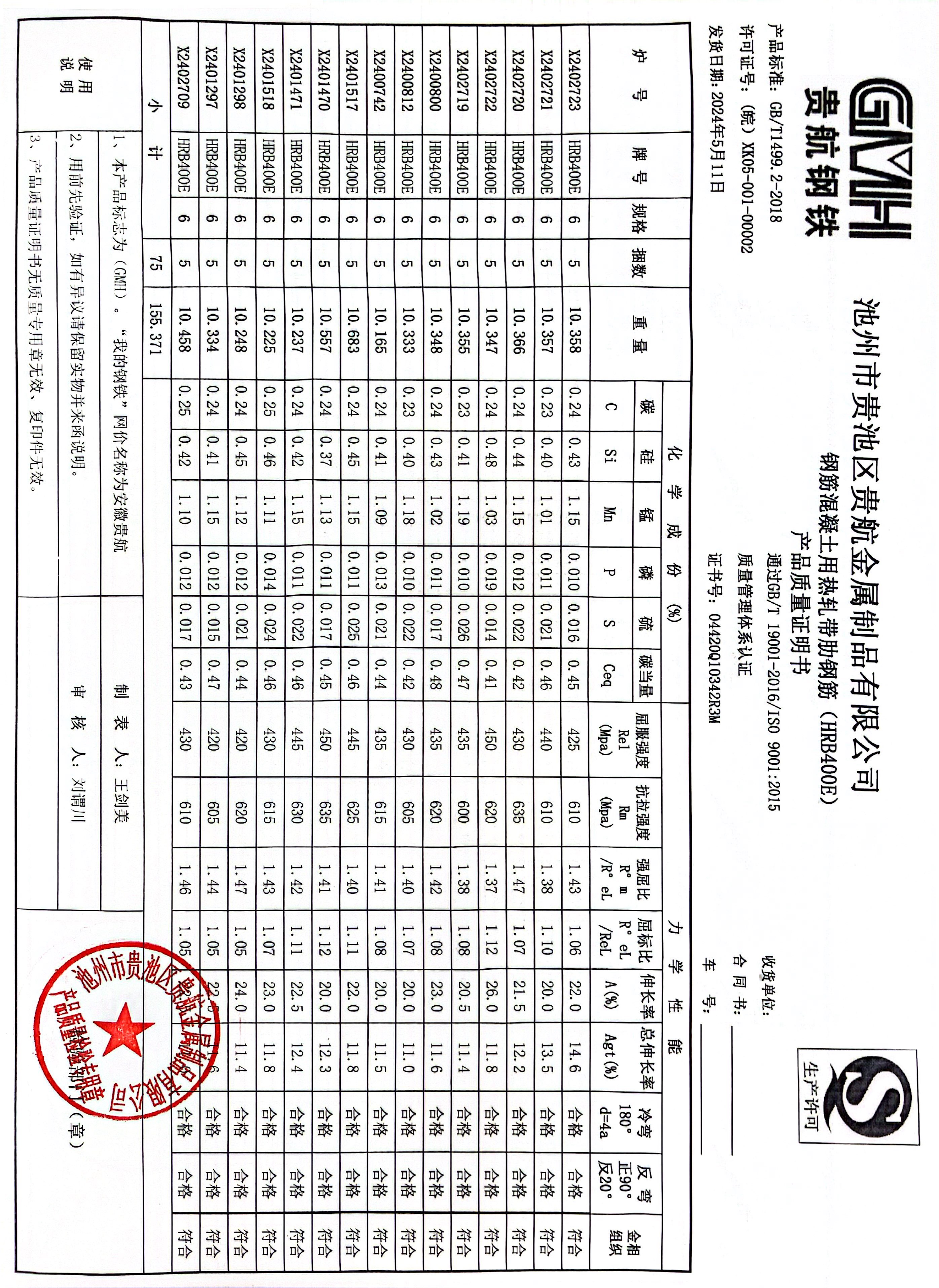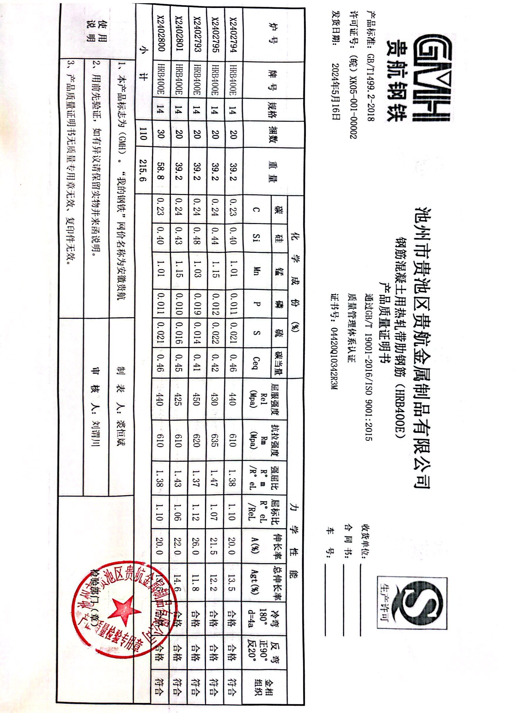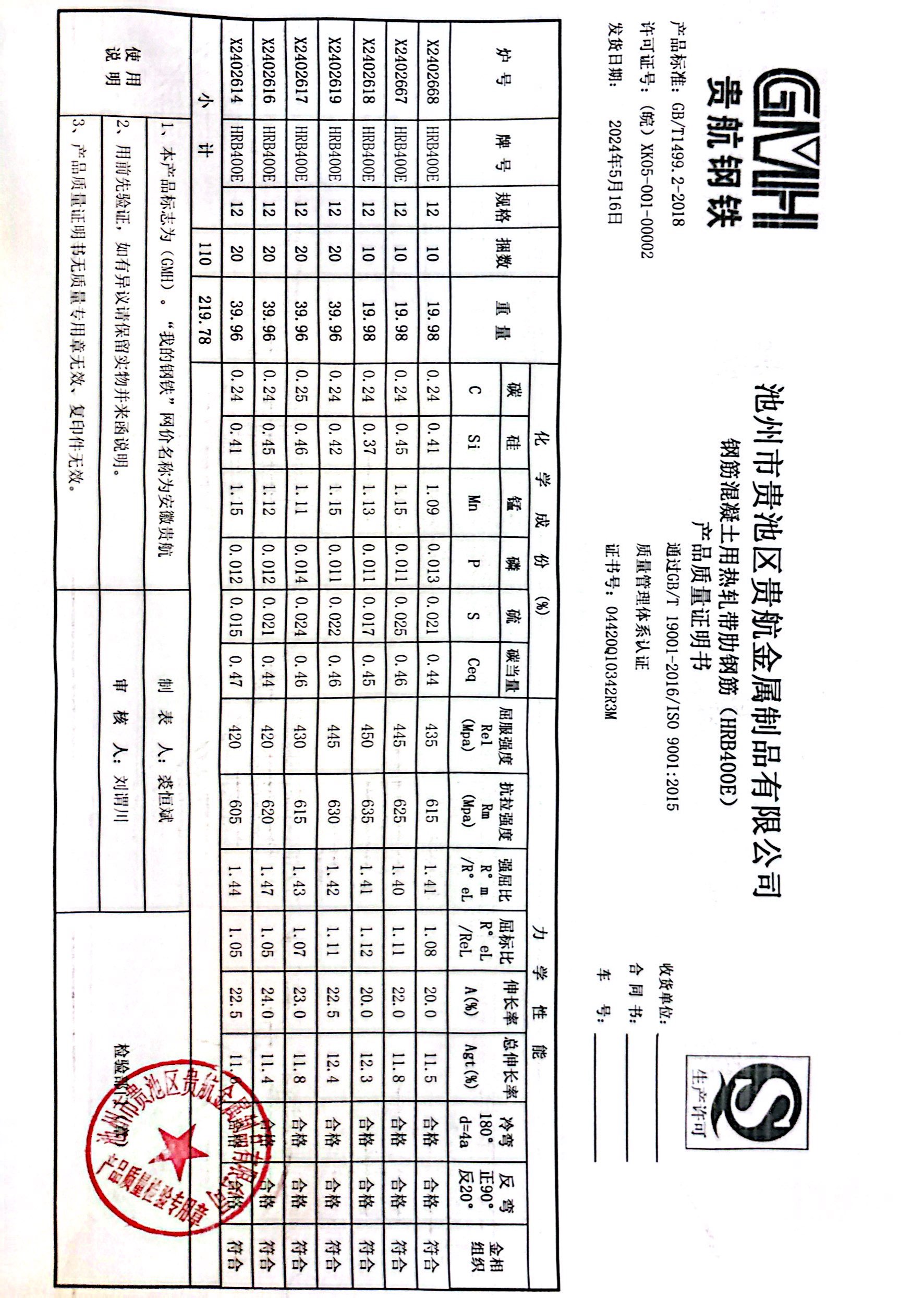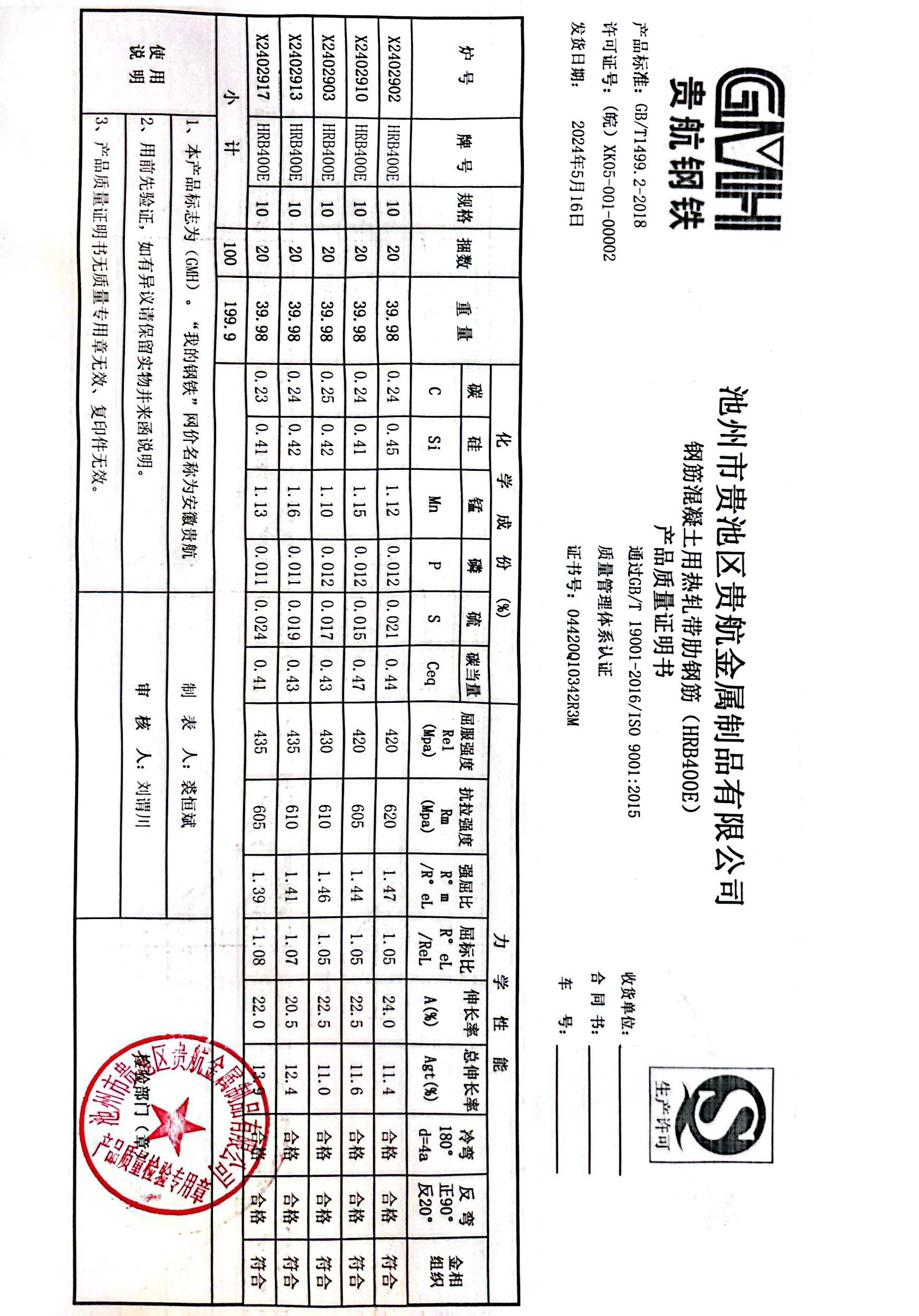 安徽省贵航特钢有限公司GH/JL-JZ-45提货单位:上海钢银电子商务股份有限公司3、如发现产品质量问题,请在验收后5天内向我公司质量科提出异议并保留实物,等我公司审验后处理,擅自使用我公司不负任何责任。