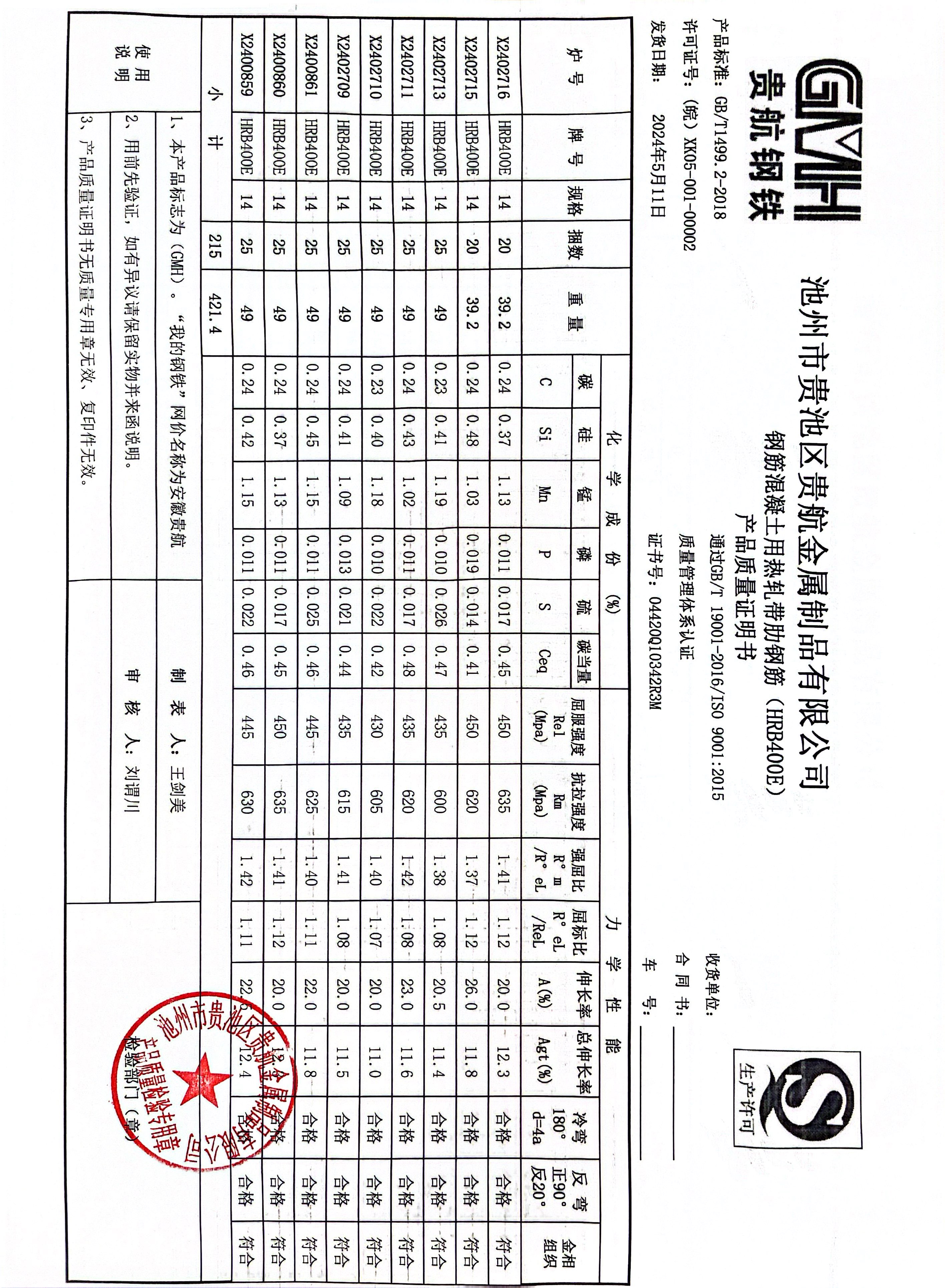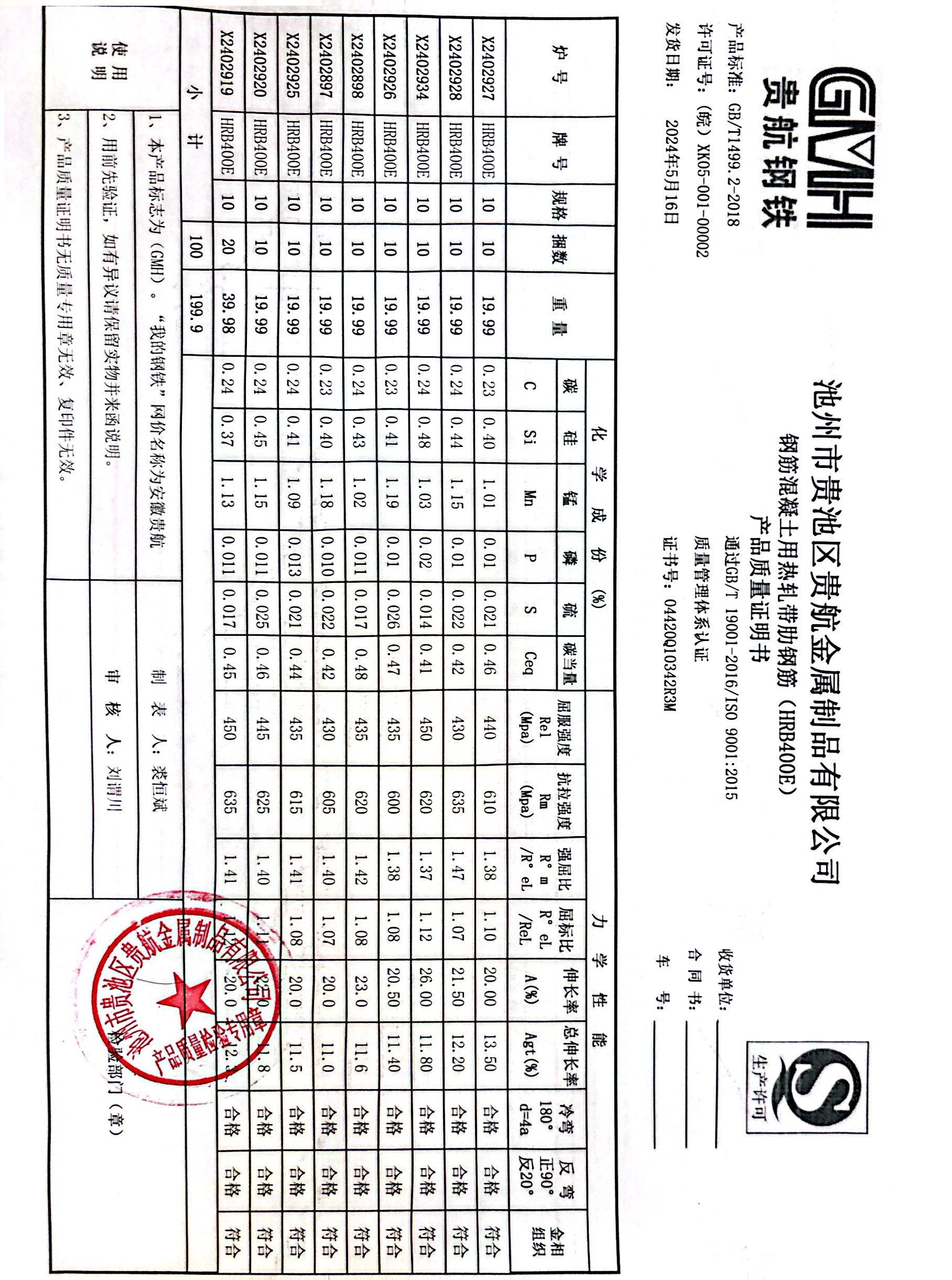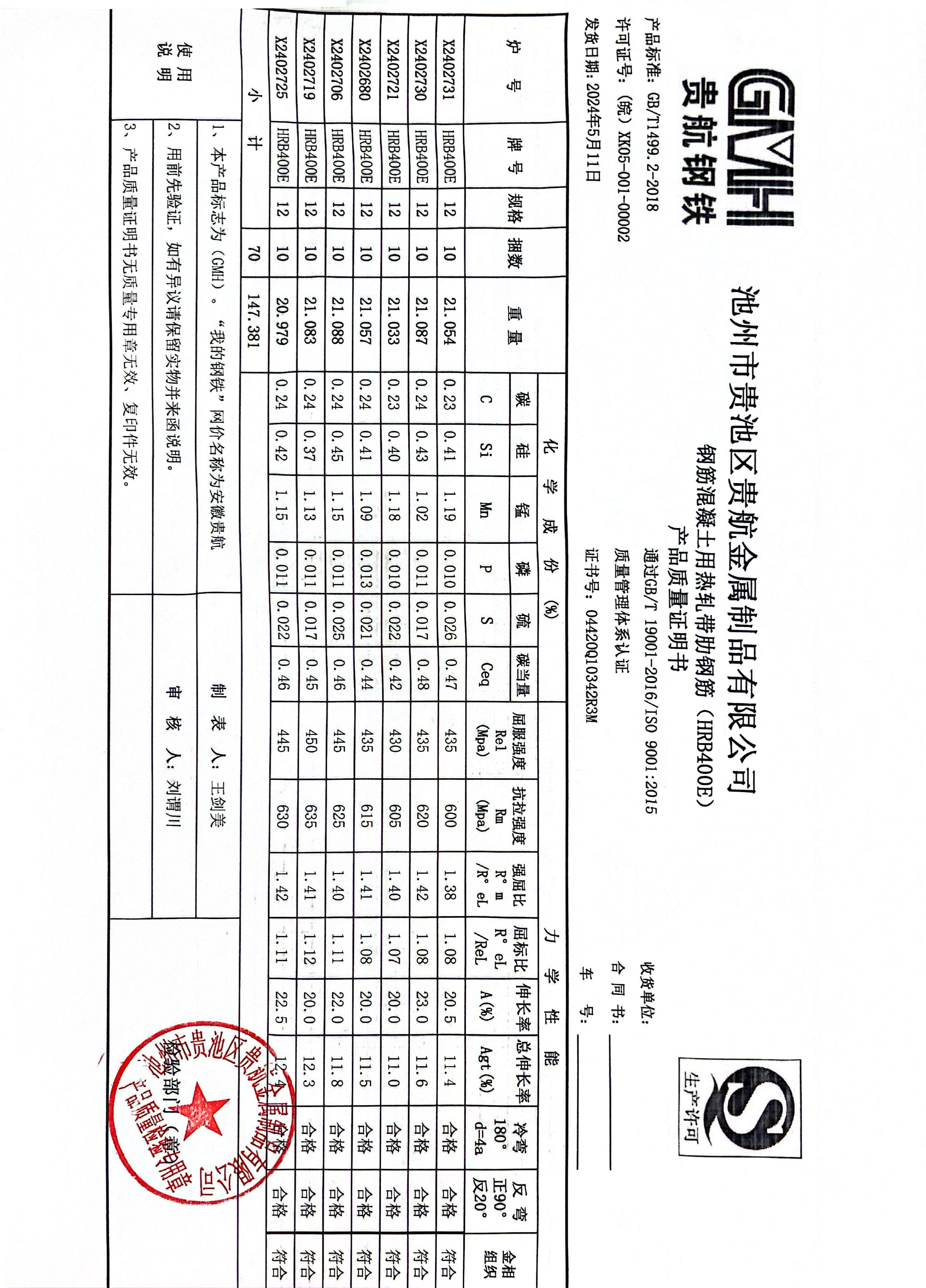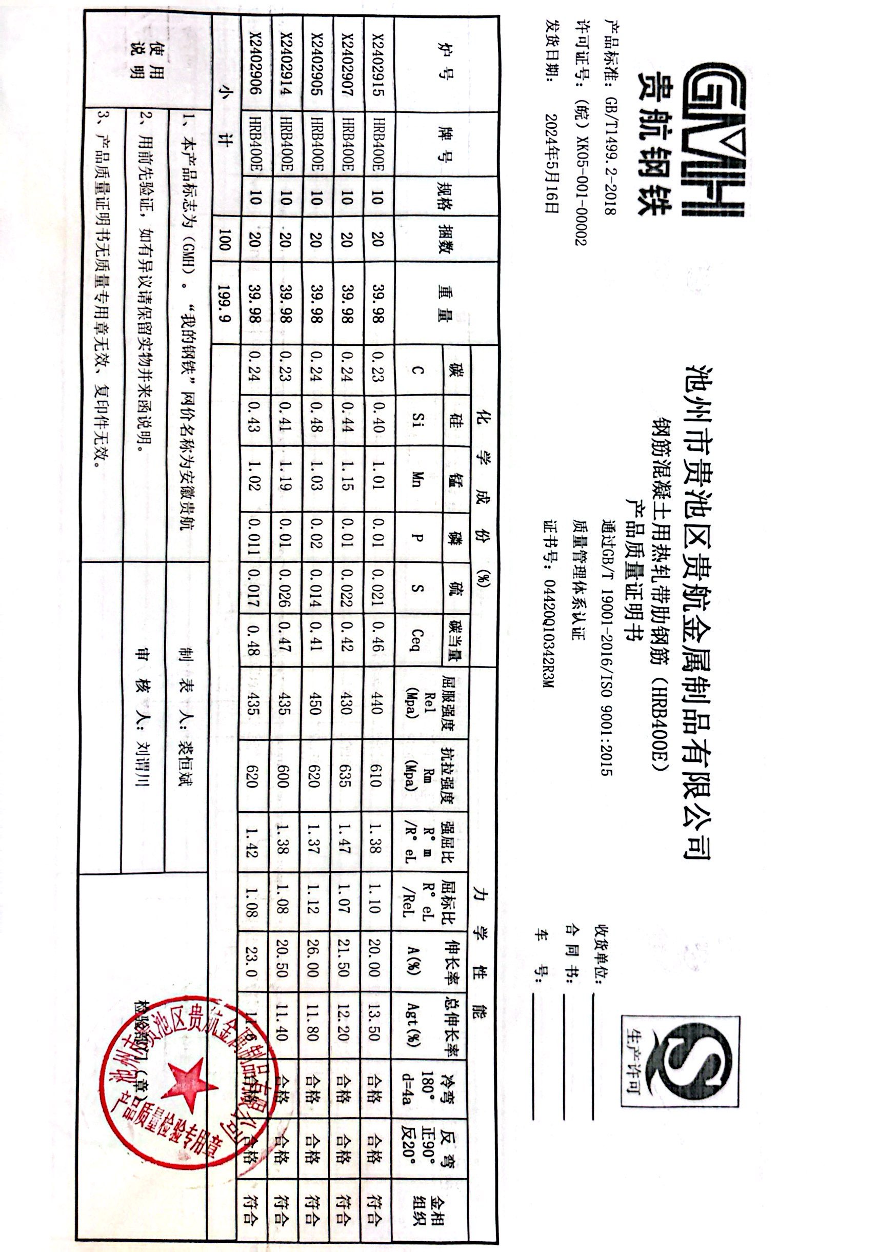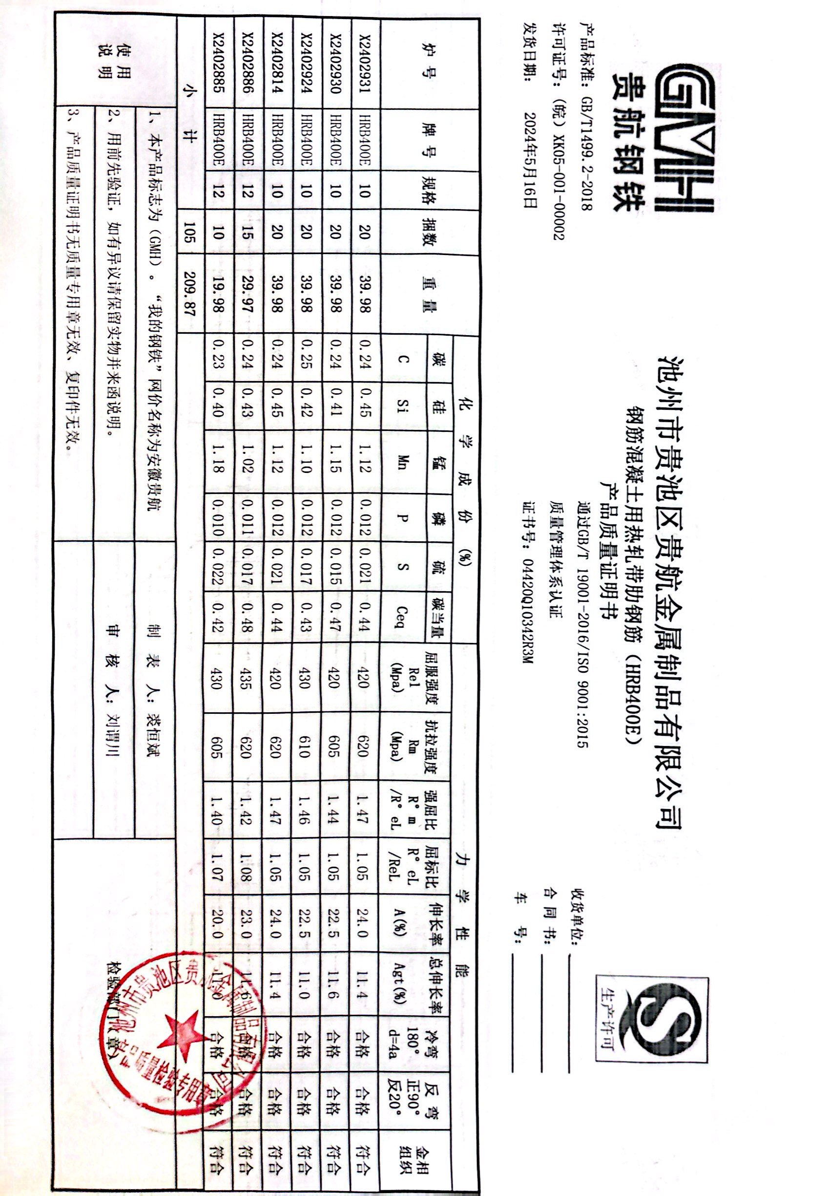 安徽省贵航特钢有限公司GH/JL-JZ-45提货单位:上海钢银电子商务股份有限公司3、如发现产品质量问题,请在验收后5天内向我公司质量科提出异议并保留实物,等我公司审验后处理,擅自使用我公司不负任何责任。