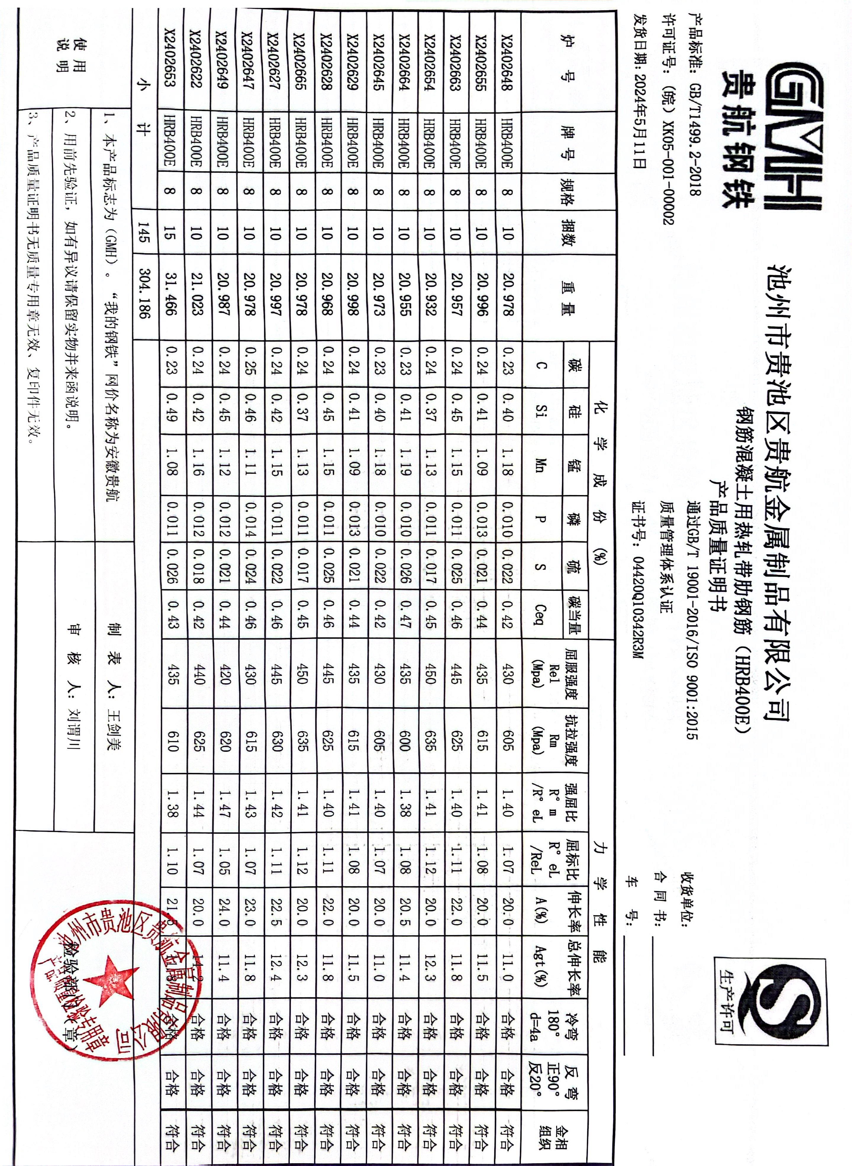安徽省贵航特钢有限公司GH/JL-JZ-45提货单位:上海咏鑫实业有限公司3、如发现产品质量问题,请在验收后5天内向我公司质里科提出异议并保留实物,等我公司审验后处理,擅自使用我公司不负任何责任。