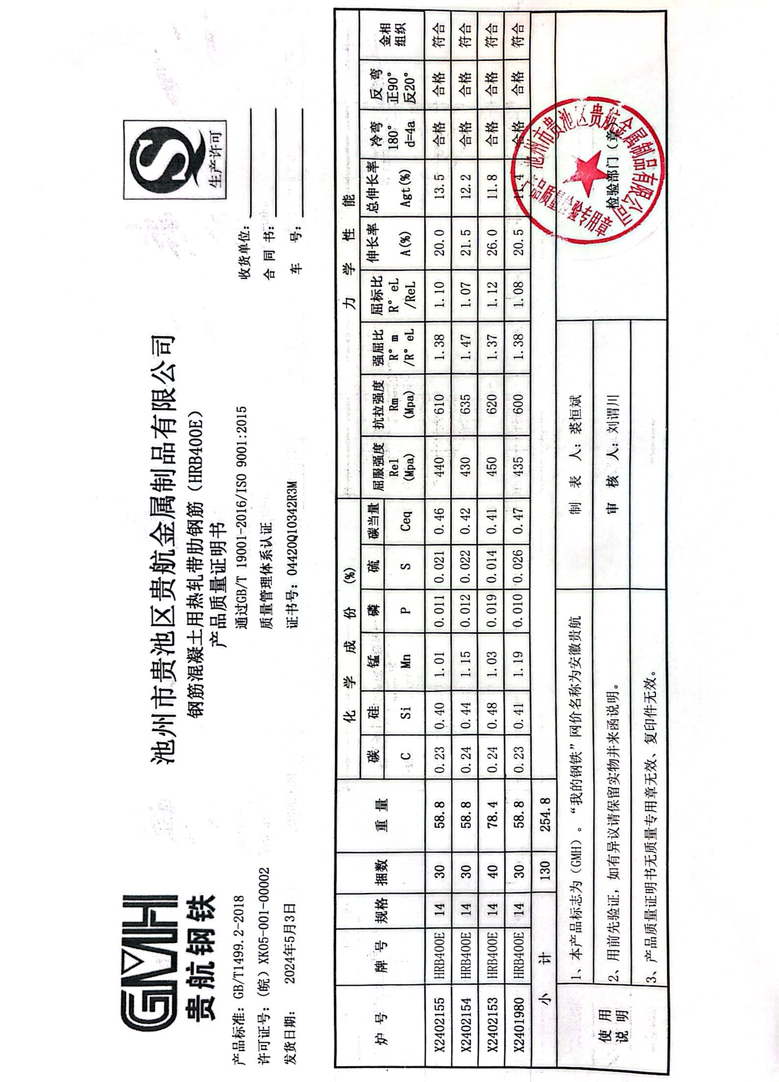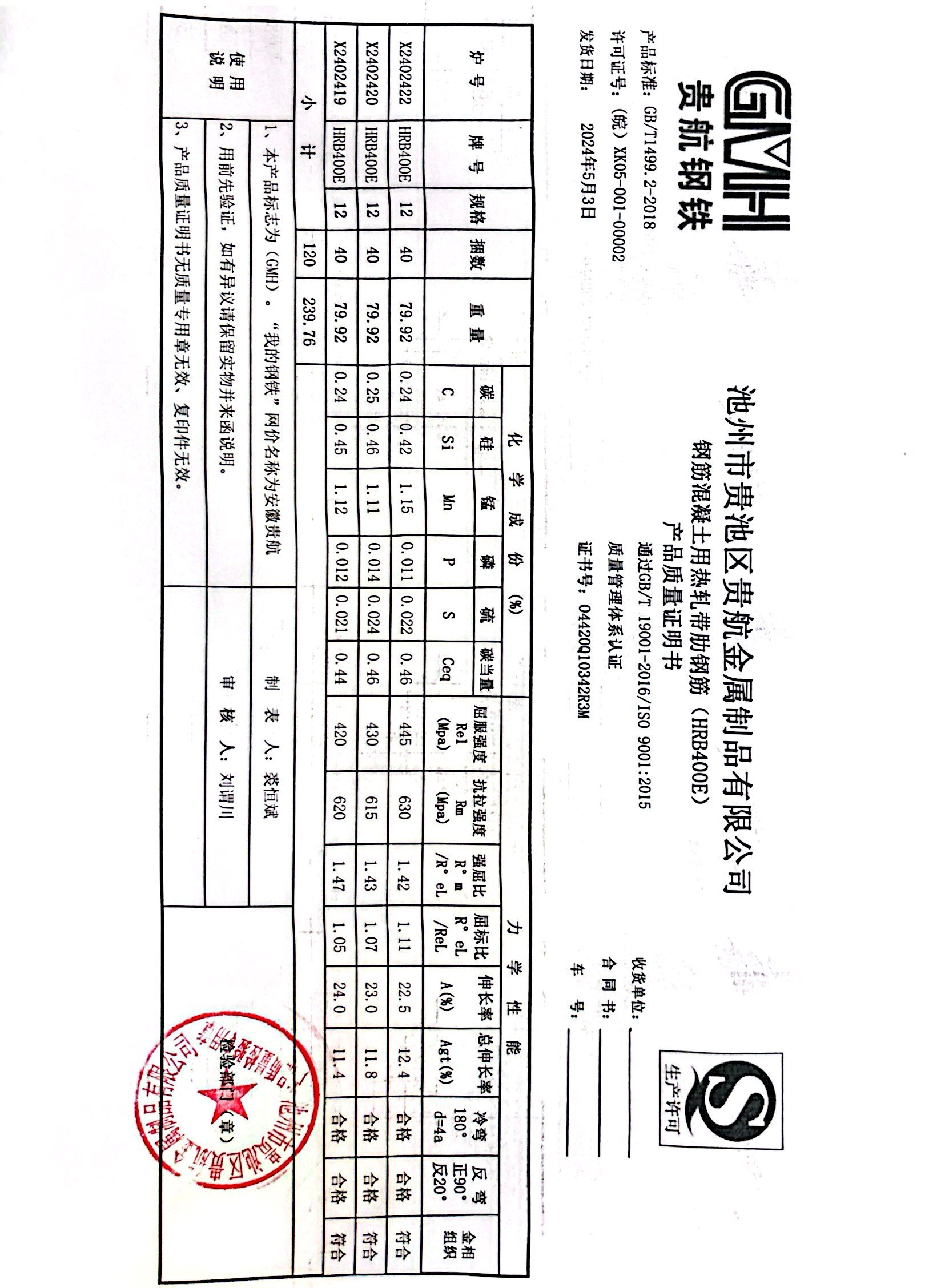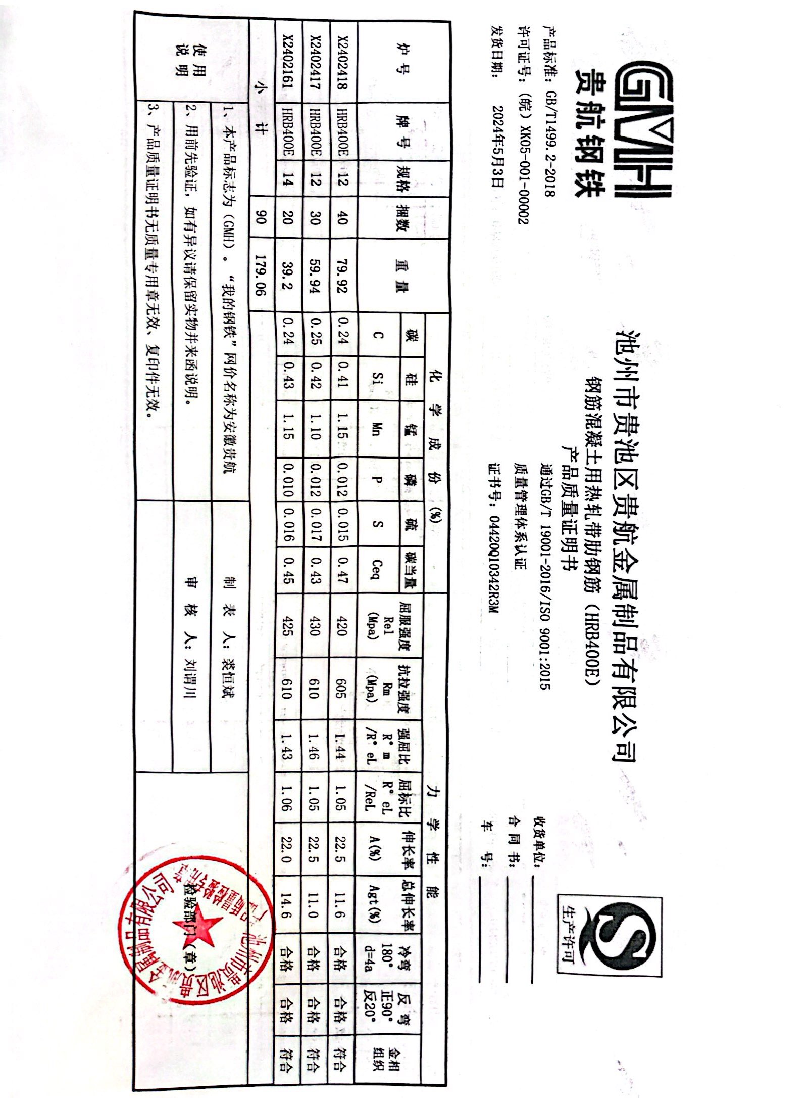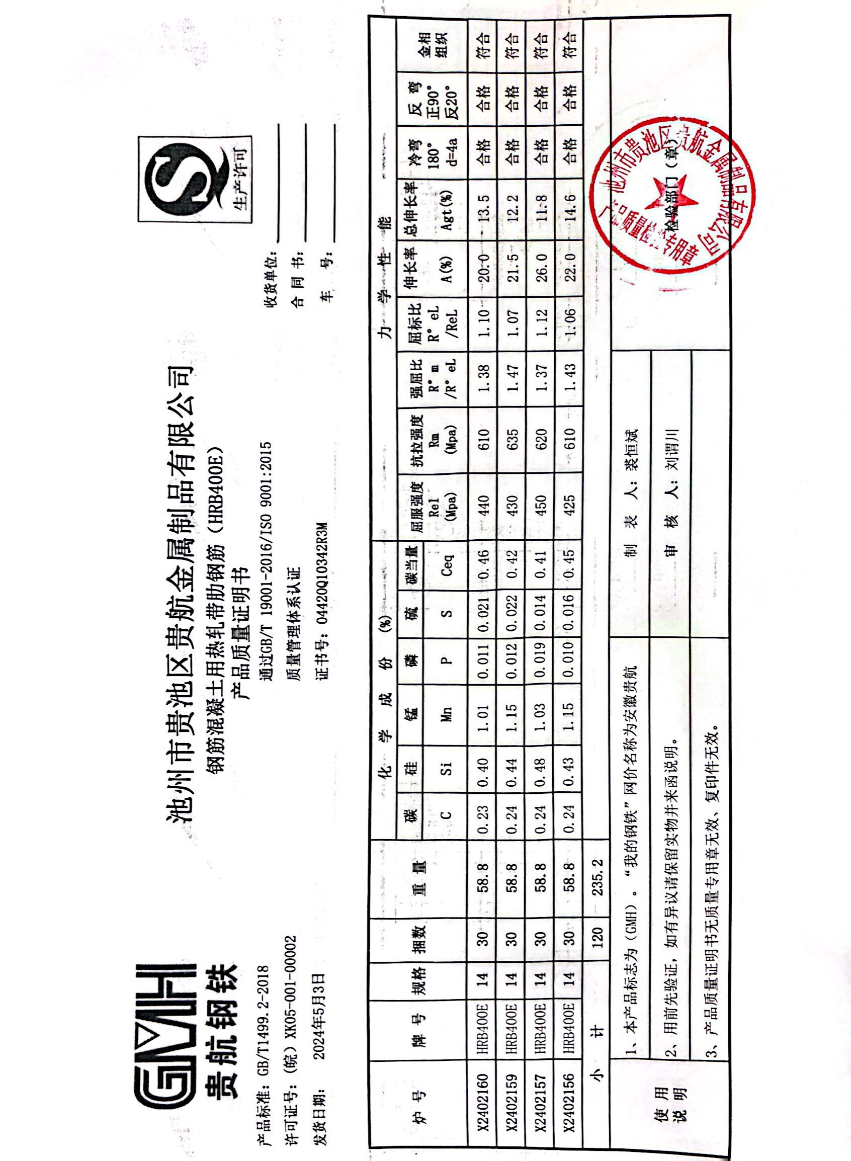 安徽省贵航特钢有限公司GH/JL-JZ-45提货单位:上海咏鑫实业有限公司3、如发现产品质重问题,请在验收后5天内向我公司质重科提出异议并保留实物,等我公司审验后处理,擅自使用我公司不负任何责任。