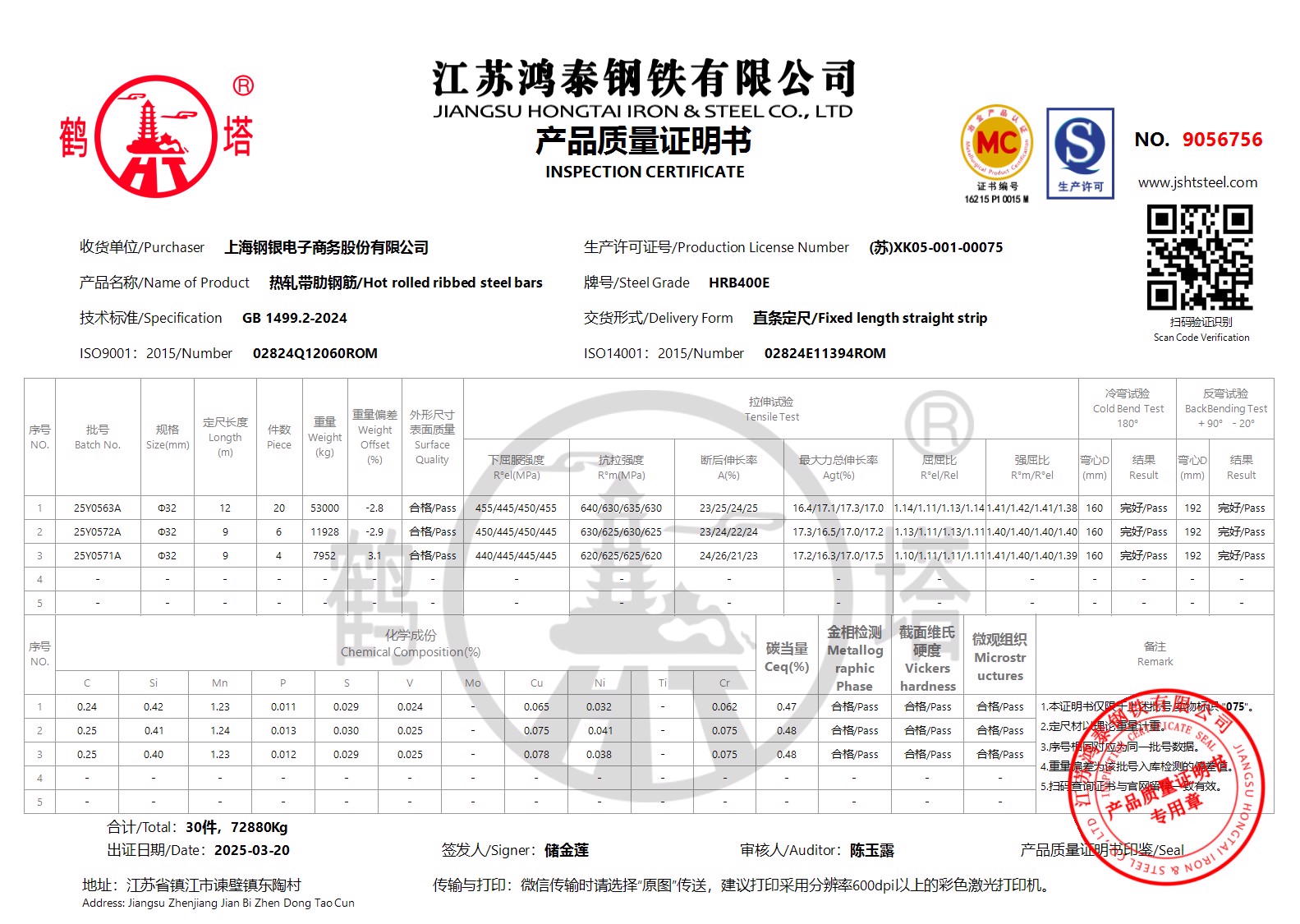 江苏鸿泰钢铁有限公司9056756上海钢银电子商务股份有限公司
