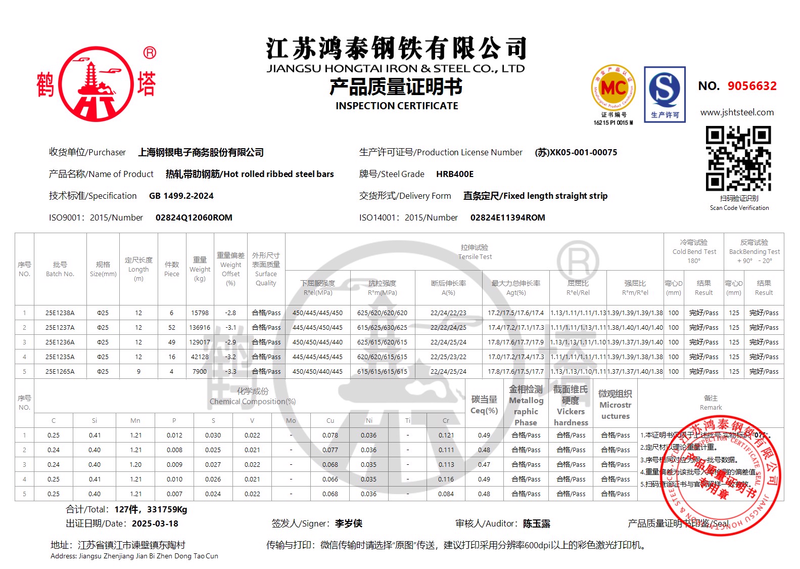 江苏鸿泰钢铁有限公司9057033上海钢银电子商务股份有限公司