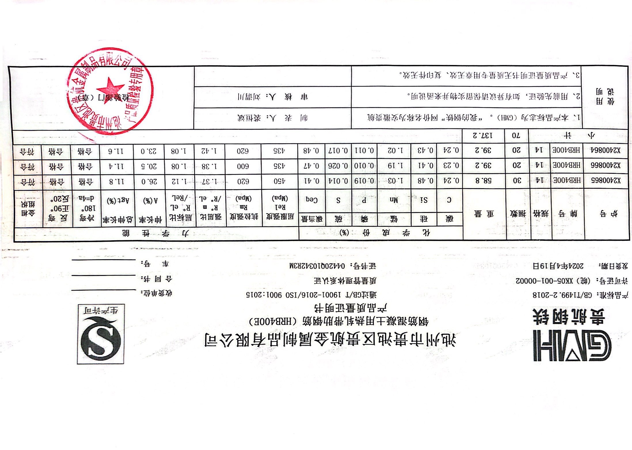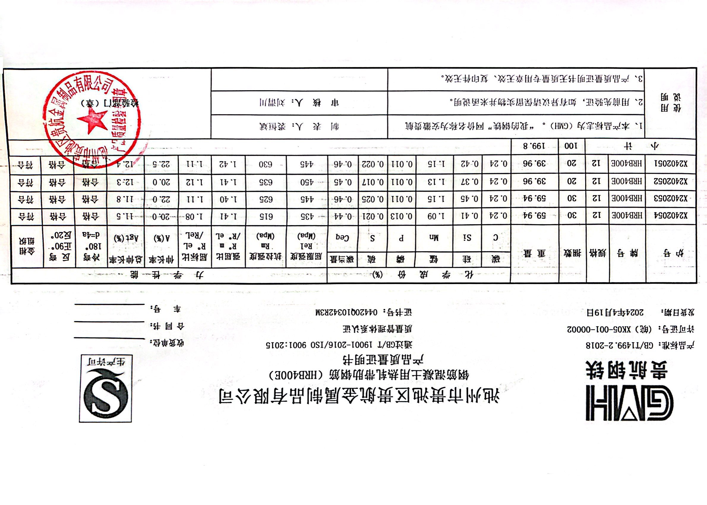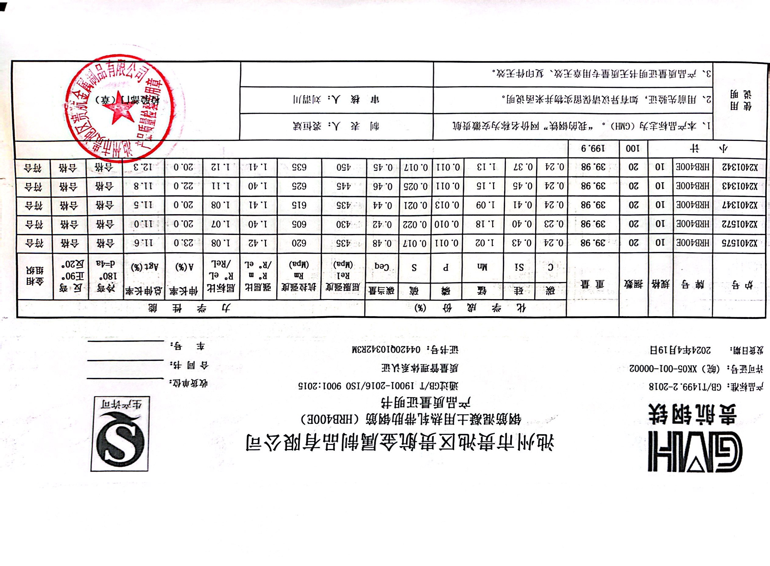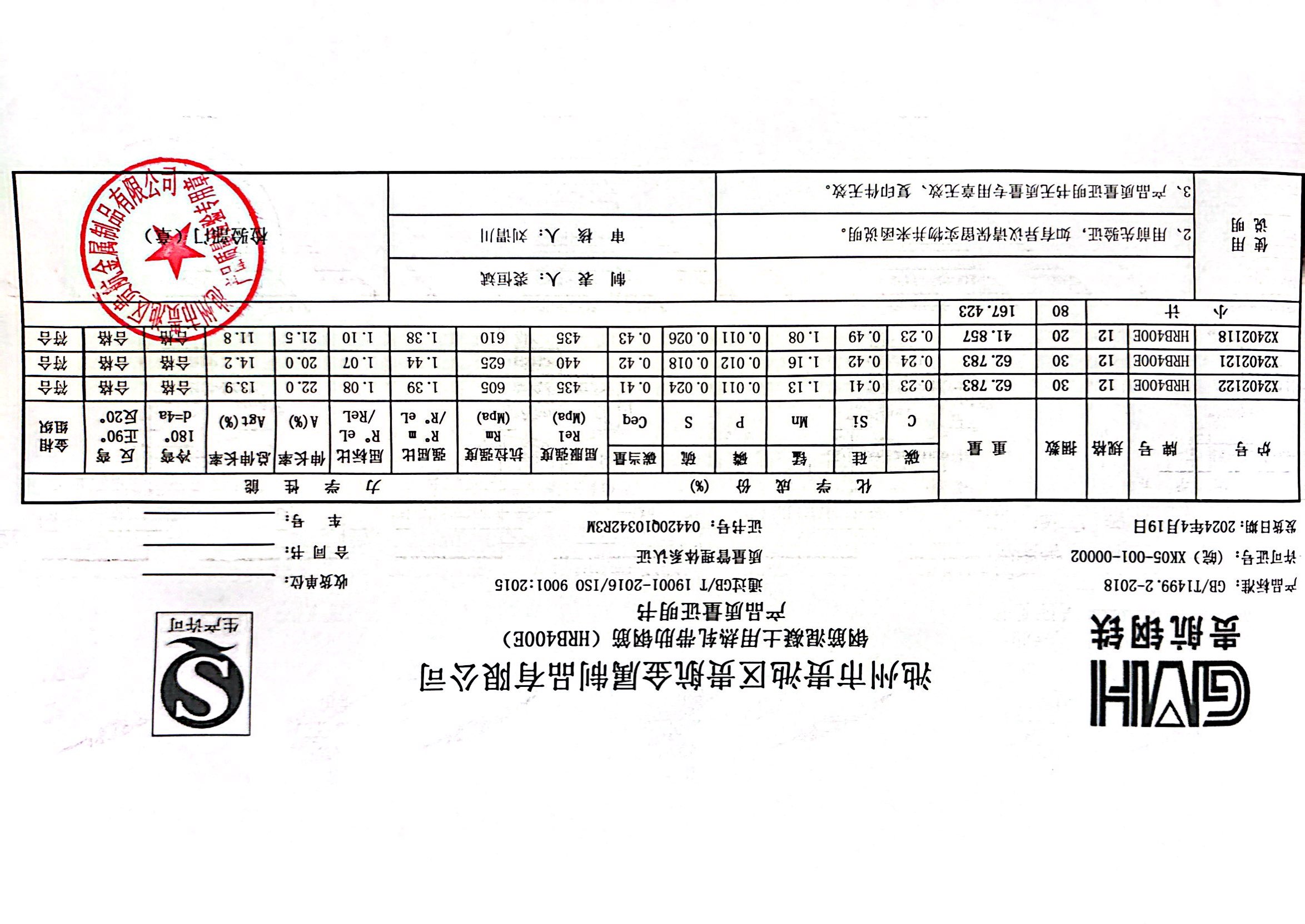 安徽省贵航特钢有限公司GH/JL-JZ-45提货单位:上海登钢商贸有限公司3、如发现产品质重问题,请在验收后5天内向我公司质里科提出异议并保留实物,等我公司审验后处理,擅自使用我公司不负任何责任。